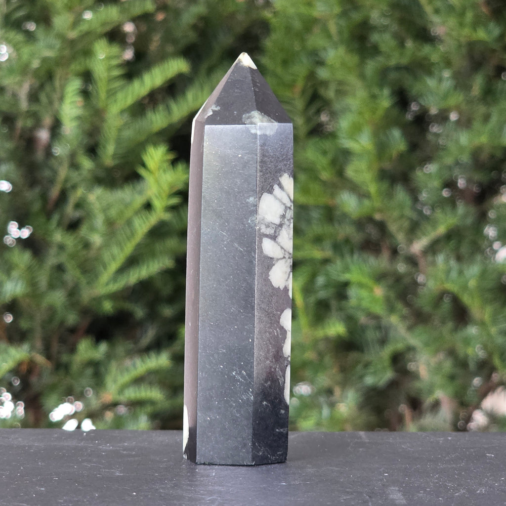 Forma de obelisc, simbol al ascensiunii spirituale, amplifică energia pietrei și o direcționează către claritate, curaj și împlinire.