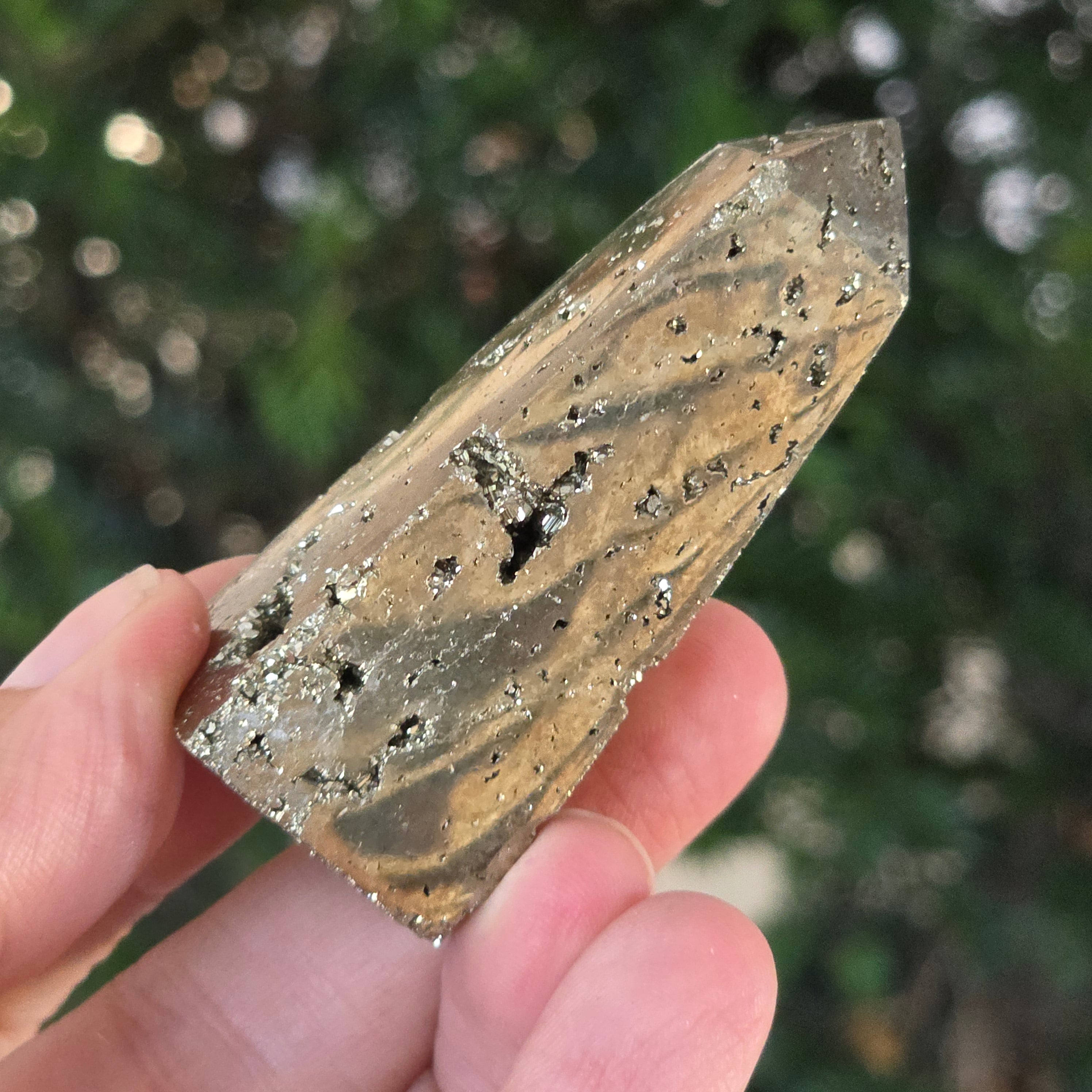 Obeliscul din pirita peruviană emană putere, abundență și claritate mentală. Fiecare reflex auriu amintește de lumina conștienței și de forța interioară care transformă intențiile în realitate. O piesă spectaculoasă, potrivită atât pentru colecționari, cât și ca obiect decorativ cu energie vibrantă.