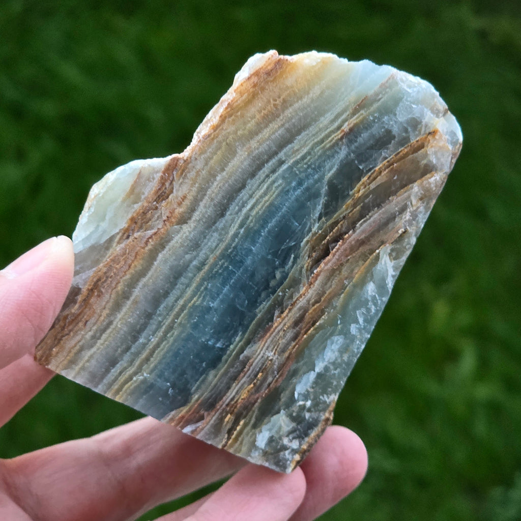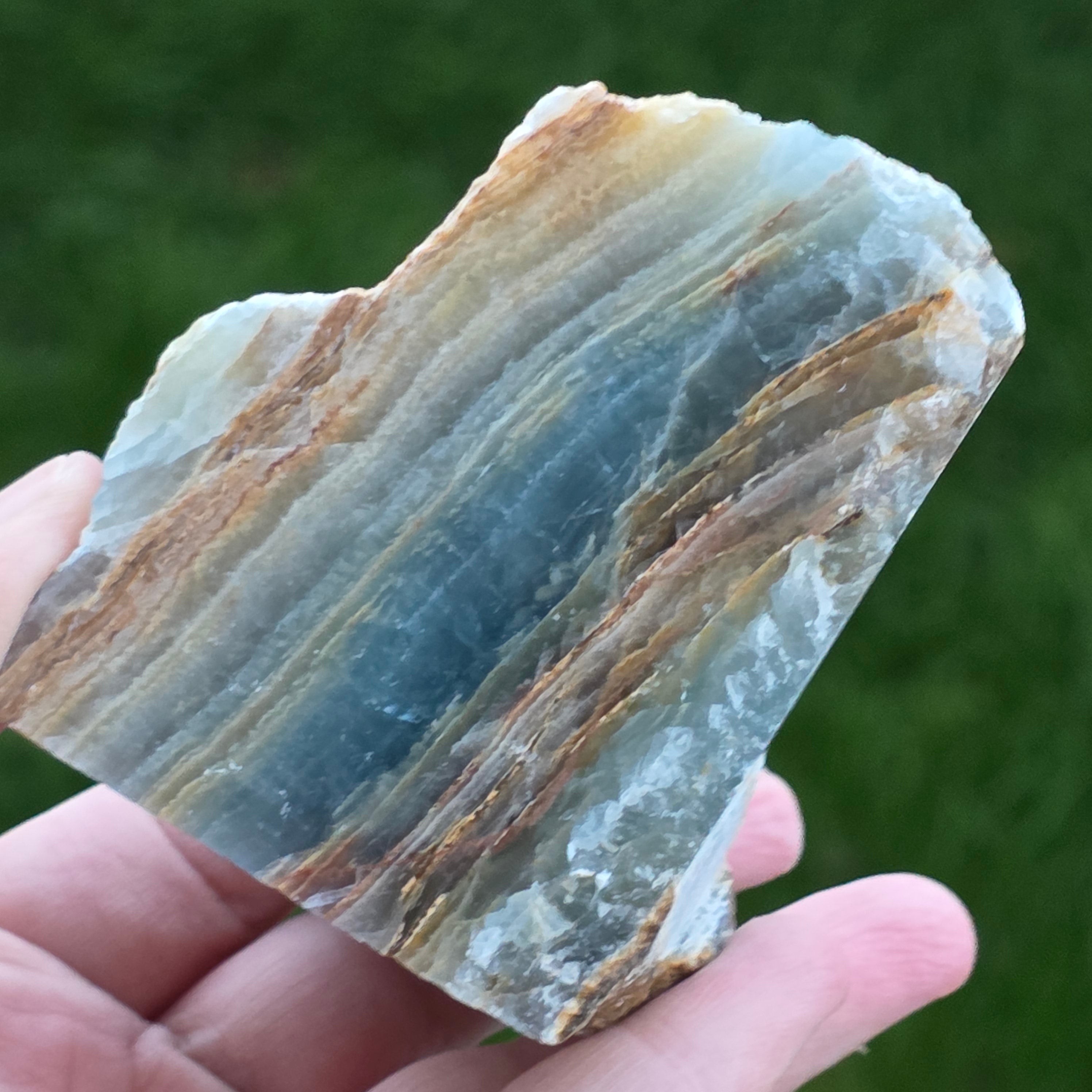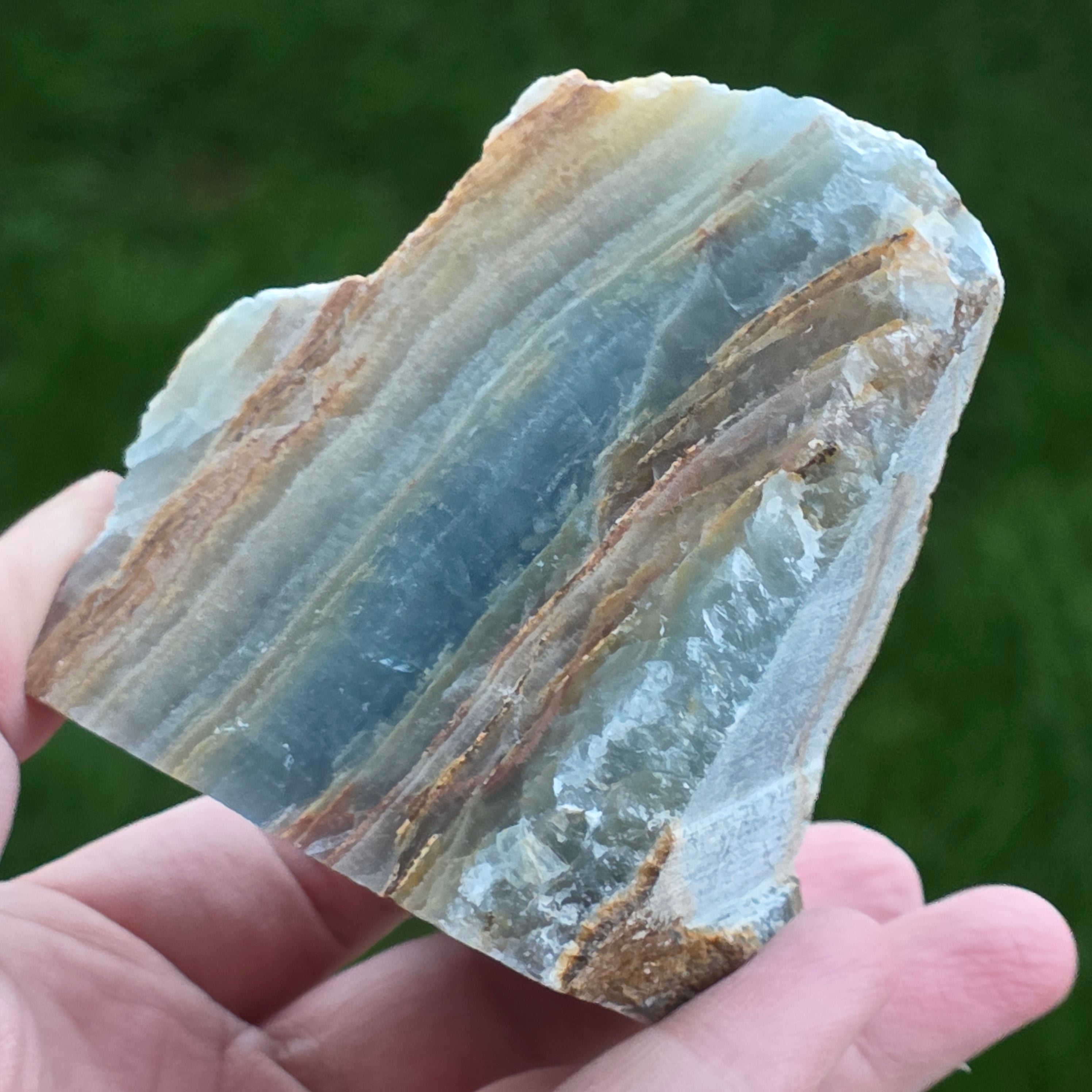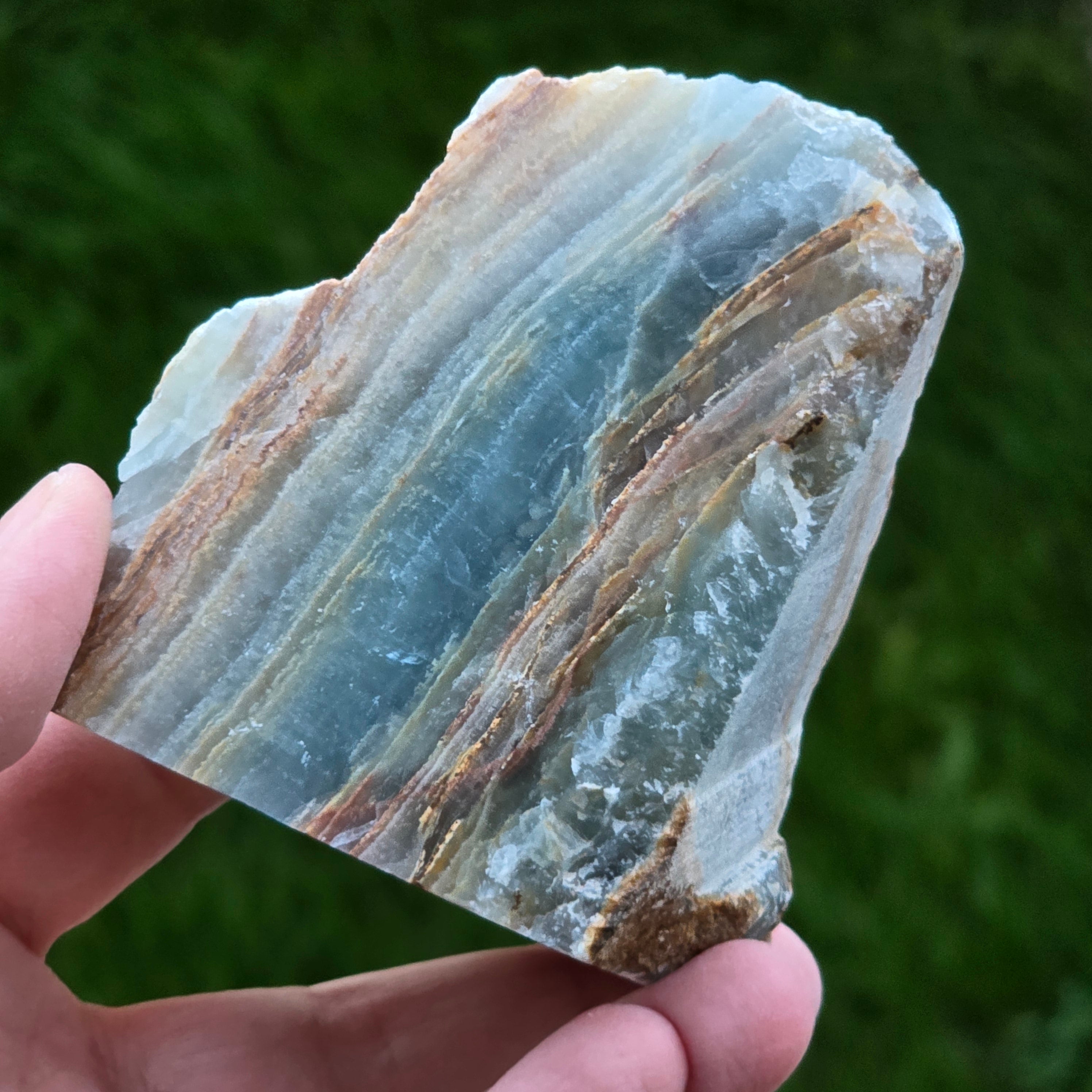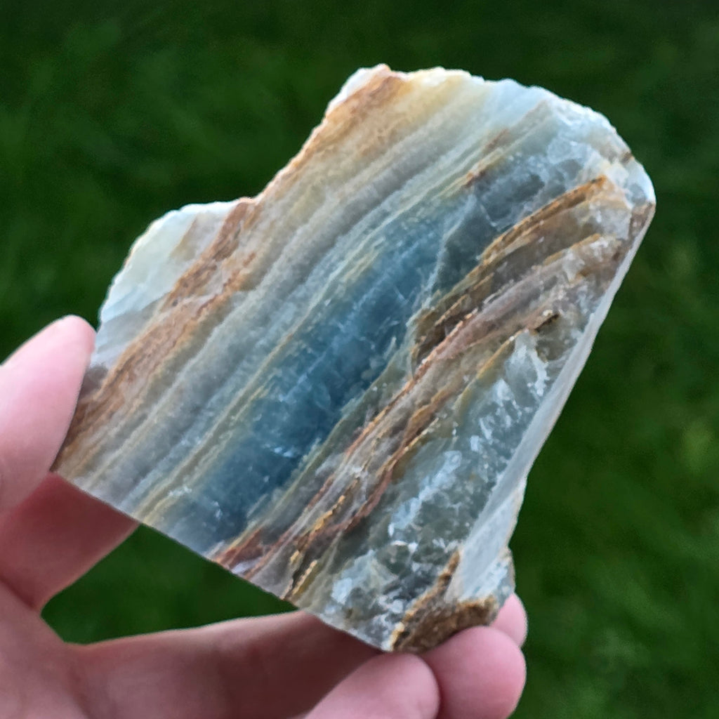 Onix albastru piatra bruta polisata pe o față | Model 1