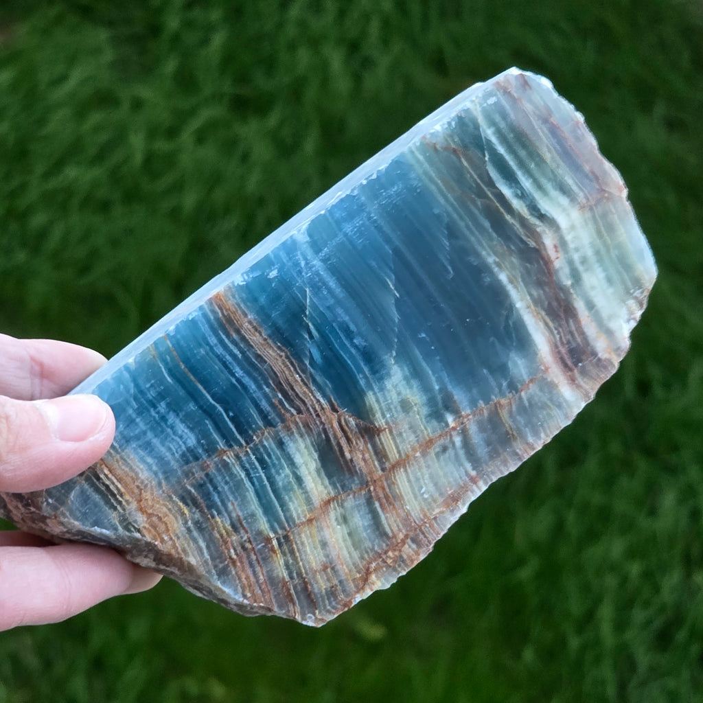 Onix albastru piatra bruta polisata pe o față | Model 2