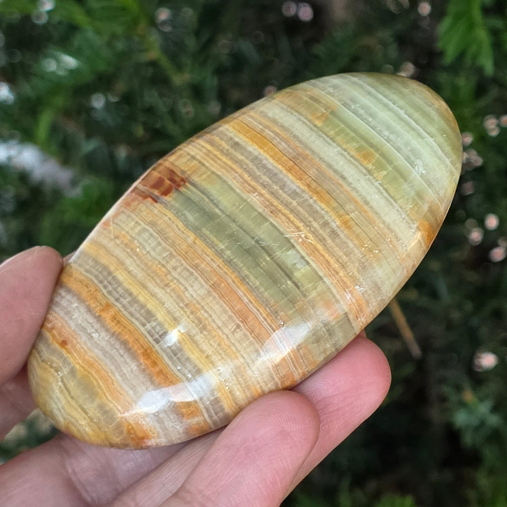 Ținut între palme, acest palmstone din onix verde natural devine un aliat al echilibrului, un memento tăcut al armoniei dintre trup și spirit. Este ideal pentru meditație, relaxare sau pur și simplu ca obiect decorativ cu energie blândă și rafinată.