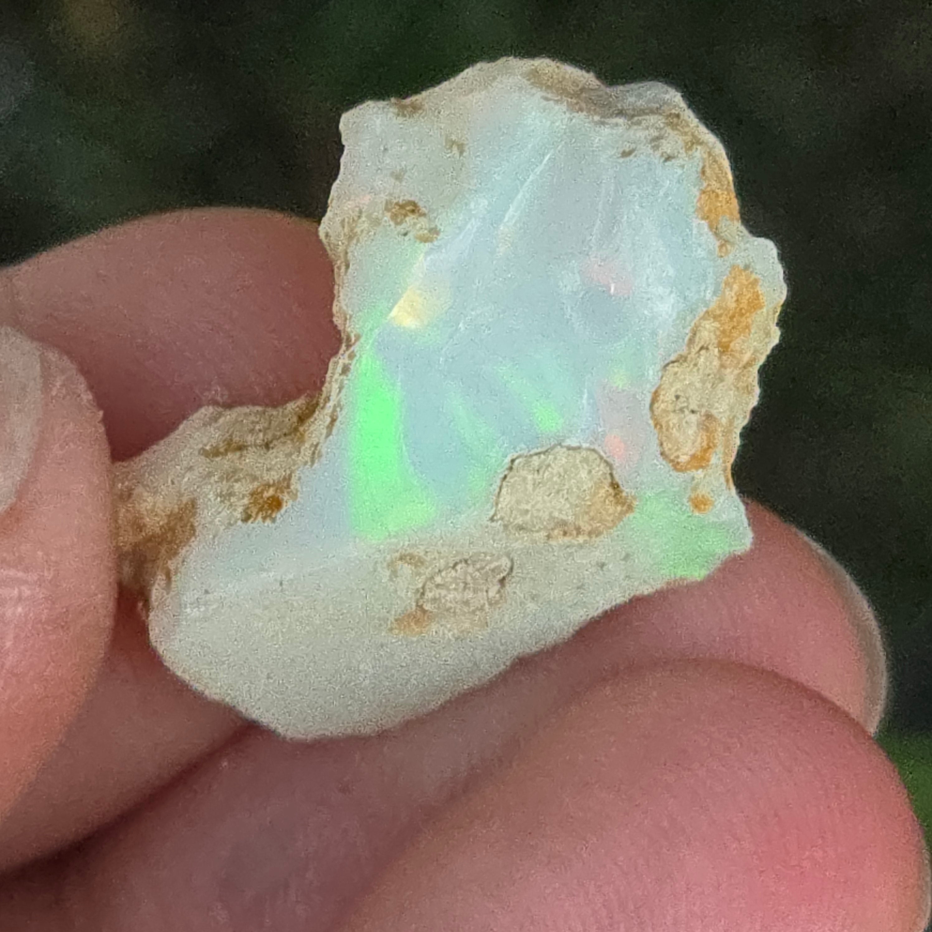 Când este privit în lumină, fiecare reflex devine un dans de culori — roșu aprins, verde electric, auriu topit — o manifestare naturală a fenomenului optic numit joc de culoare, specific doar celor mai valoroase opale.