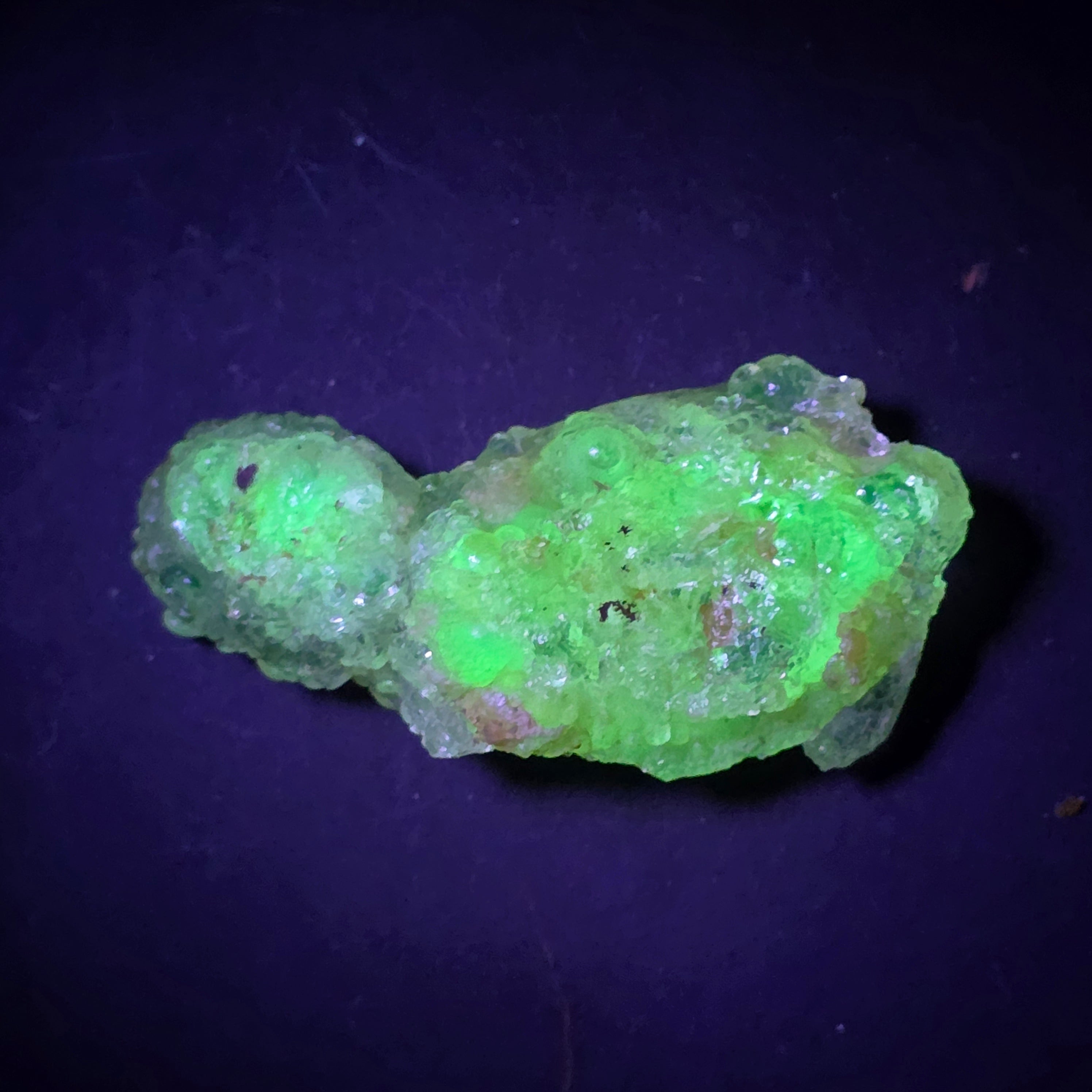 Acest opal hialit din Mexic este un specimen mineral rar și spectaculos, cunoscut pentru transparența sa sticloasă și pentru fluorescența verde intensă sub lumină UV, una dintre cele mai apreciate caracteristici ale acestui tip de opal. Piesele de hyalite provenite din Mexic sunt considerate de referință la nivel internațional.