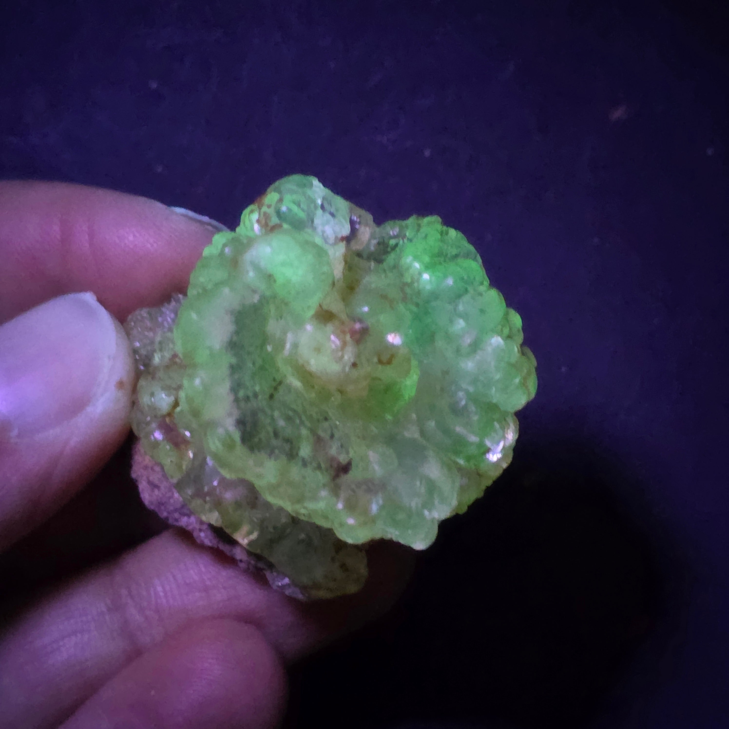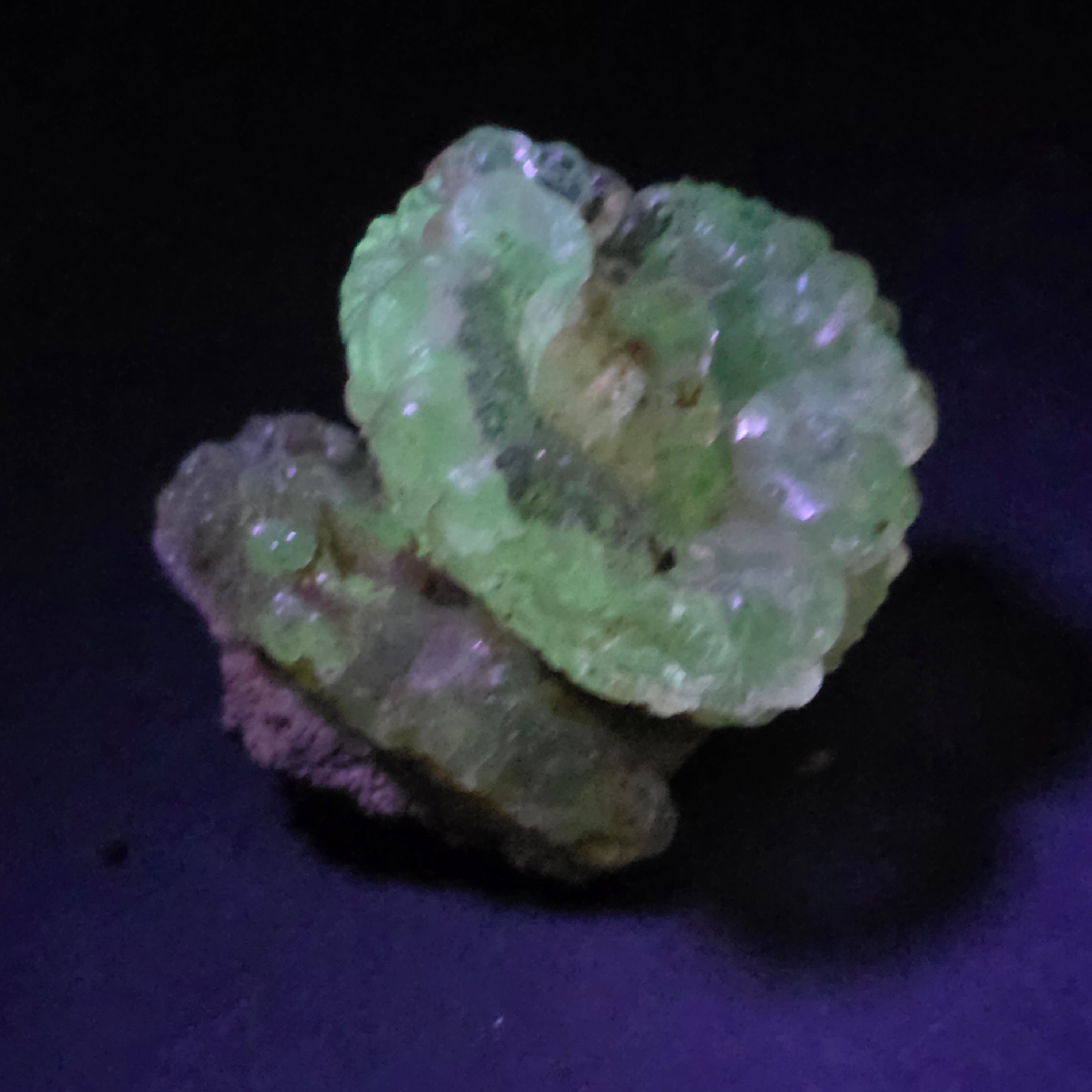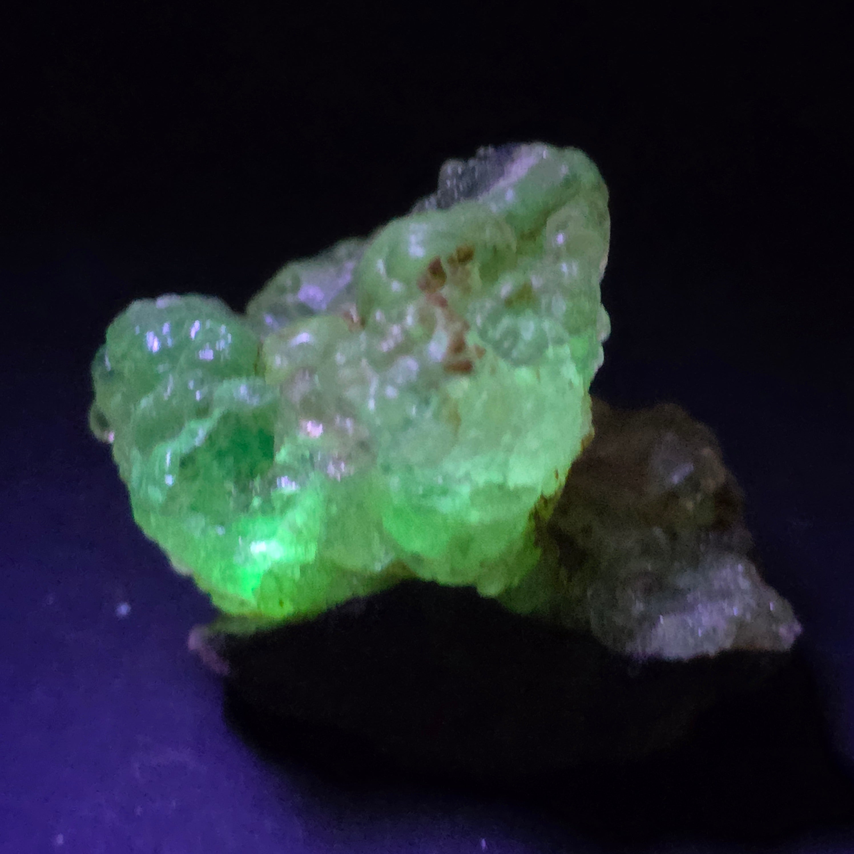 Acest opal hialit din Mexic este un specimen mineral rar și spectaculos, cunoscut pentru transparența sa sticloasă și pentru fluorescența verde intensă sub lumină UV, una dintre cele mai apreciate caracteristici ale acestui tip de opal. Piesele de hyalite provenite din Mexic sunt considerate de referință la nivel internațional.