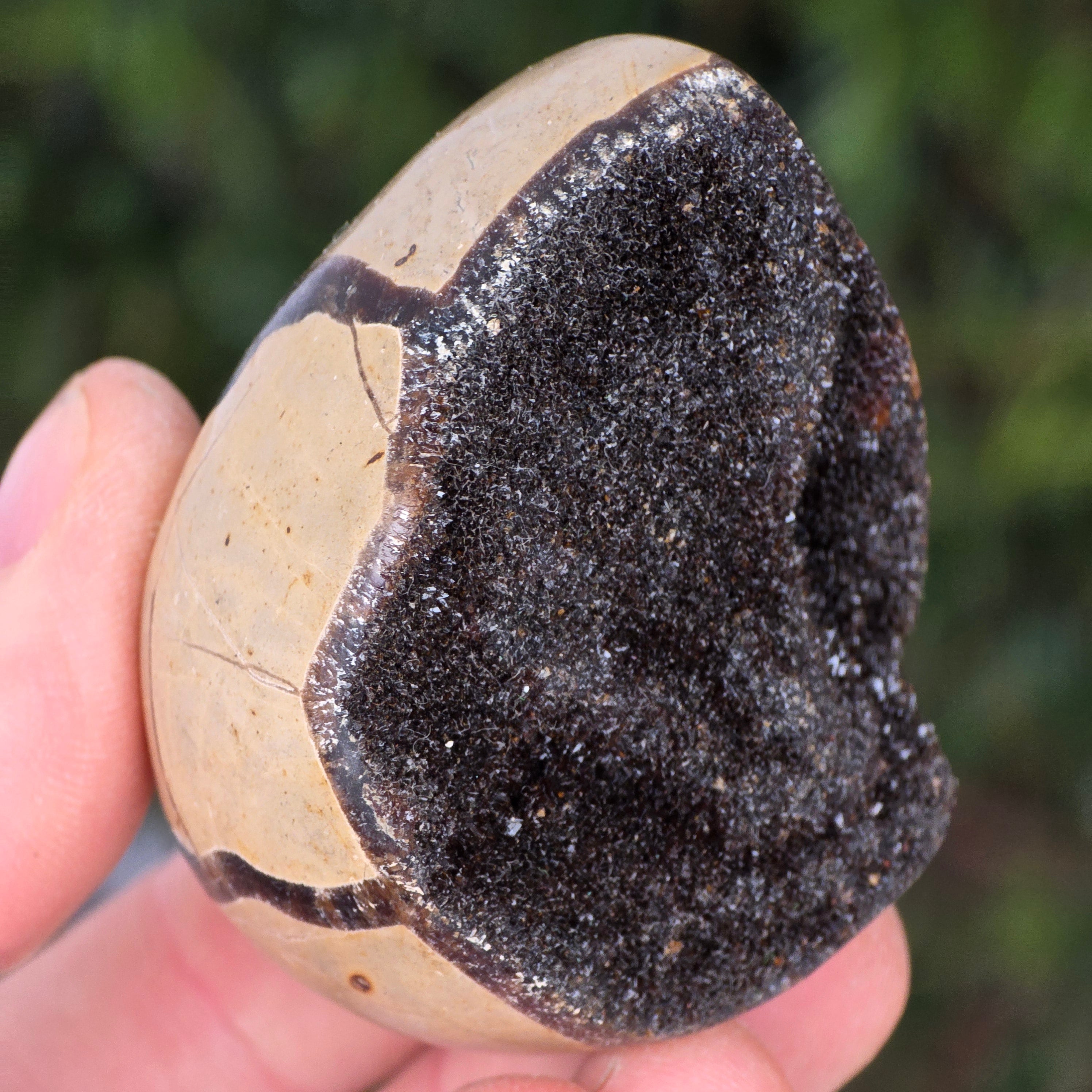 Septaria is made of calcite, limonite, gypsum and barite, minerals that form a unique play in this stone and give it a special appearance.