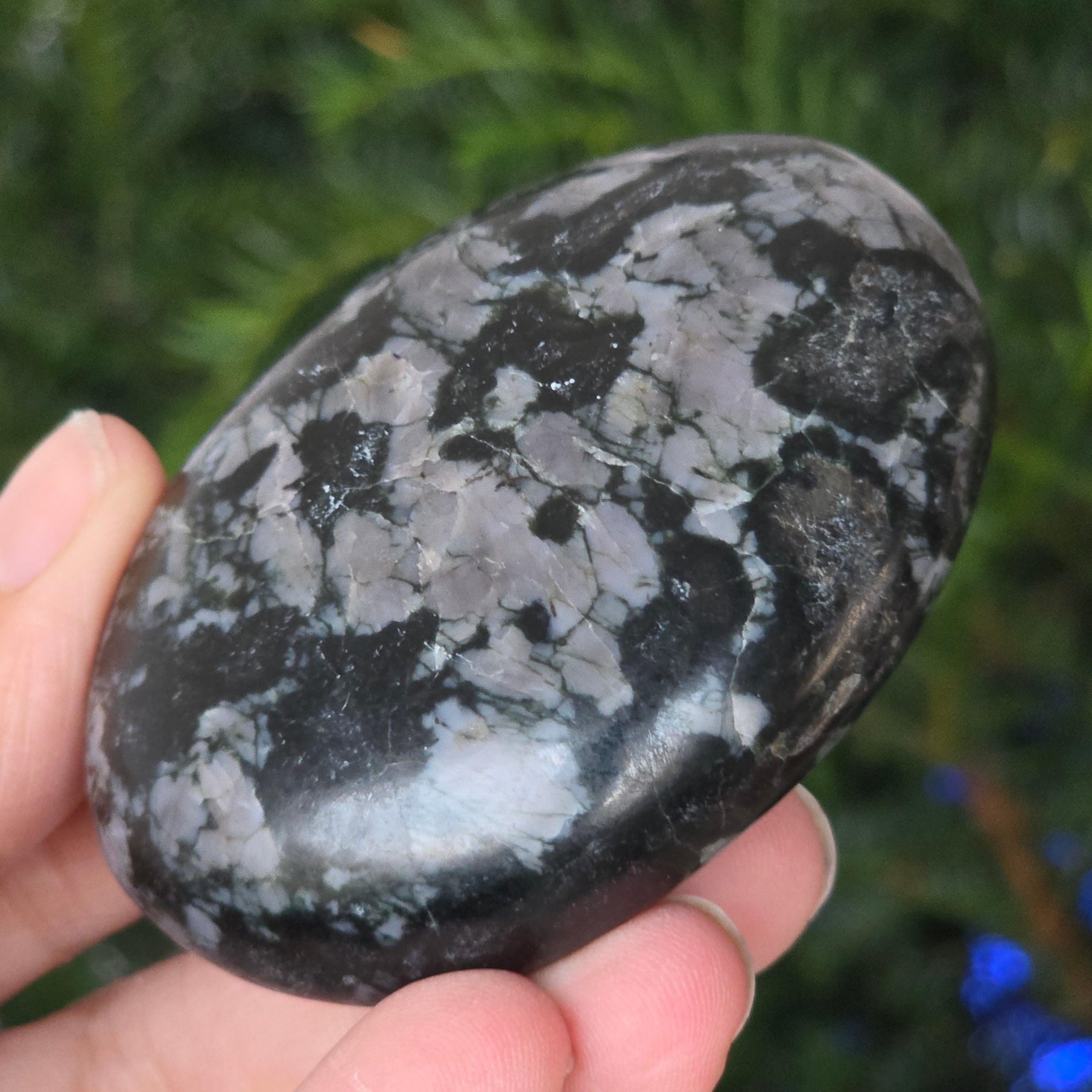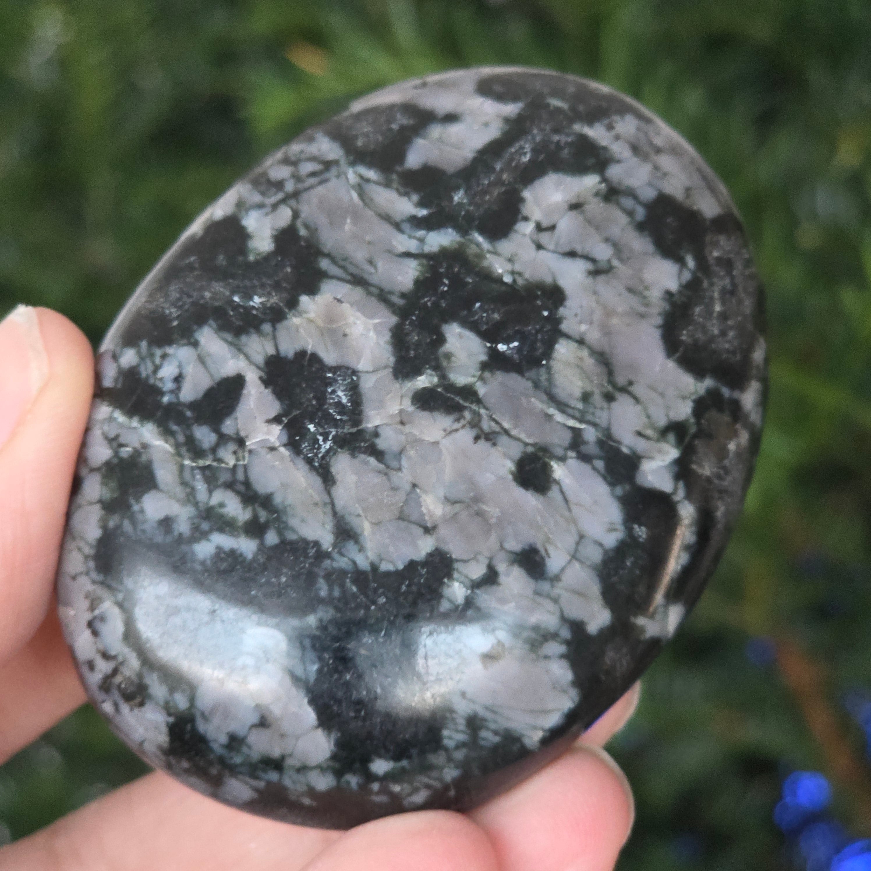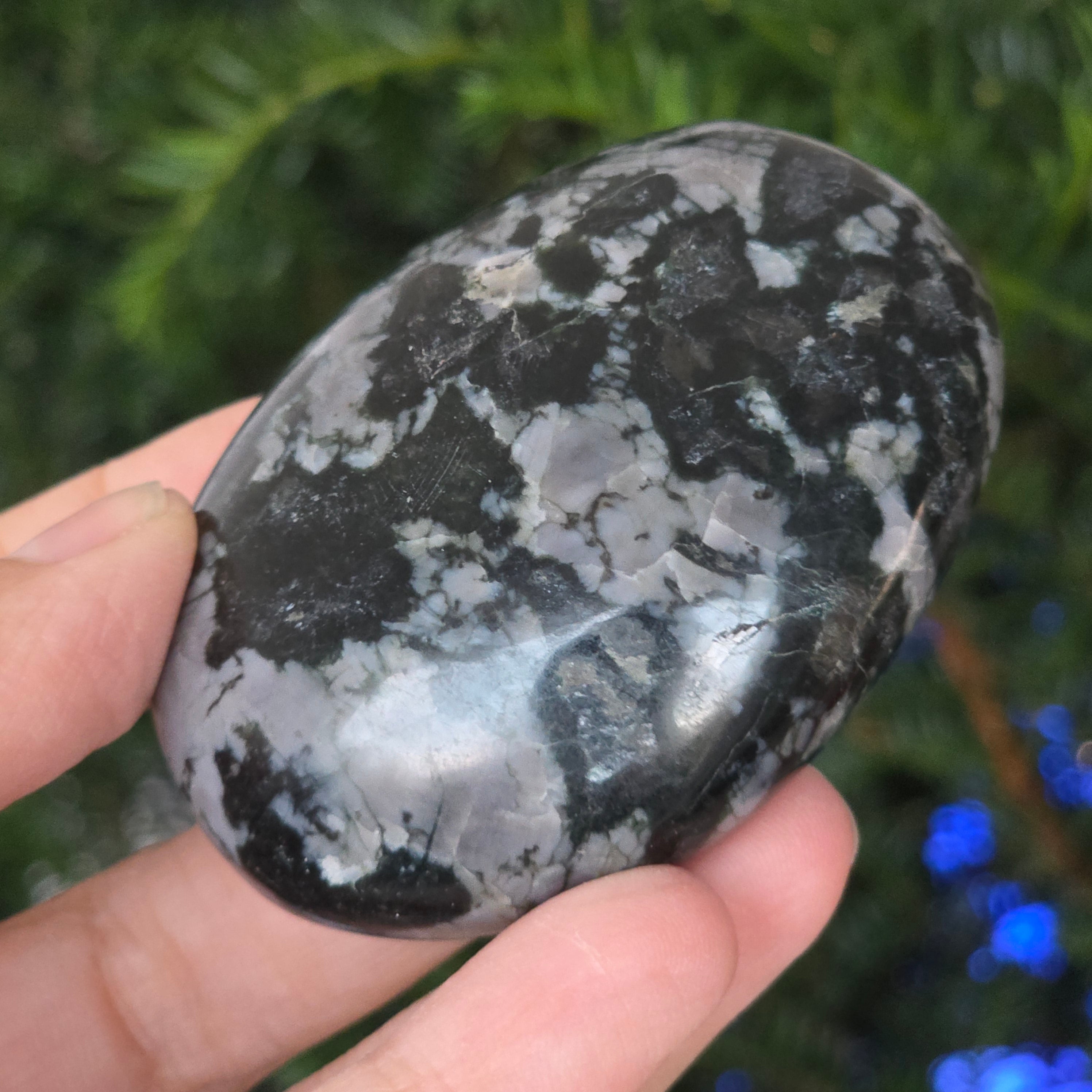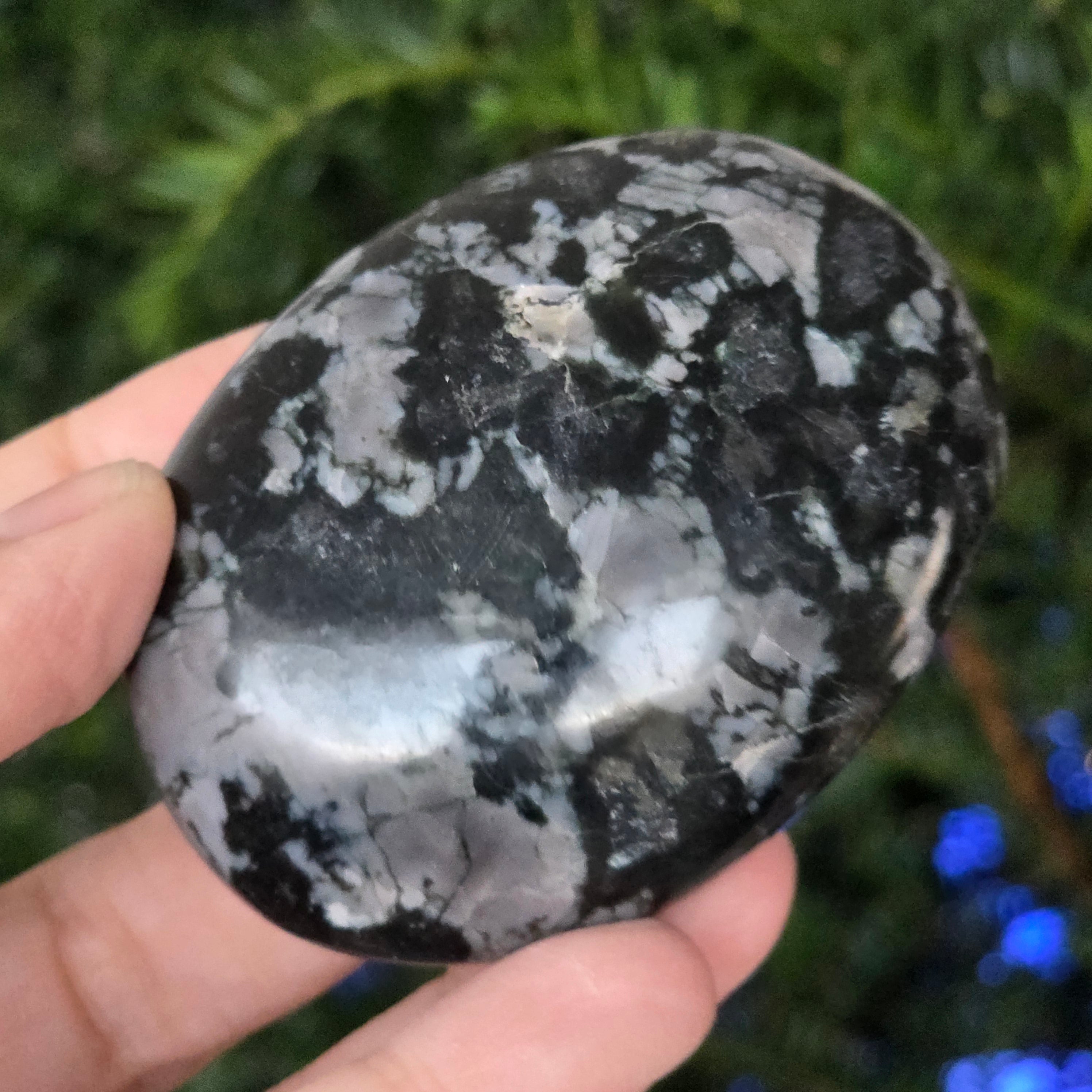 Merlinite is a rare and fascinating semi-precious stone, recognized for its combination of contrasting colors, black and white, which gives it a unique look. It is considered a variety of dendritic opal or a combination of quartz and other minerals, and its complex structure makes it valued both for its beauty and for its alleged energetic properties. Merlinite is known in the world of crystal healing for its mystical energies and its association with intuition, clairvoyance, and spiritual knowledge.