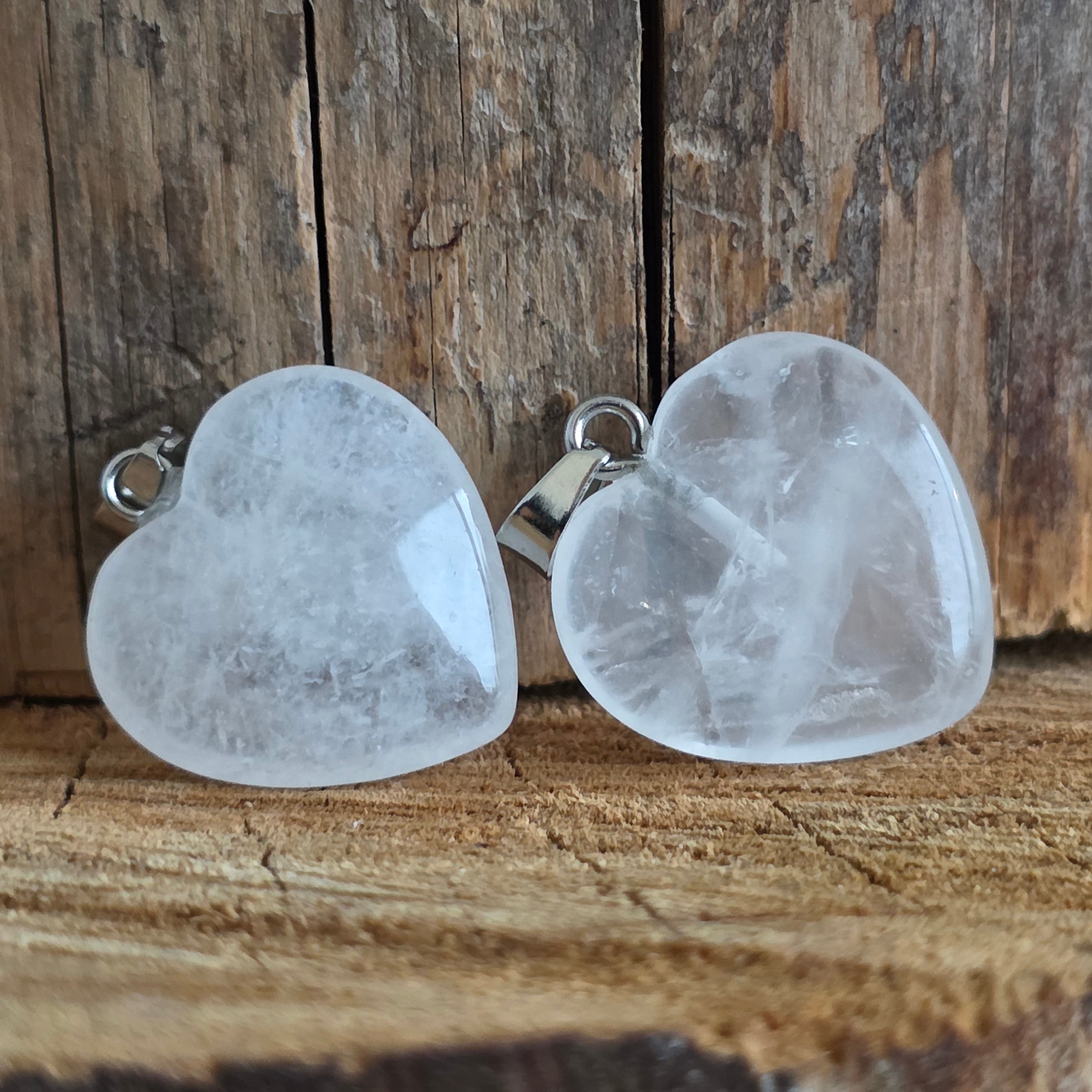Description - Pandantiv inima cuart incolor /cuart de stanca