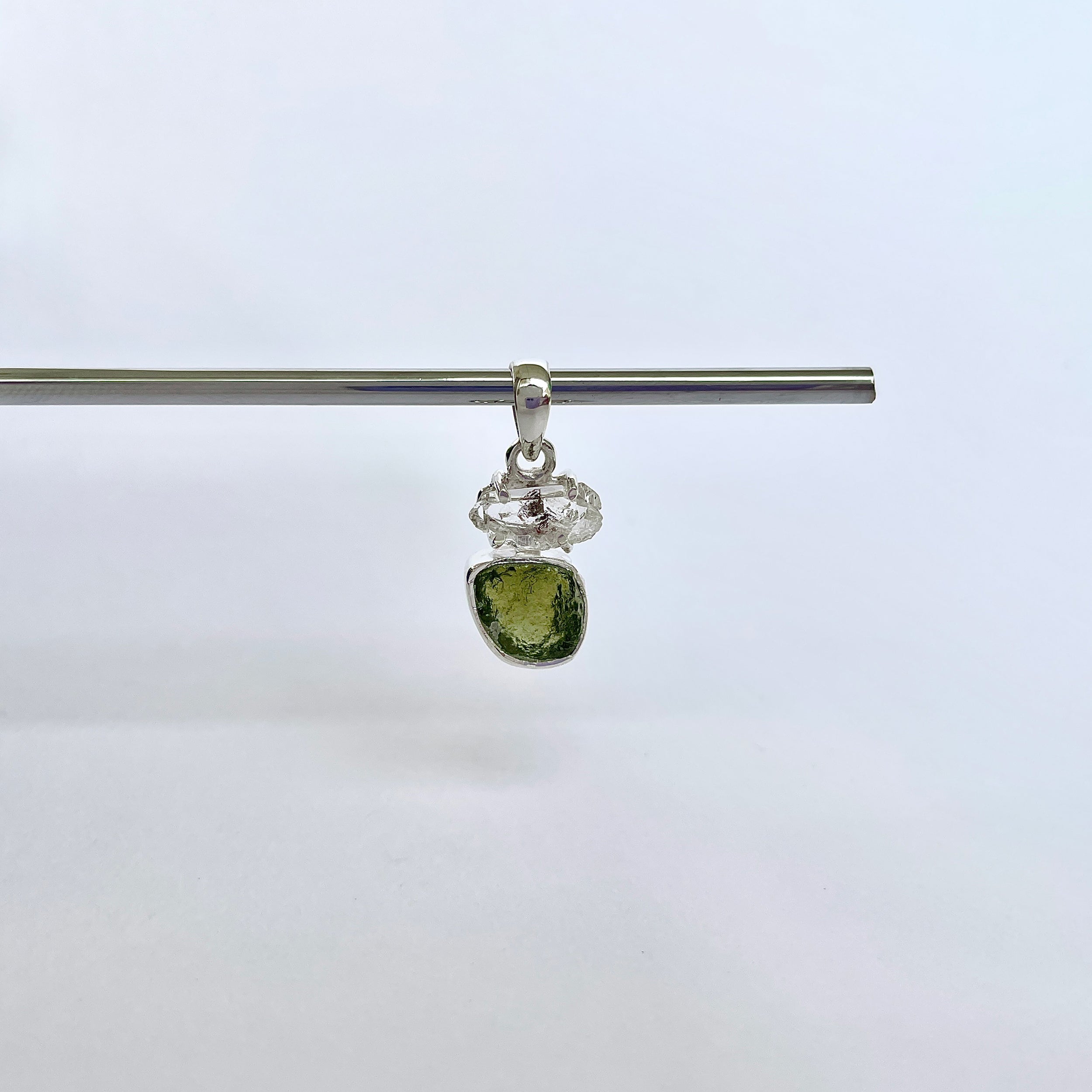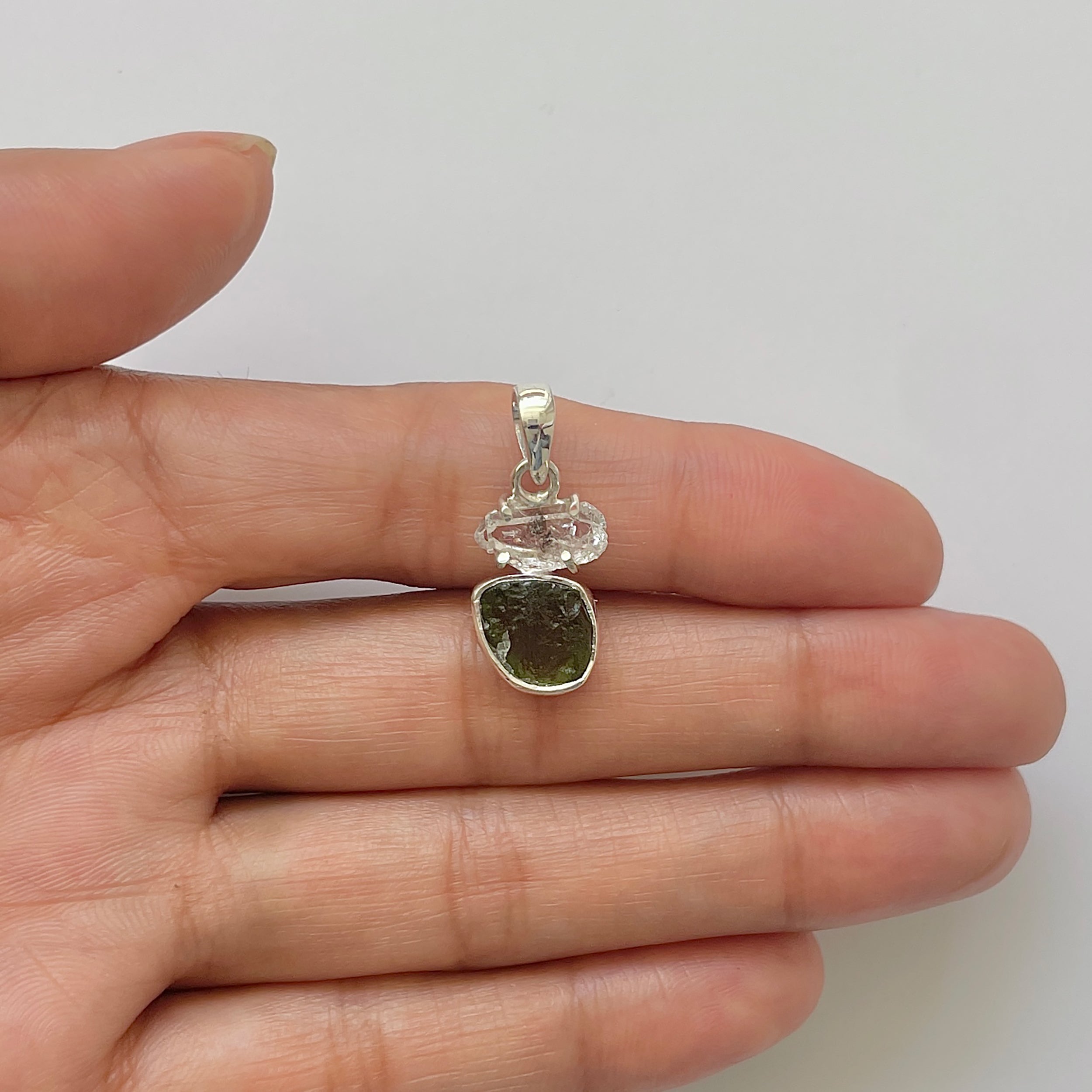 Dimensiune pietre: Moldavit ~ 0.9 x 0,8 cm, Herkimer ~ 1.1 x 0,6 cm