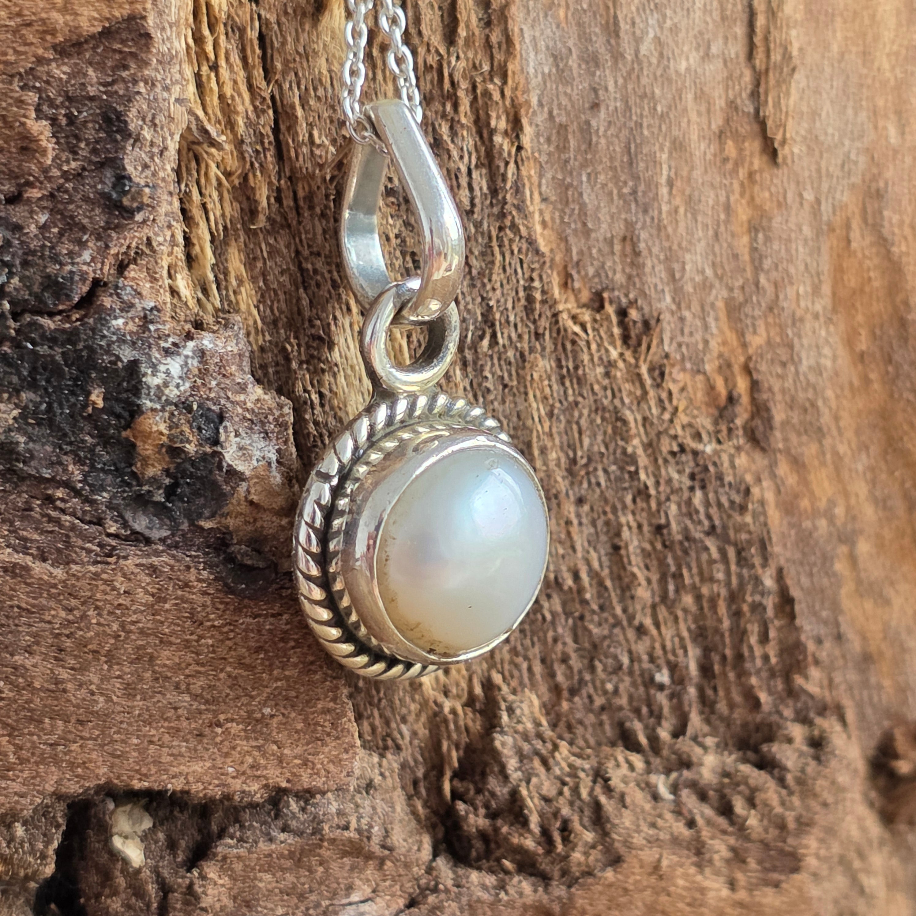 Un pandantiv rafinat din argint 925, ce poartă în centrul său o perlă naturală cu luciu delicat și reflexe sidefate de alb, roz pal și gri perlat.