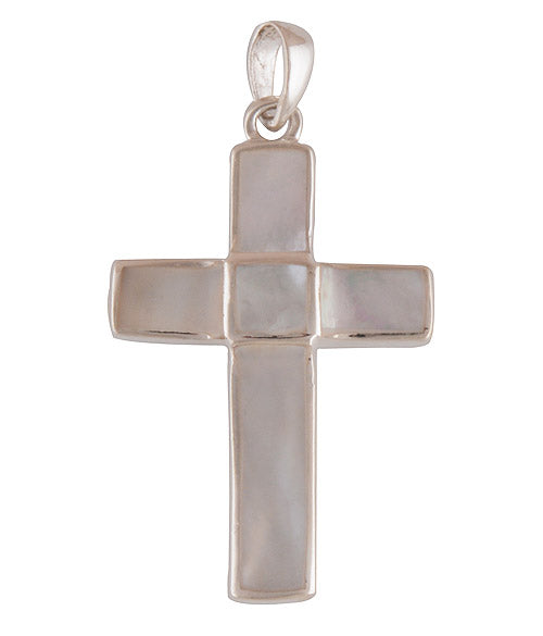 Forma clasică de cruce simbolizează protecția, credința și echilibrul interior, iar montura simplă, cu linii curate, pune în valoare luminozitatea organică a sidefului.