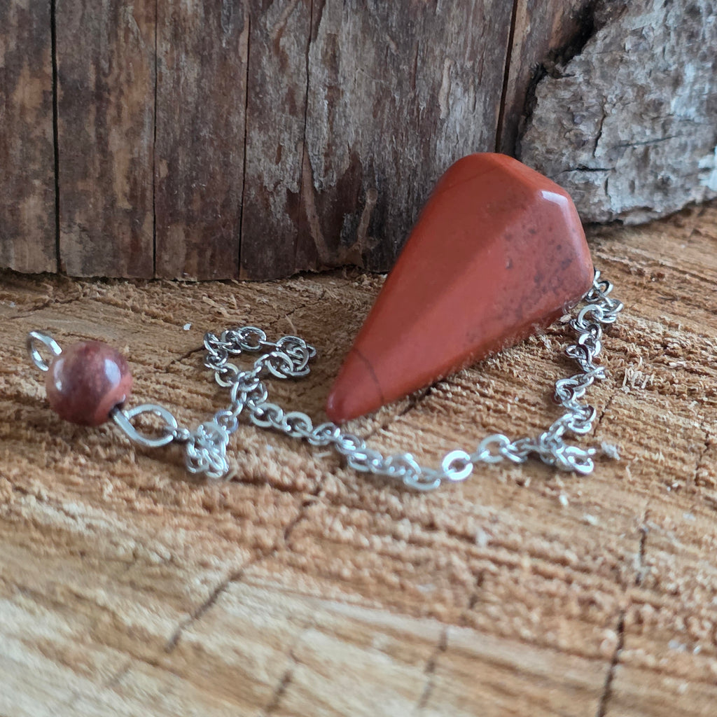 Pendulul din Jasp Roșu este o piesă mică, dar plină de intensitate și caracter – un instrument clasic pentru lucru energetic, rafinat prin simplitatea lui naturală. Jaspul roșu este apreciat pentru culoarea sa caldă, pământie, un roșu intens ce amintește de argilele fierbinți și de stabilitatea adâncurilor. În forma de pendul, această piatră capătă o eleganță aparte: un vârf perfect șlefuit, proporționat, capabil să se miște fluid în răspuns la întrebări, intenții și introspecție.
