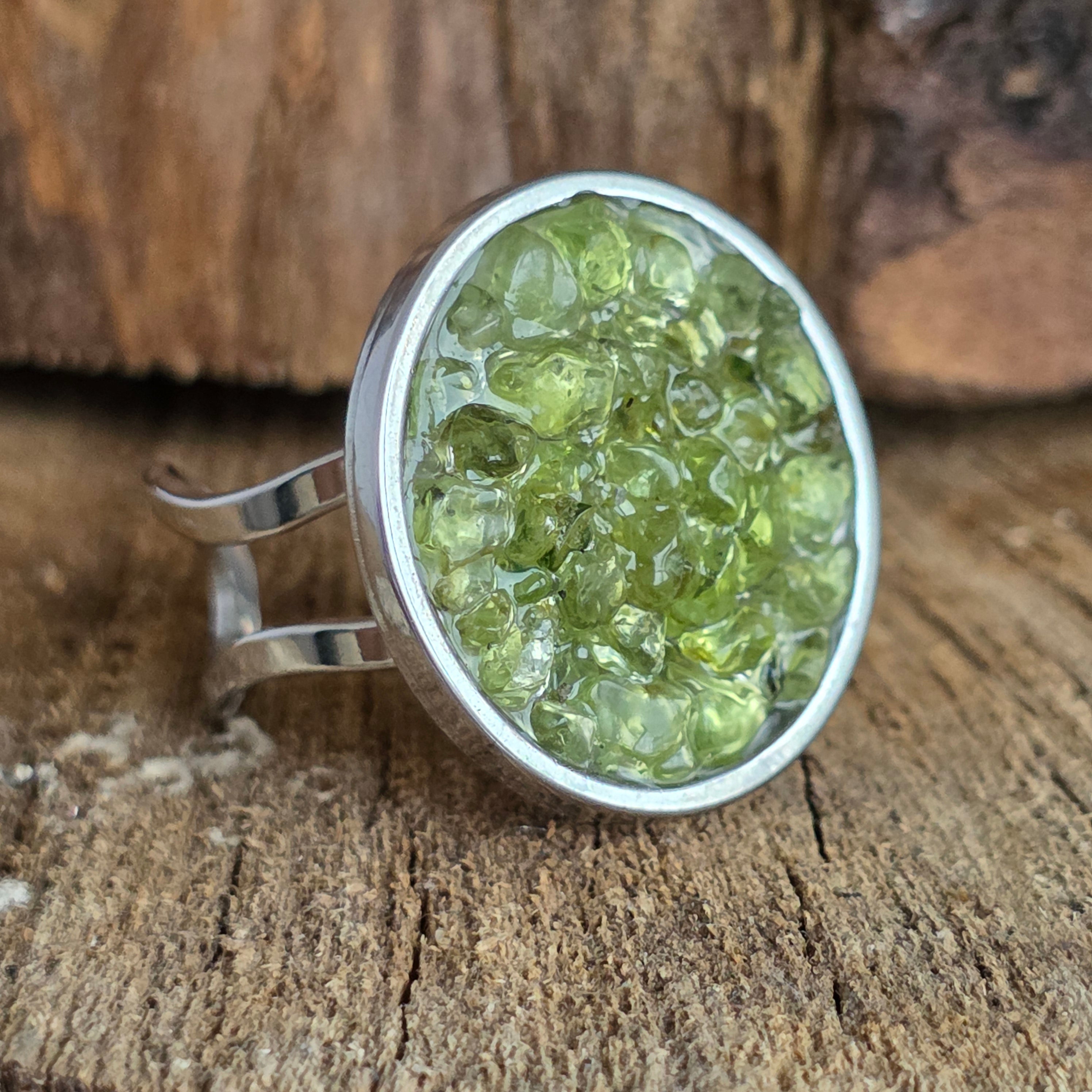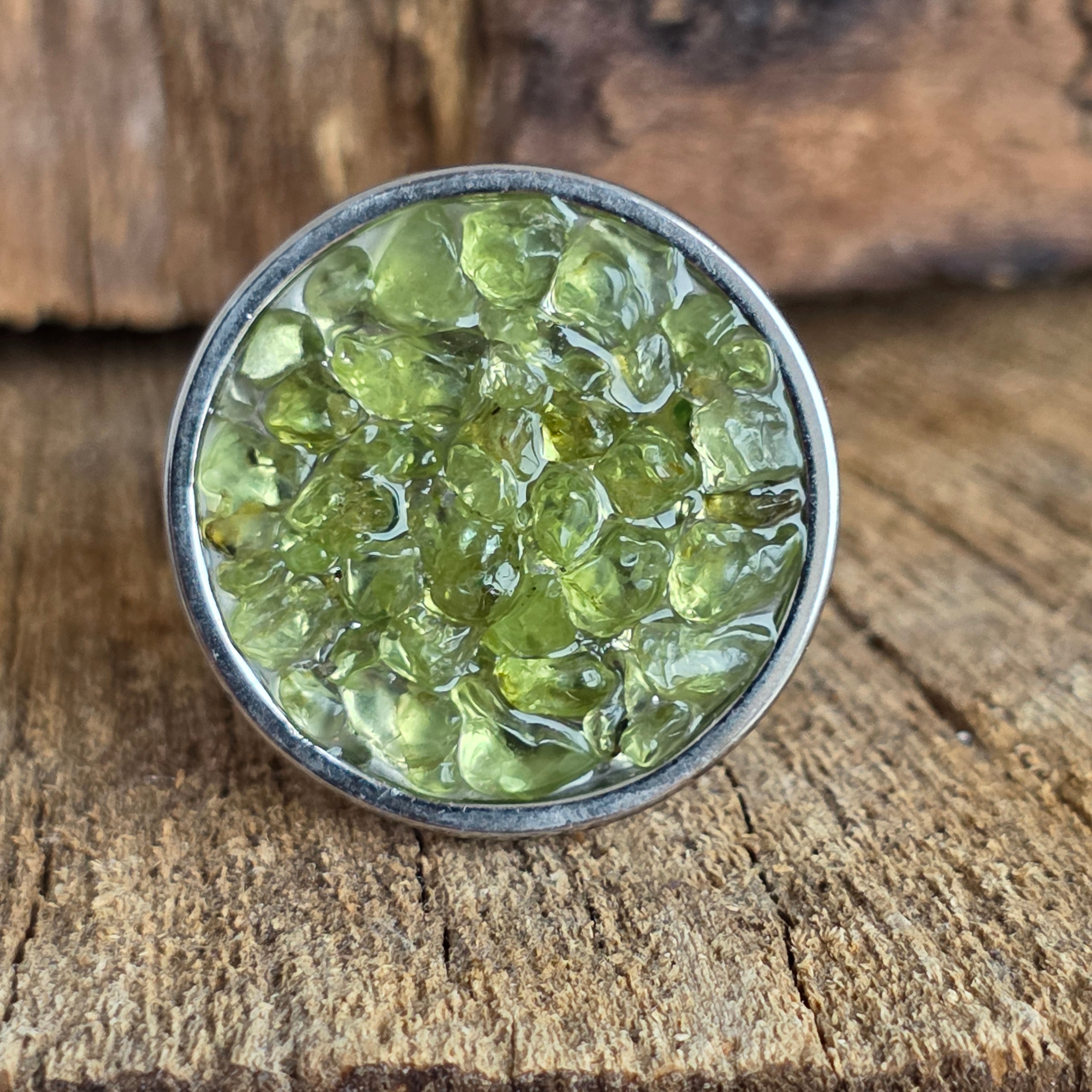 Materials: peridot, stainless steel, resin