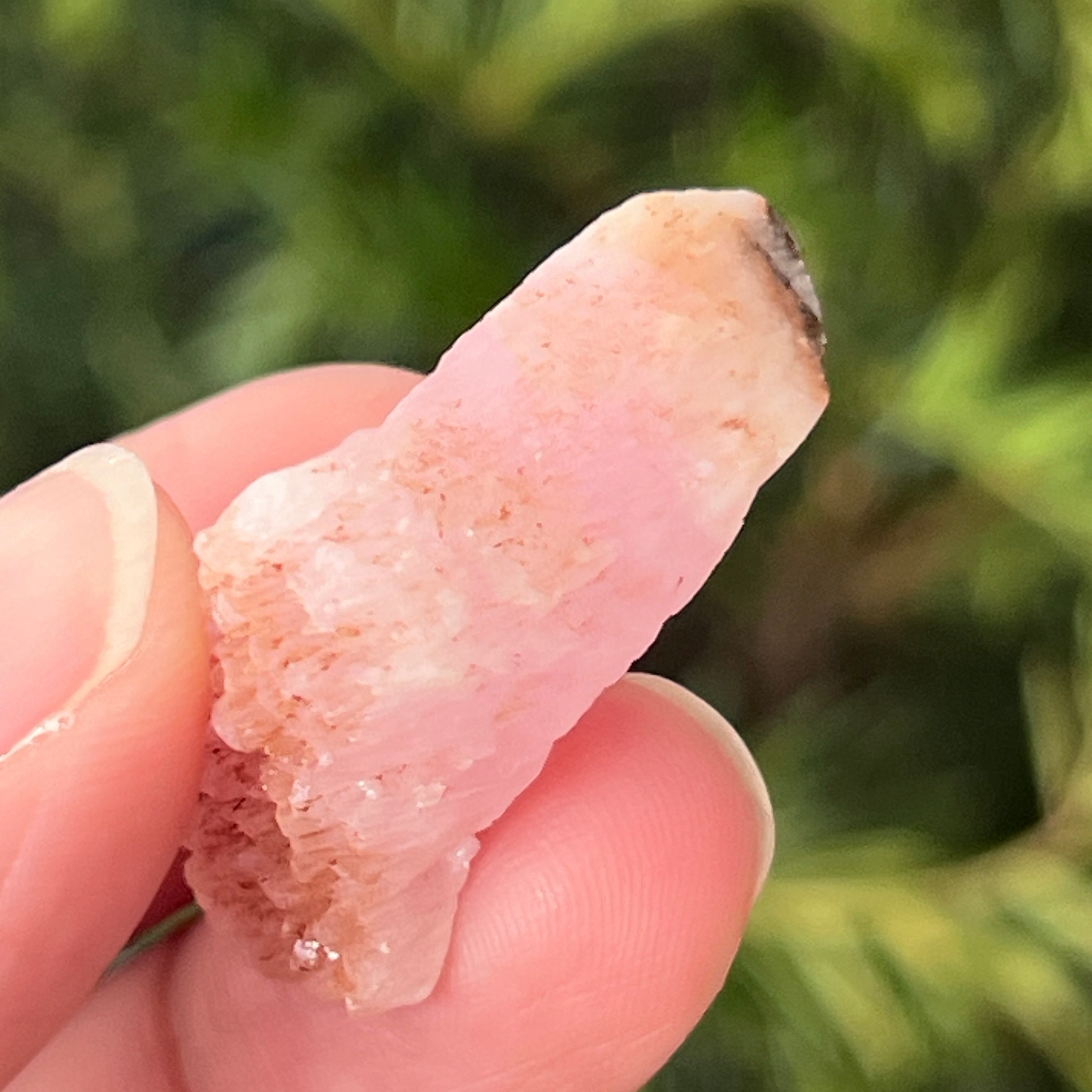 Pink aragonite is a less common semi-precious stone. It is made up of calcium carbonate and has a pink-orange color due to iron impurities.
