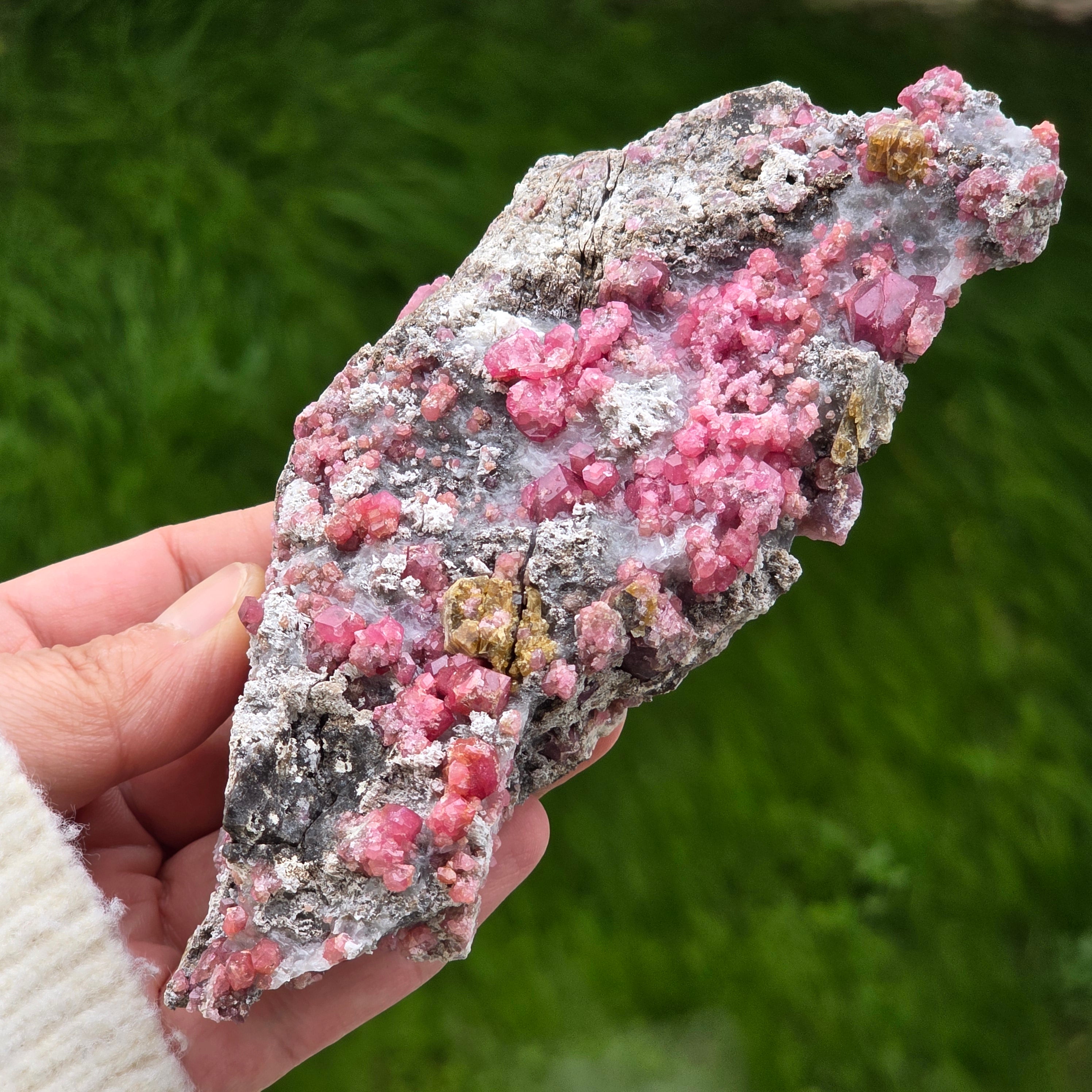 This pink garnet in matrix specimenfrom Sierra de Cruces Mine, Sierra Morada area, Mexicois an authentic mineralogical piece, valued for its delicate, rare colorand for the natural way the crystals are embedded in the host rock. Its provenance from Sierra Morada adds collector value, as this region is known for well-preserved specimens with clear geological expression.