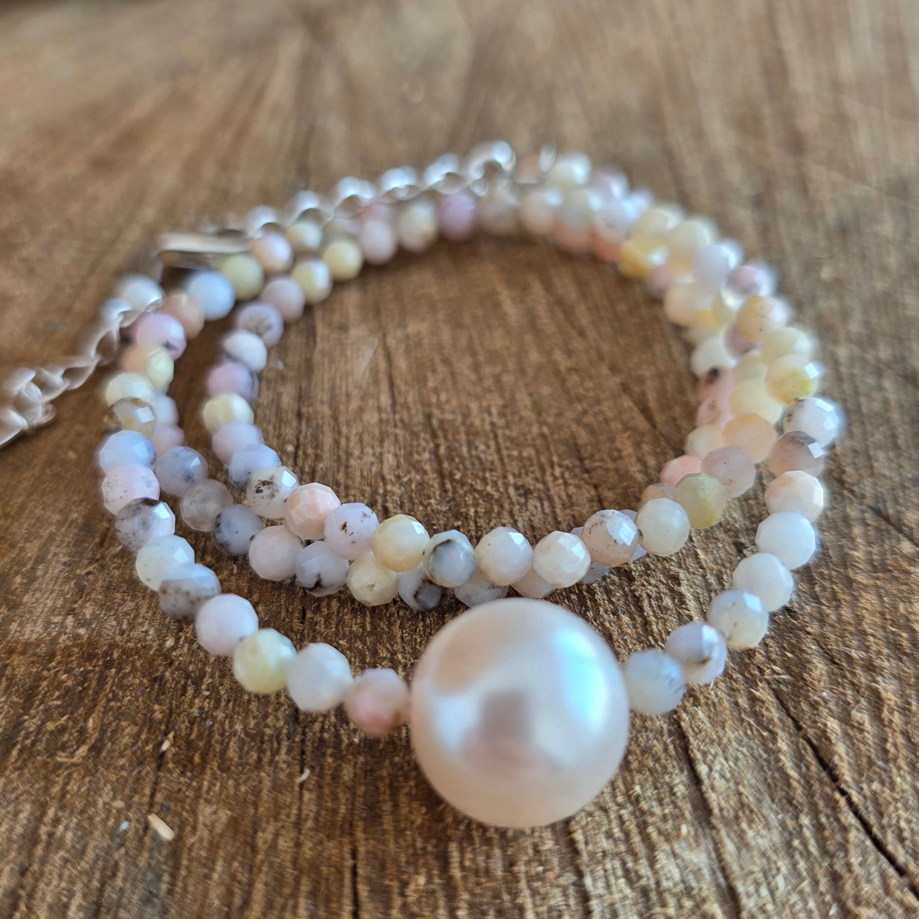 Materials: natural pink opal, 3 mm faceted beads, 925 silver