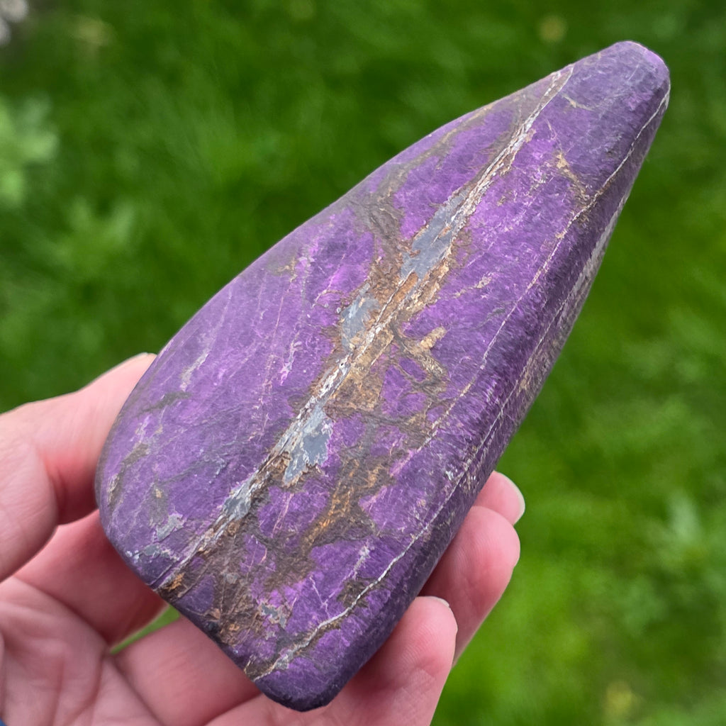 Purple is often associated with the development of spiritual consciousness, meditation and understanding of the deep self. This stone is said to support introspective qualities and stimulate creativity.