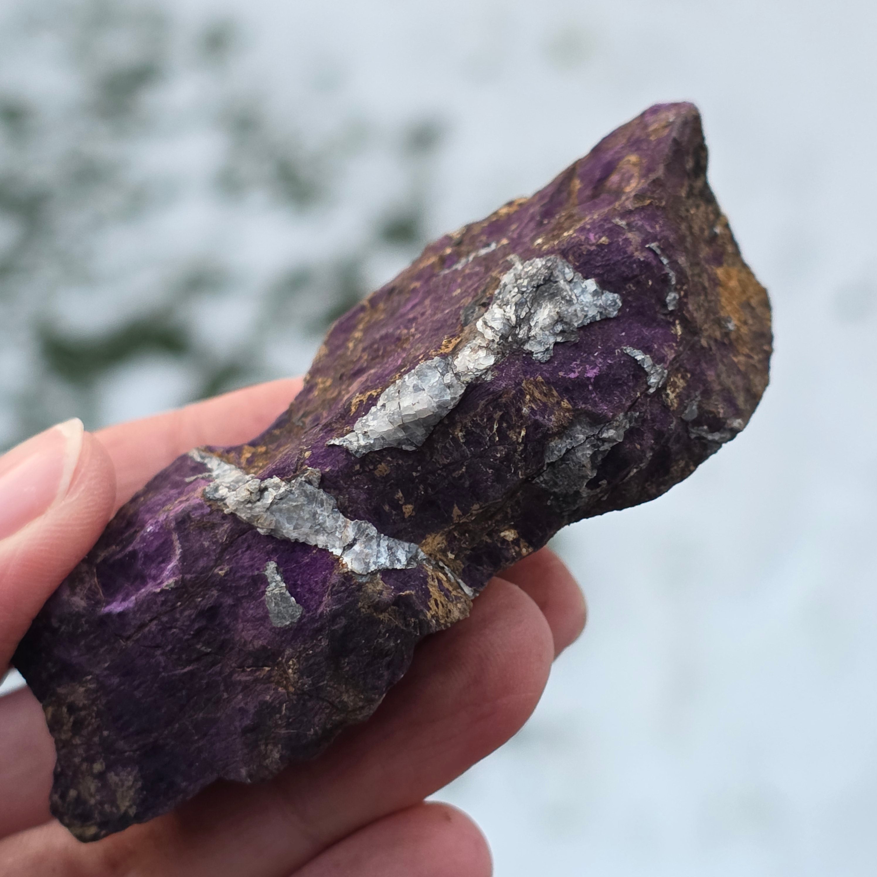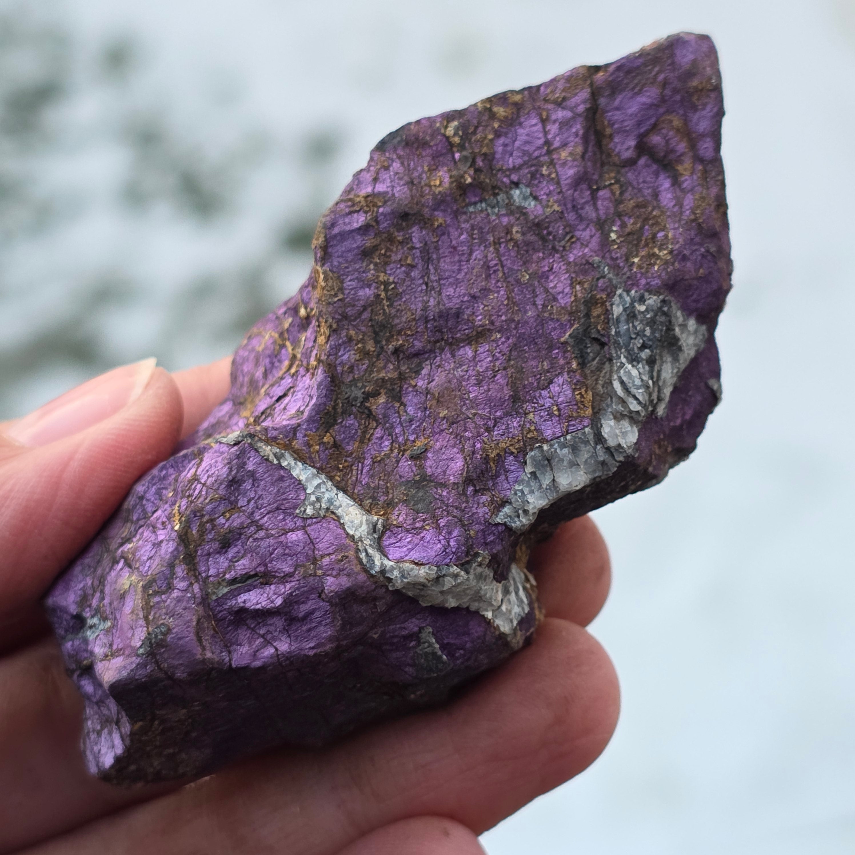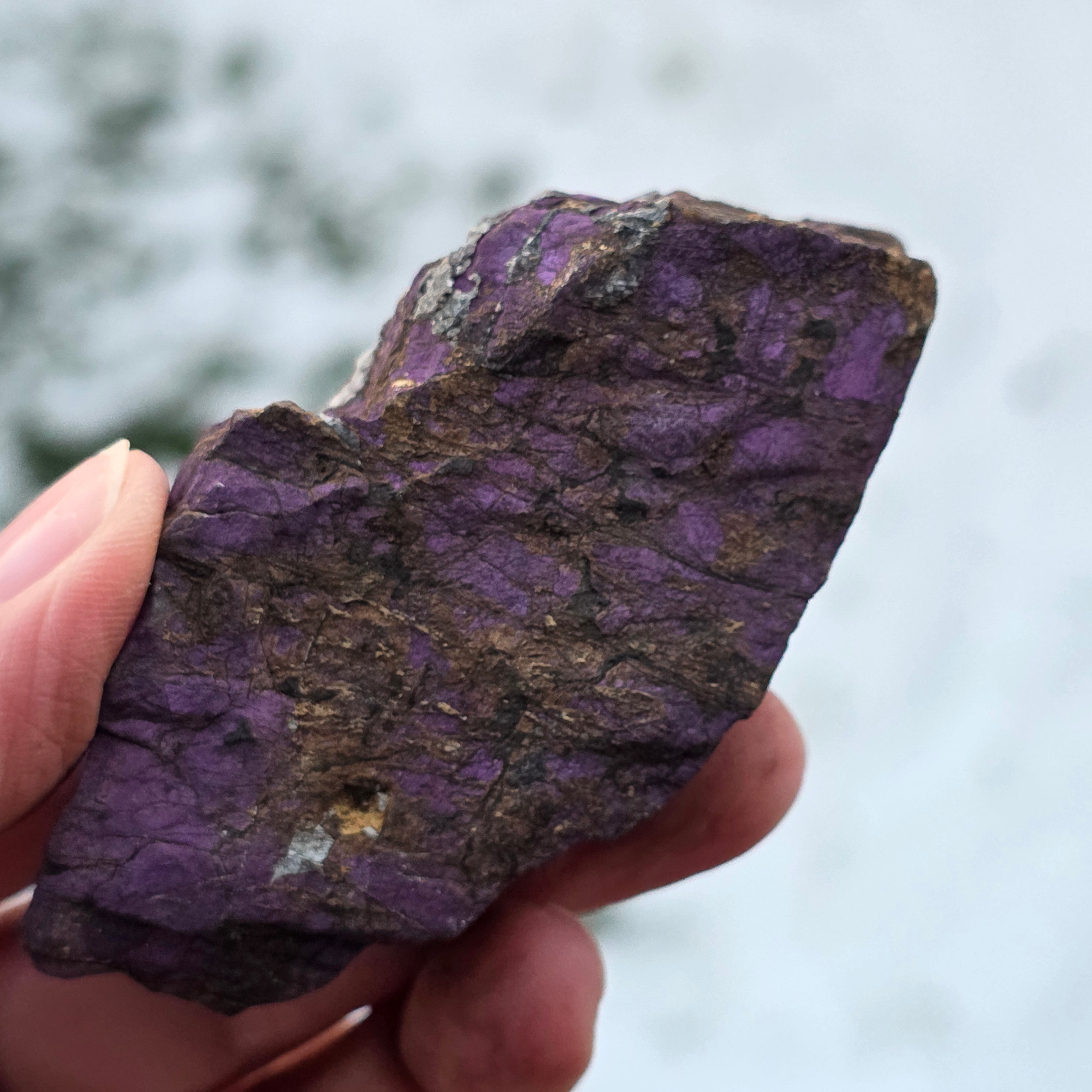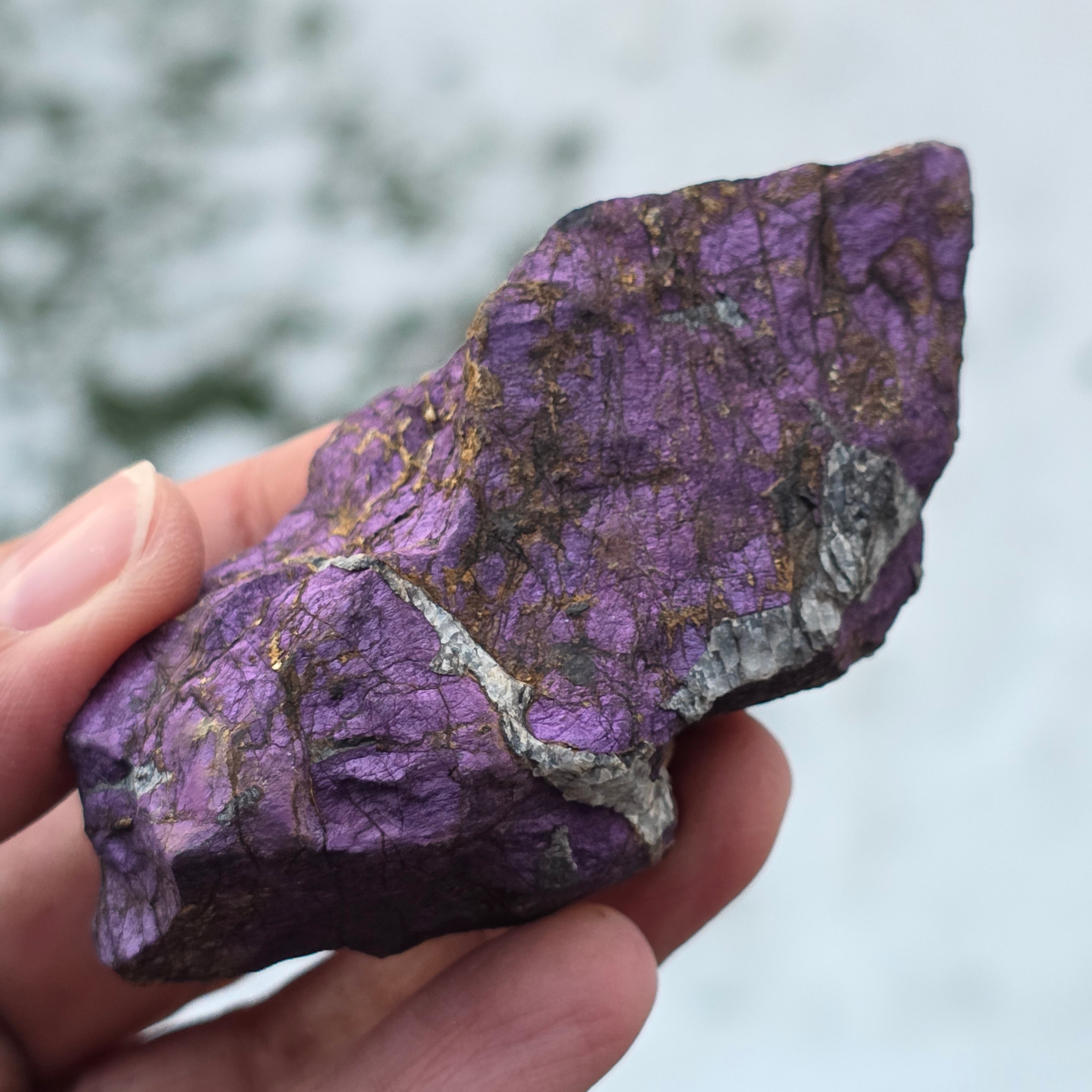 Purpurite is made up of a mineral called "purpurite," which is a phosphate of manganese and iron. Purpurite can have a granular texture and vary in the intensity of its color.