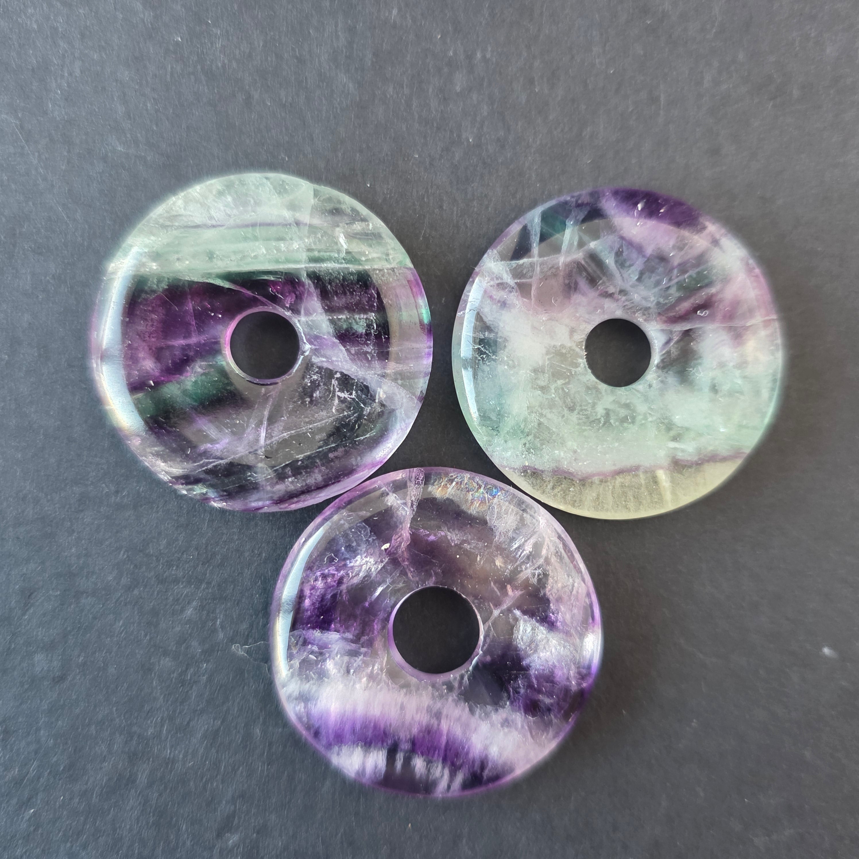 Rainbow fluorite pi donut stone pendant