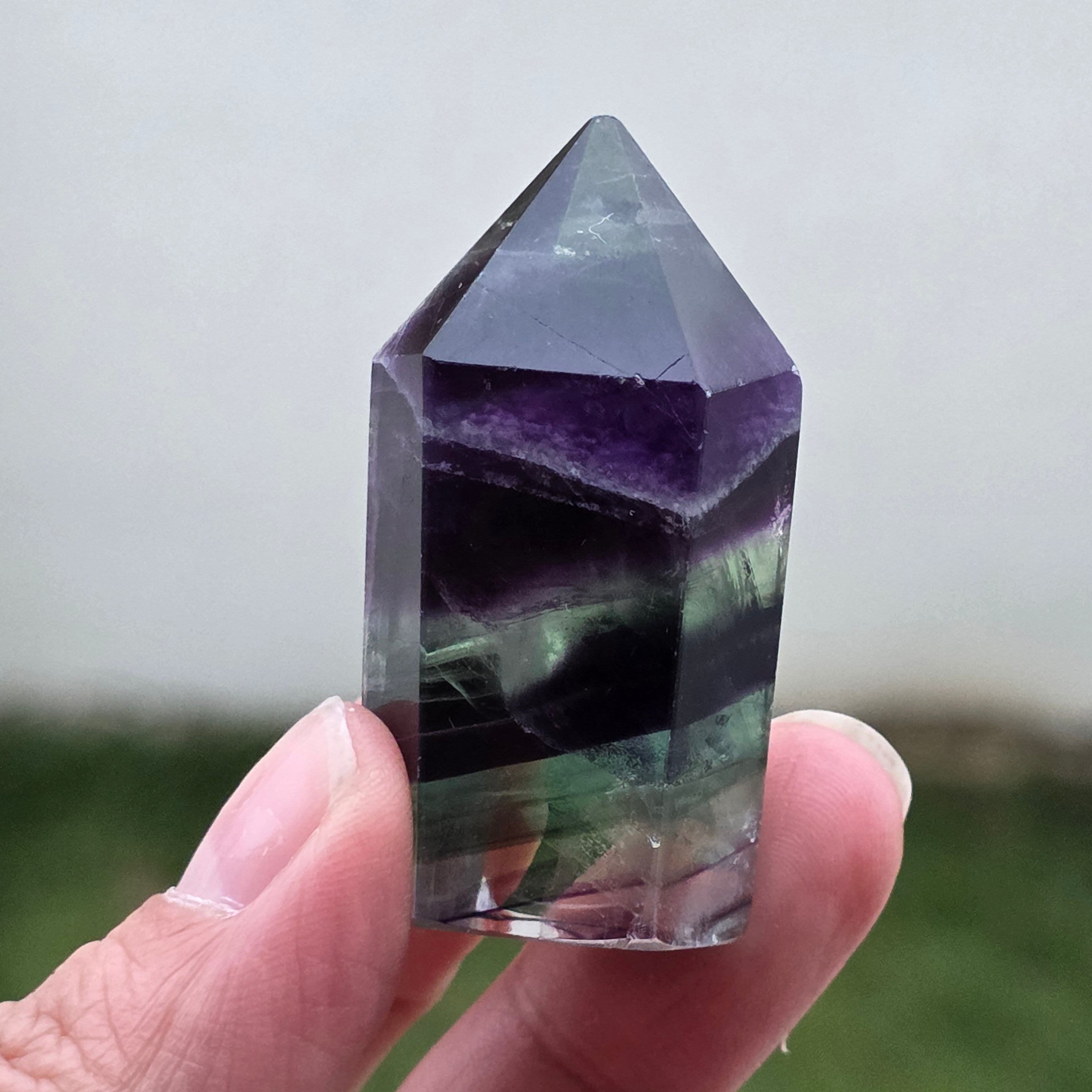 Rainbow fluorite helps balance and harmonize the energy around and is often used to see situations from multiple perspectives and expand our viewpoints.