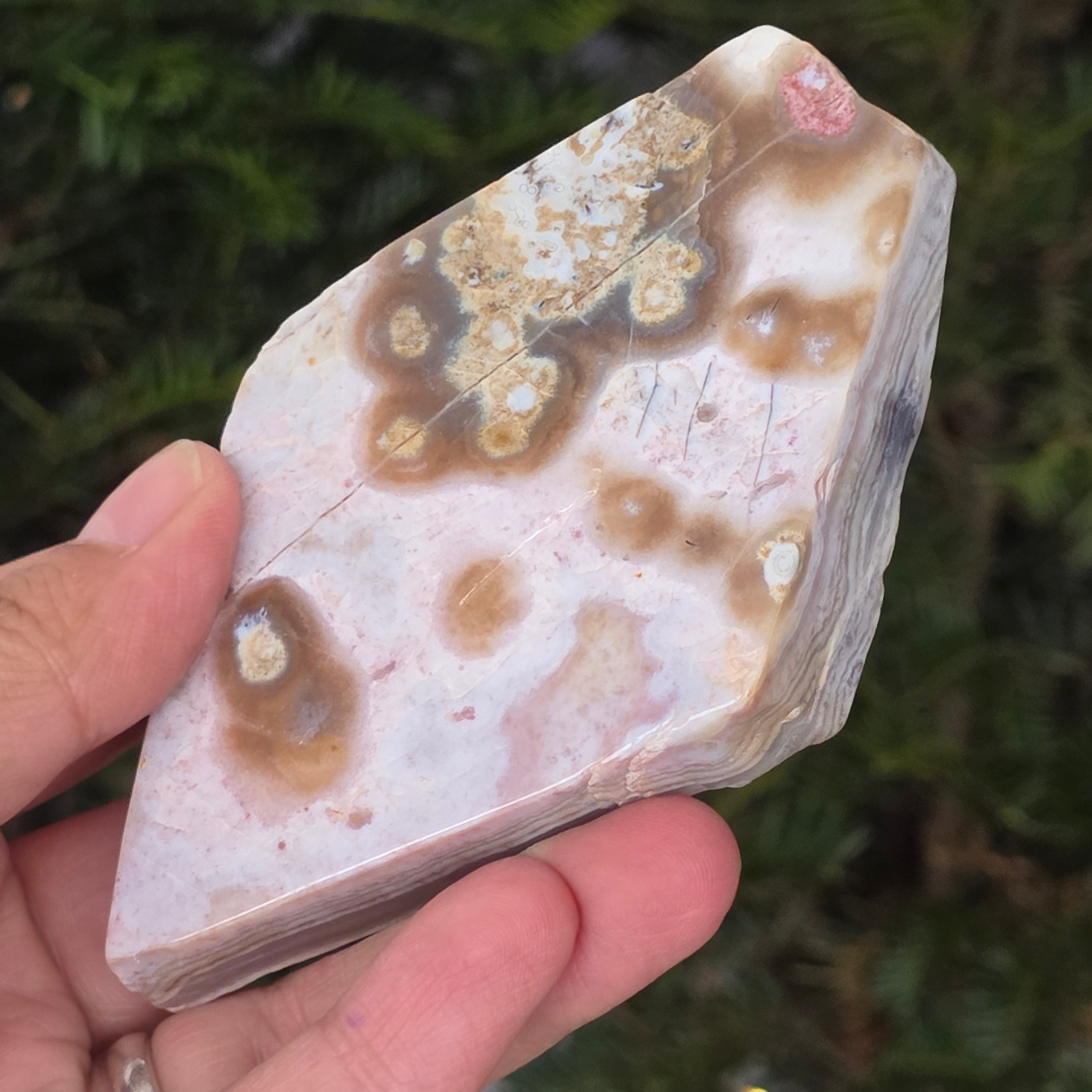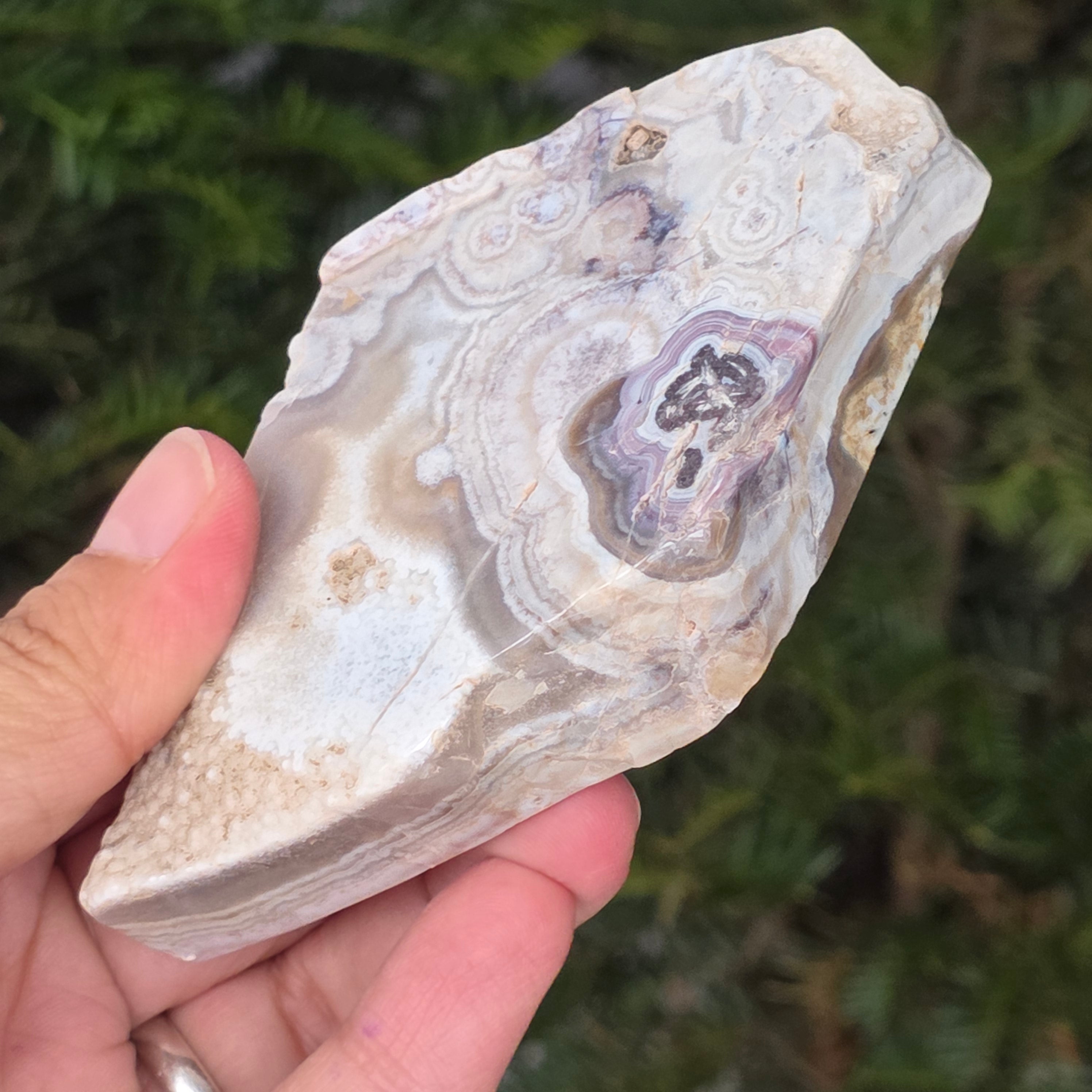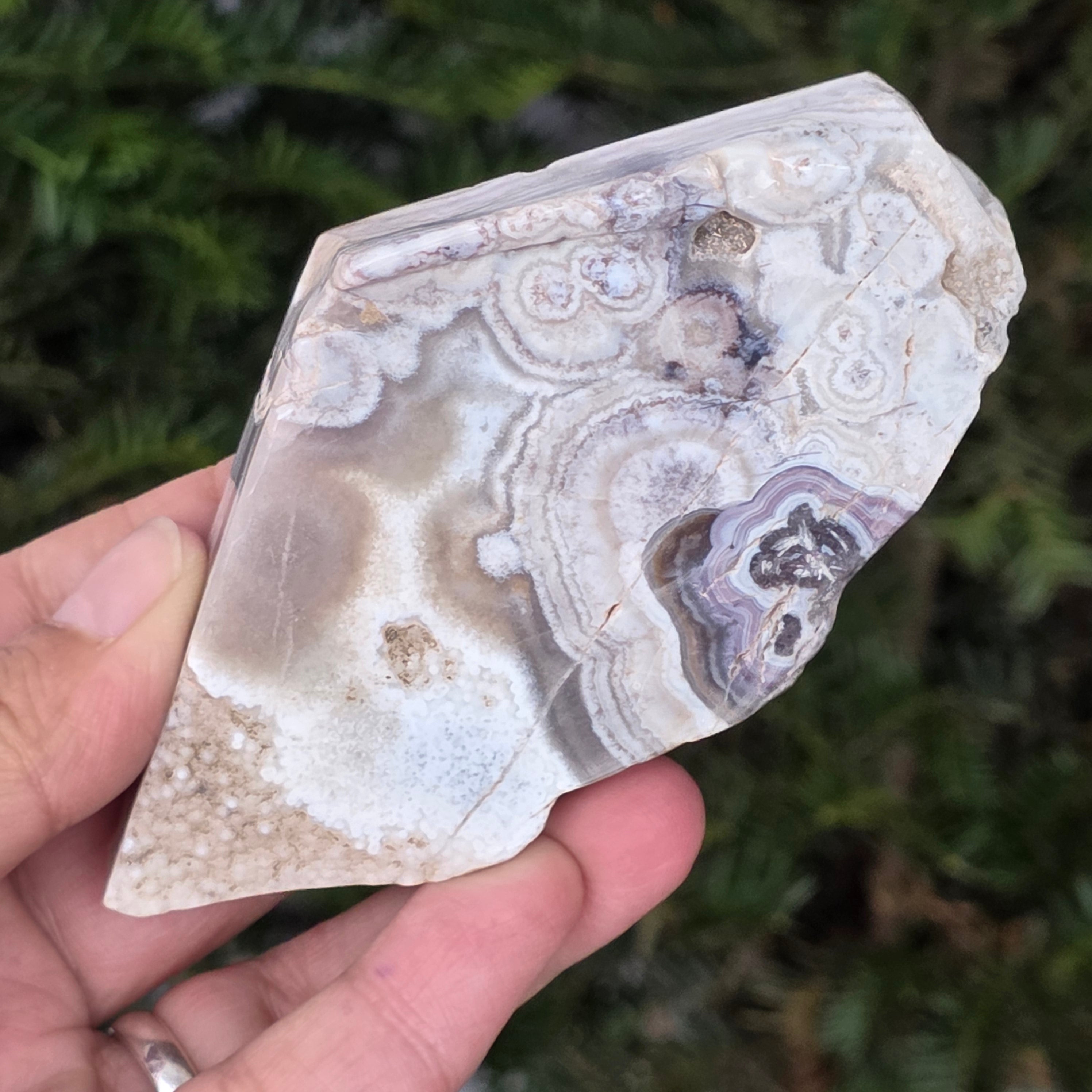 Mexican Crazy Agate is one of the most vibrant and spectacular varieties of agate, famous for its wavy lines and wild color patterns that seem drawn by a free hand, without rules. In this natural slice, small but extremely expressive, the entire story of the stone is revealed: earthy layers, warm caramel shades, bright red, orange, gray, and cream, mixed in spiral patterns that seem to pulse with life.