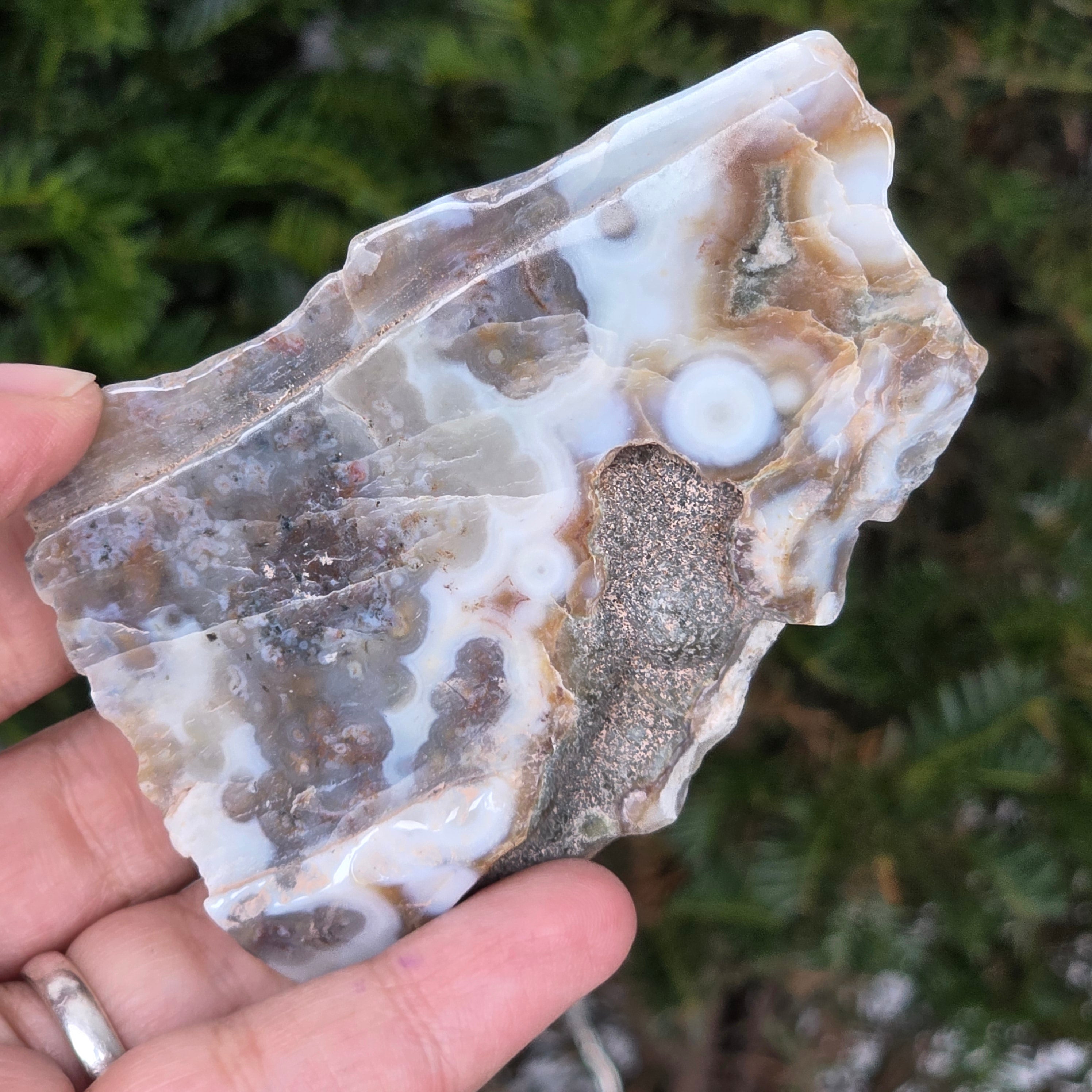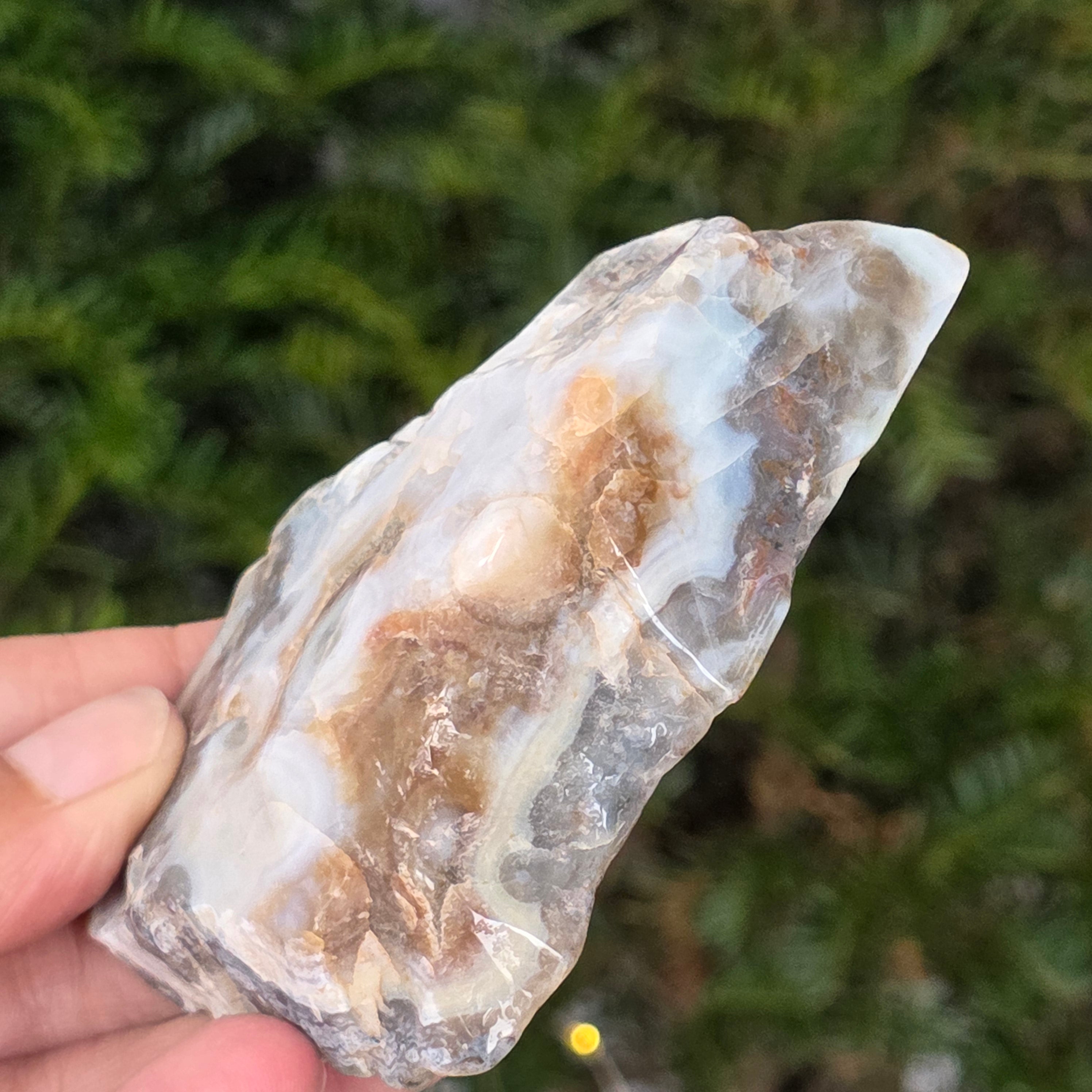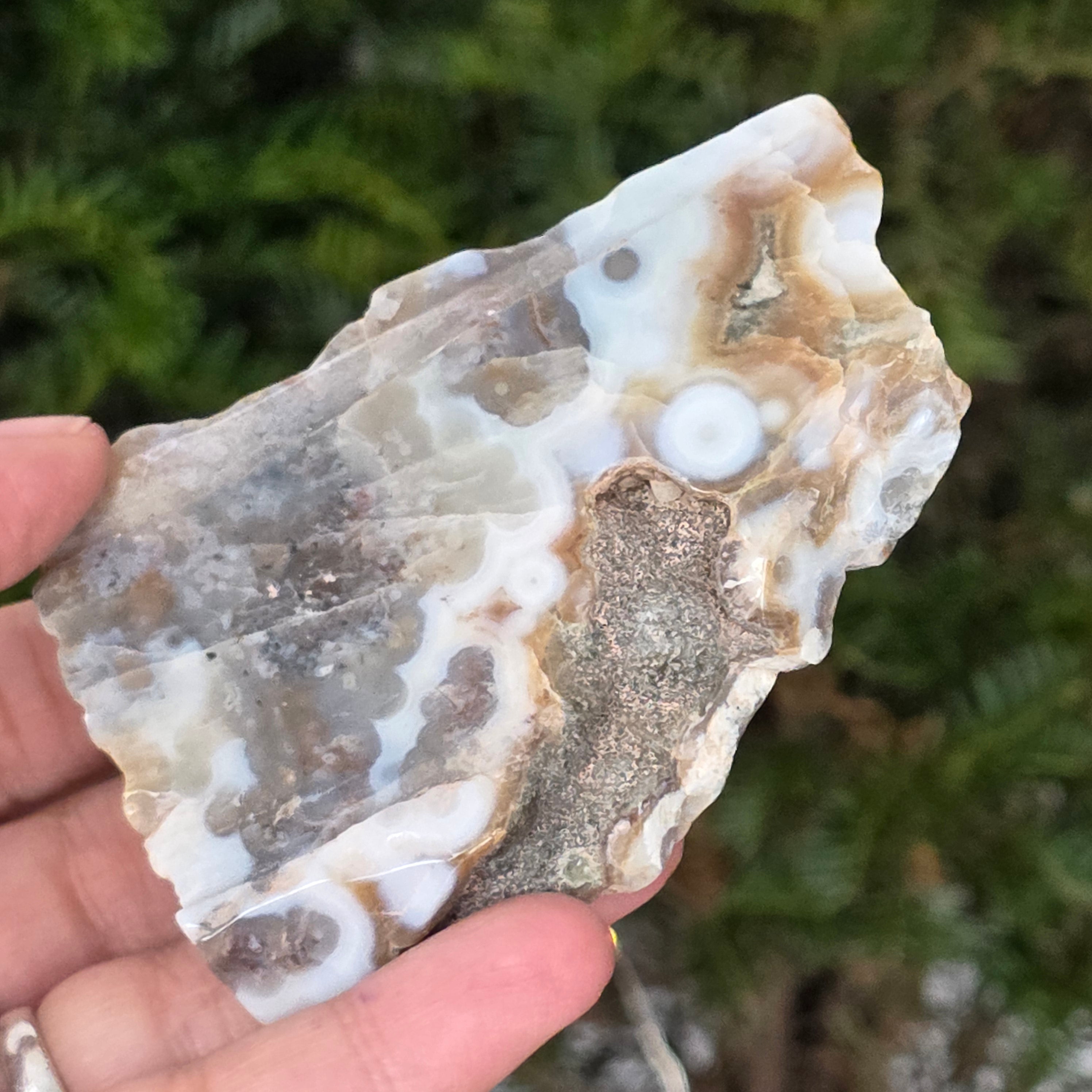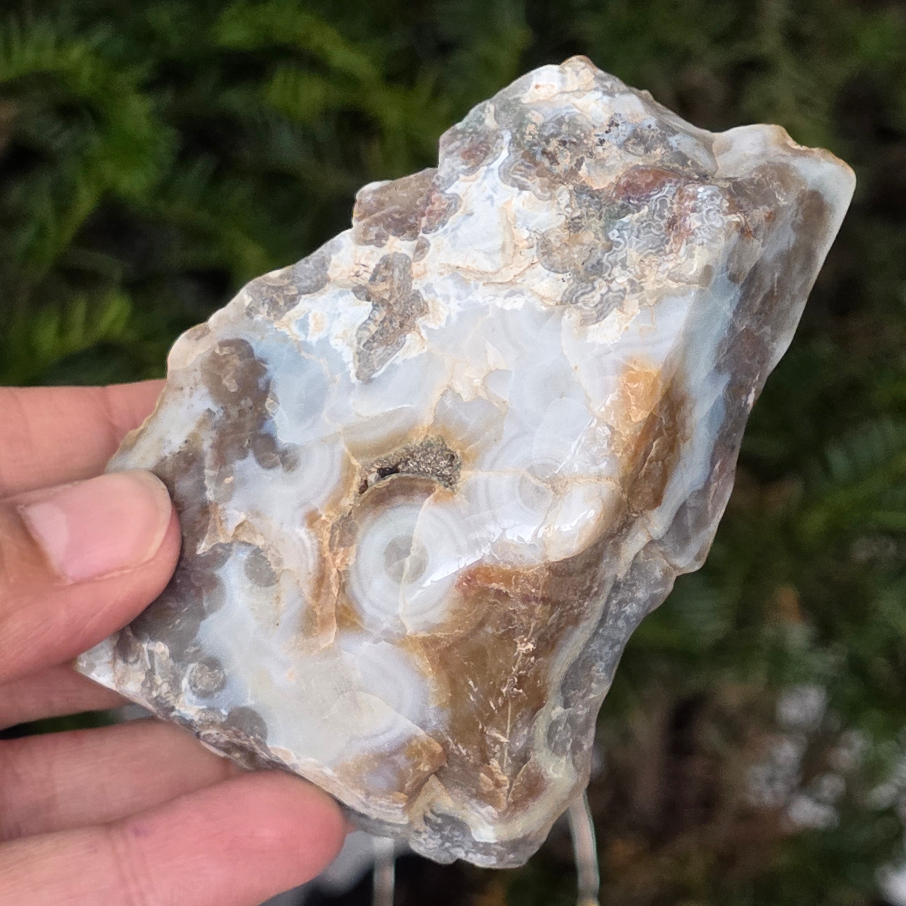 Crazy Agate from Mexico is one of the most vibrant and spectacular varieties of agate, famous for its wavy lines and wild color patterns that seem drawn by a free hand, without rules. In this natural slice, small but extremely expressive, the entire story of the stone is revealed: earthy layers, warm shades of caramel, bright red, orange, gray, and cream, mixed in spiral patterns that seem to pulse with life.