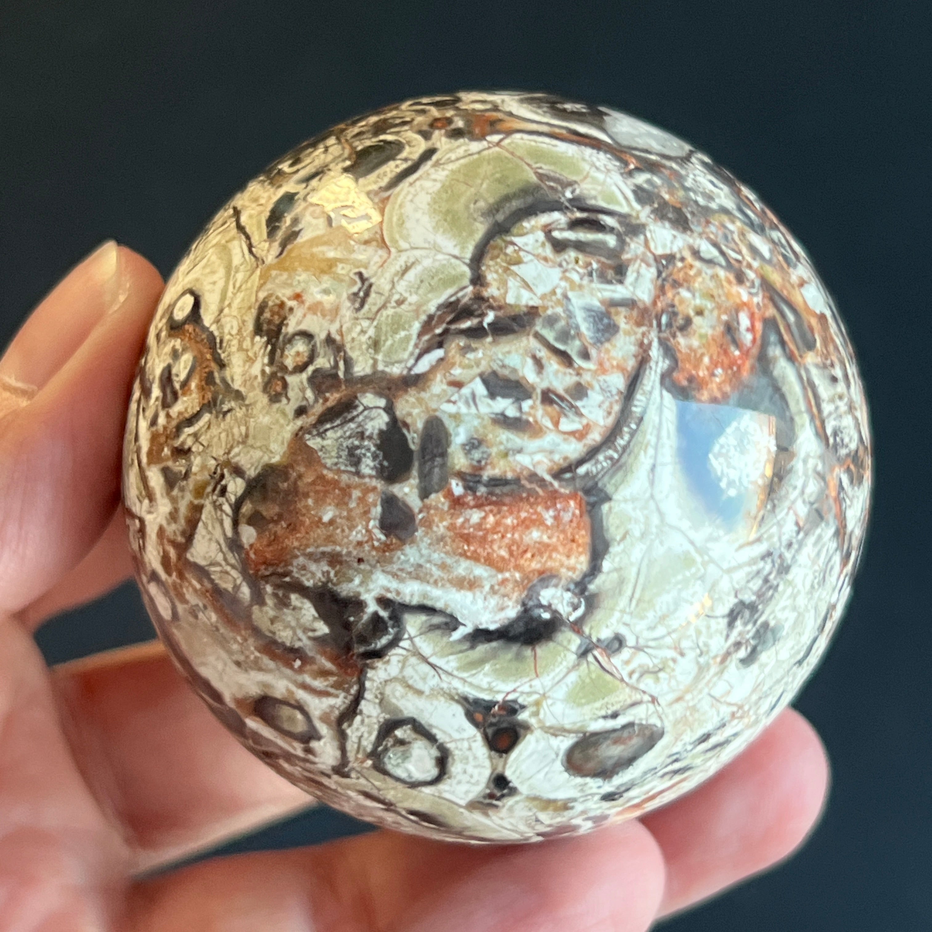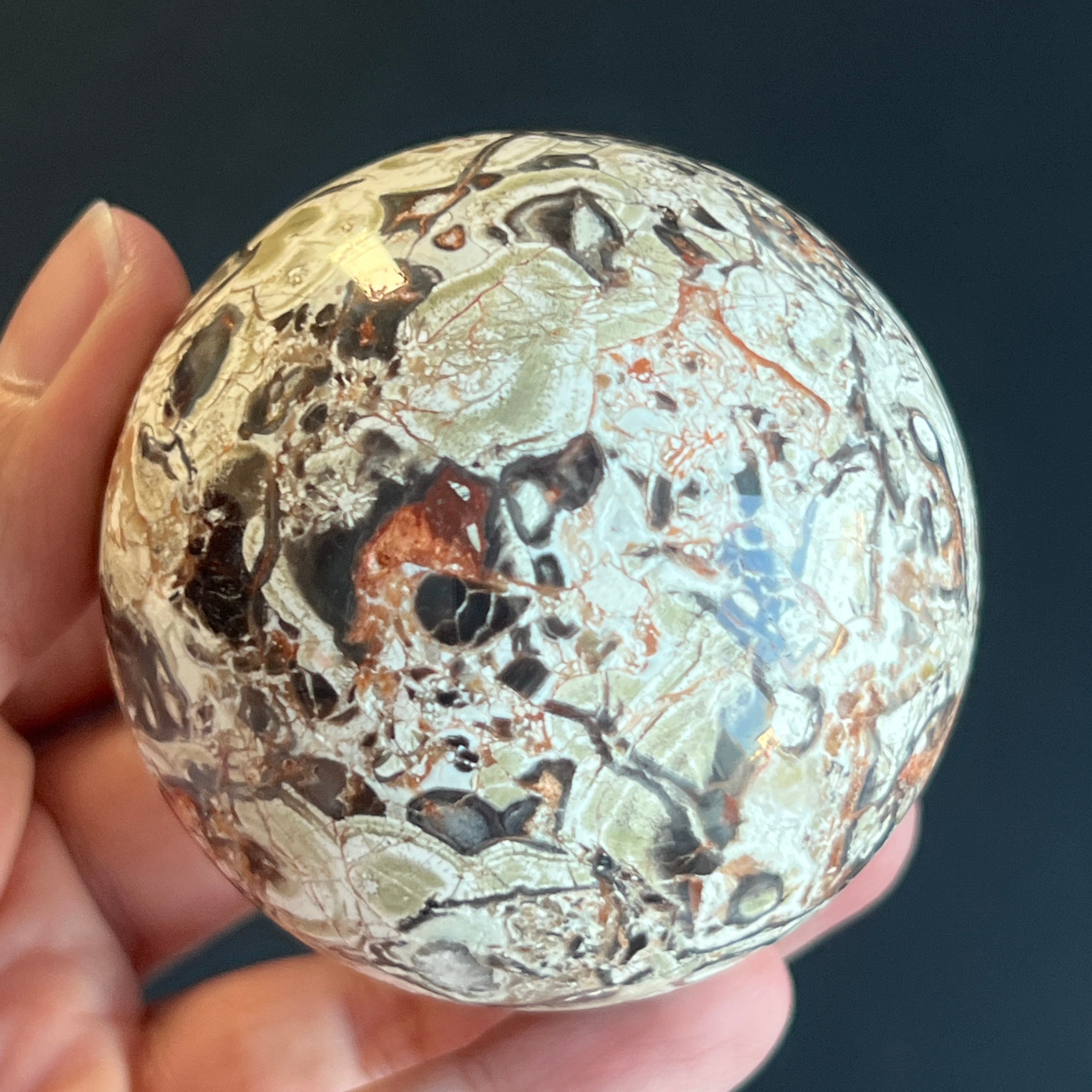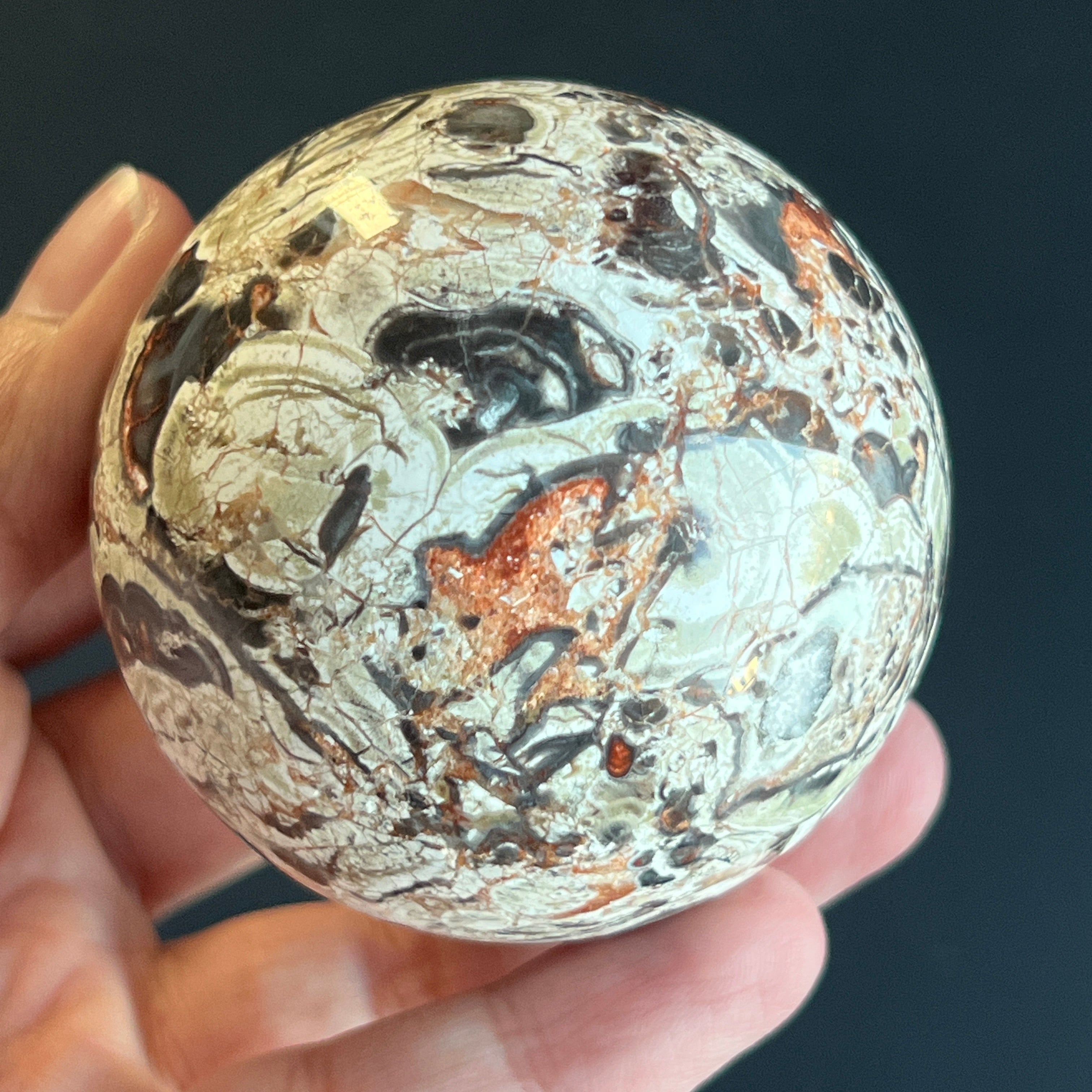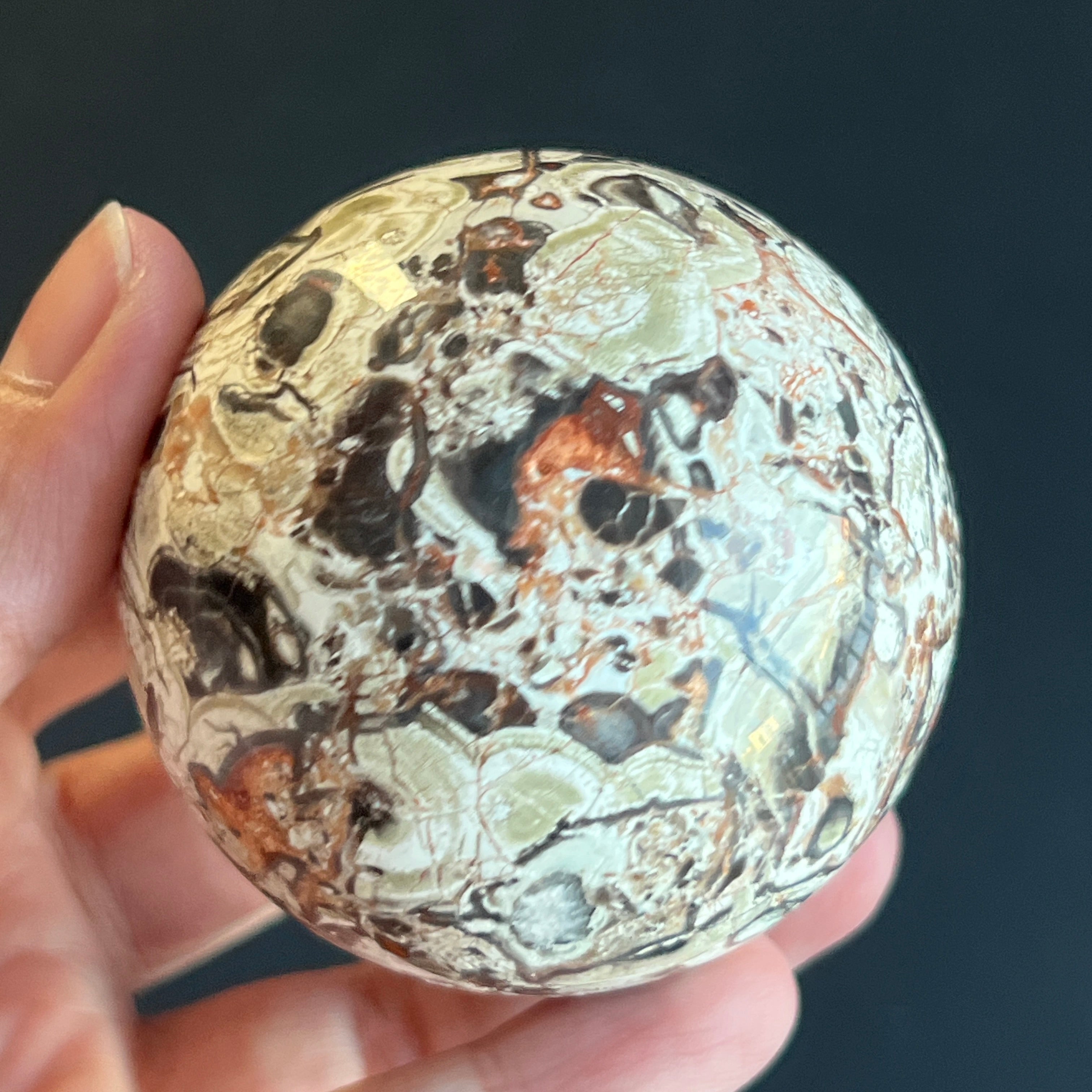 The red breccia jasper sphere is associated with stability, vitality, and grounding in the present, combining the protective energy of jasper with the dynamism of naturally fused fragments. The spherical shape suggests balance and continuity, supporting a sense of inner security and calm strength.