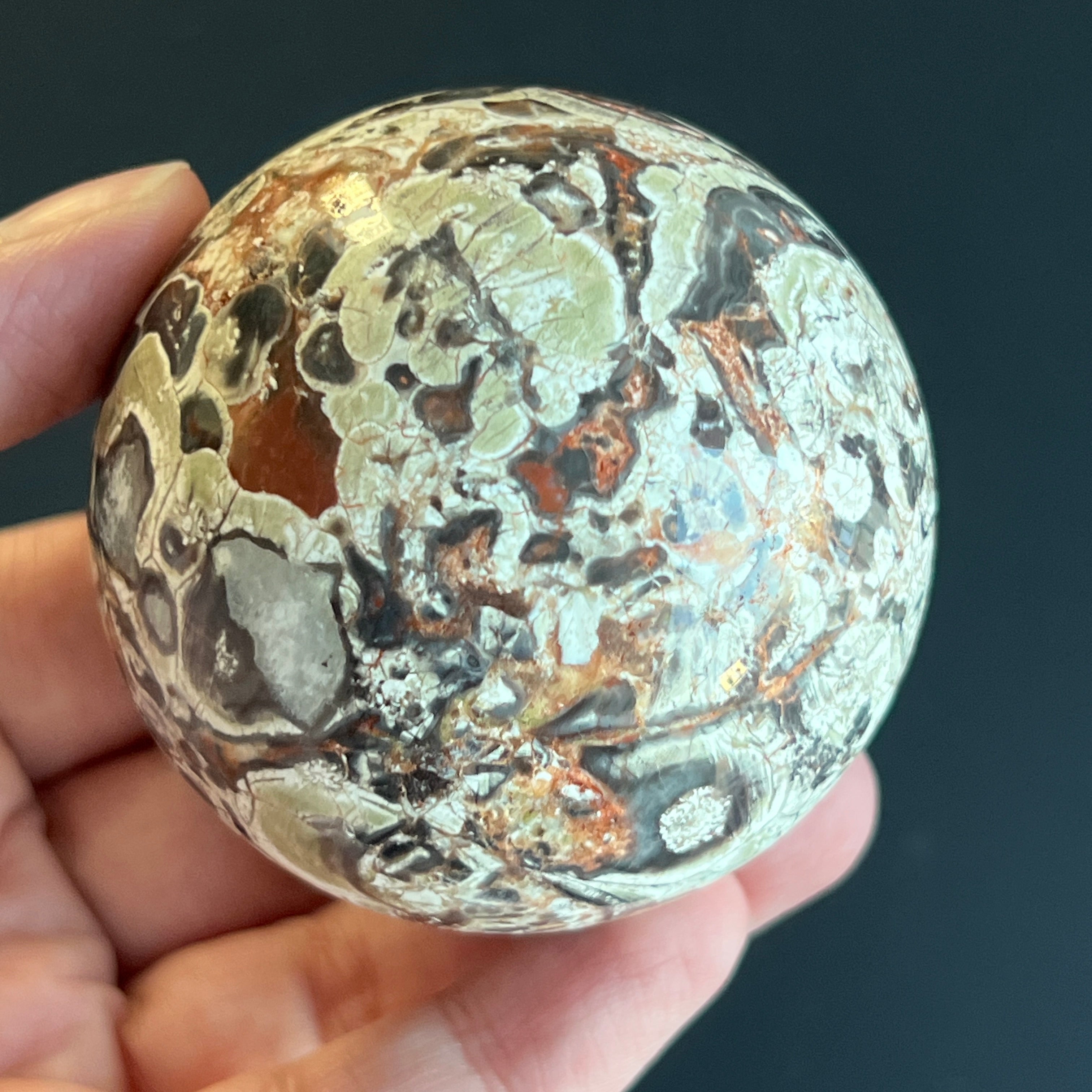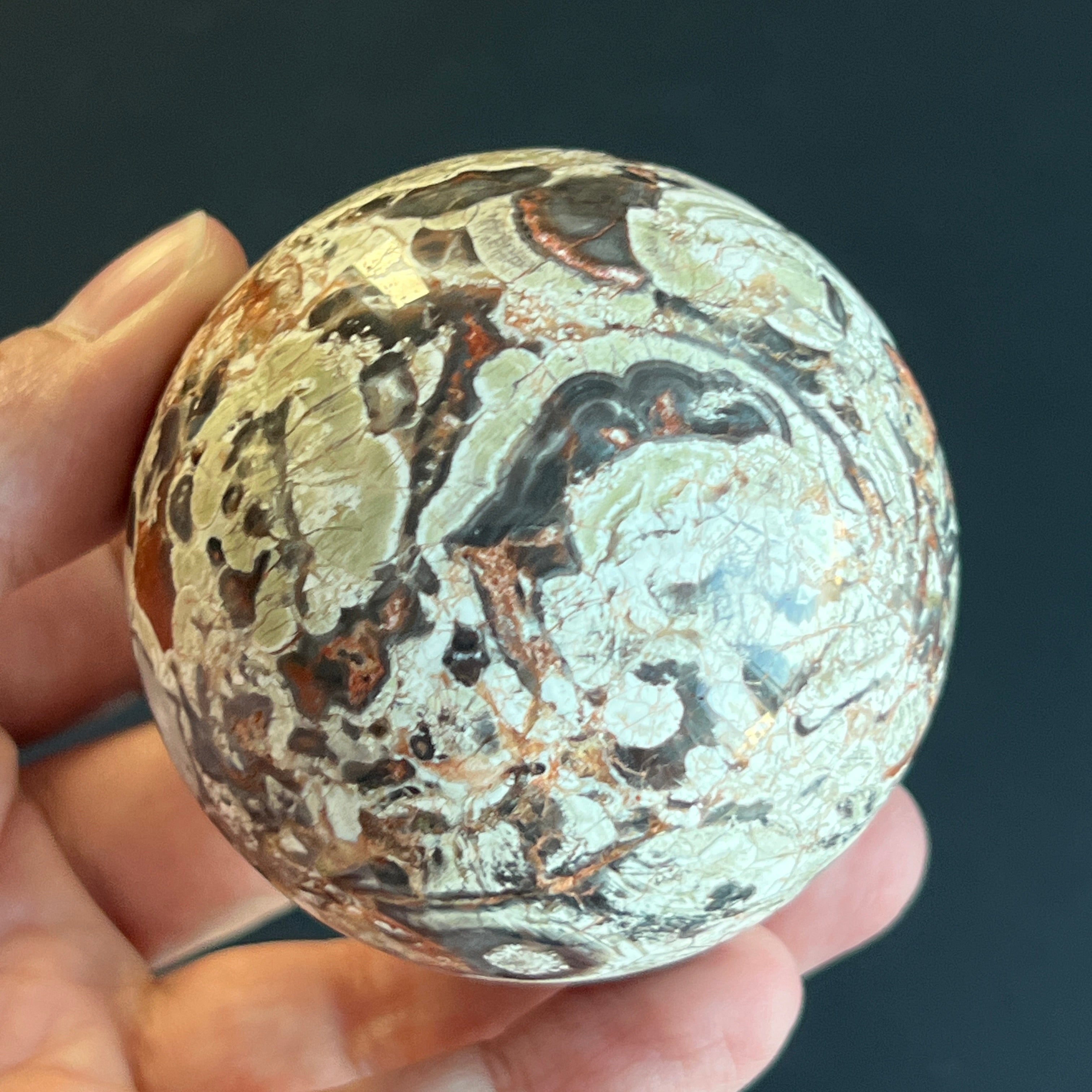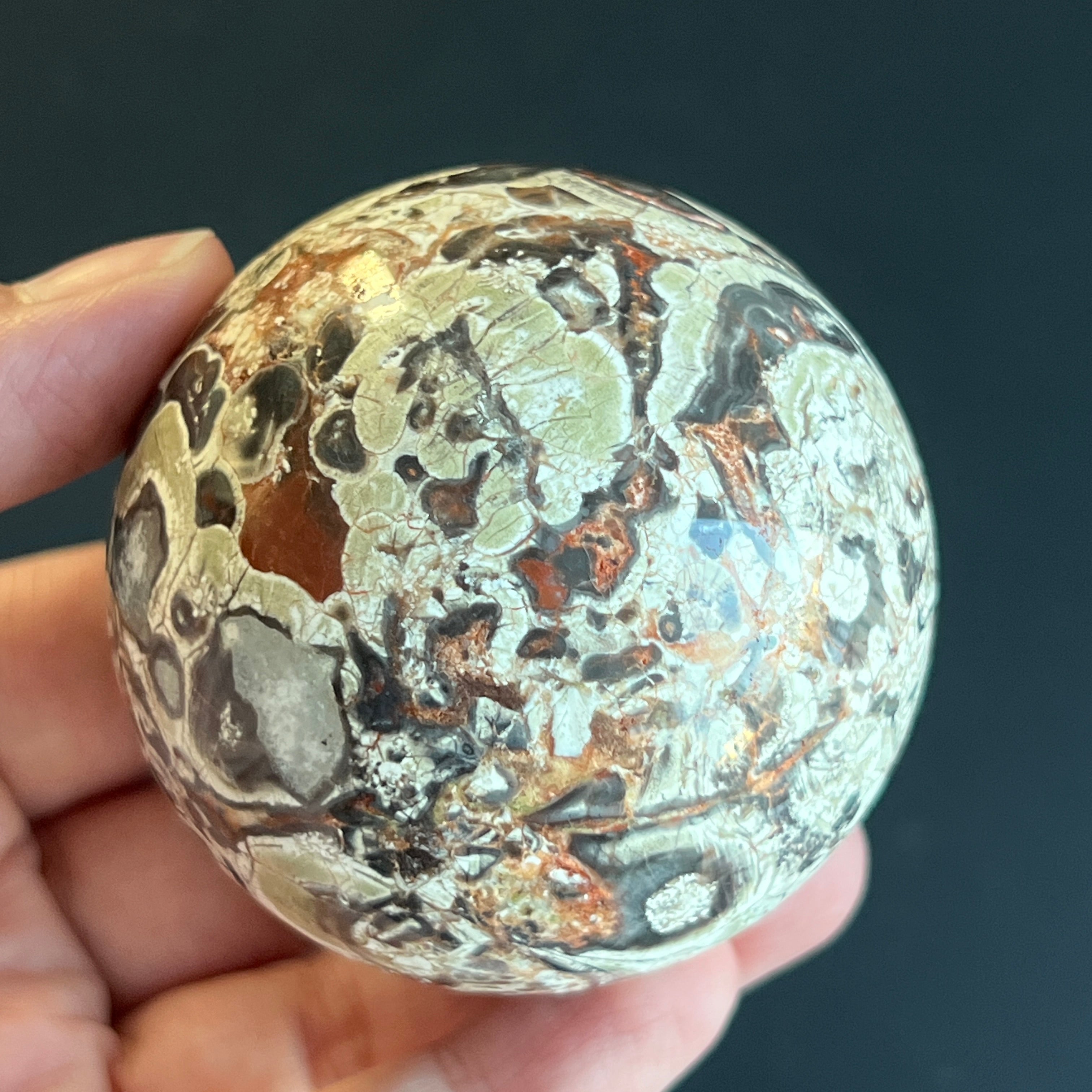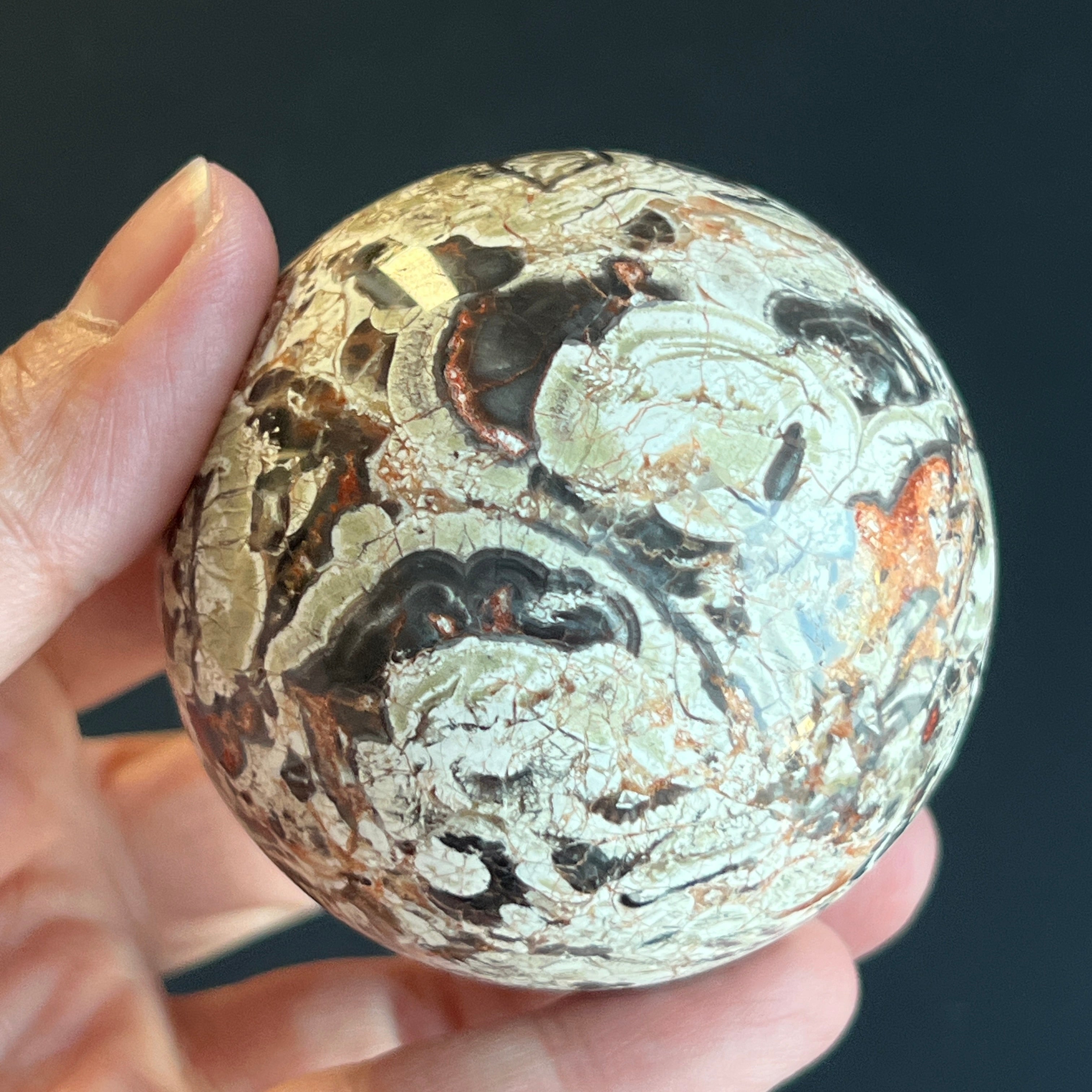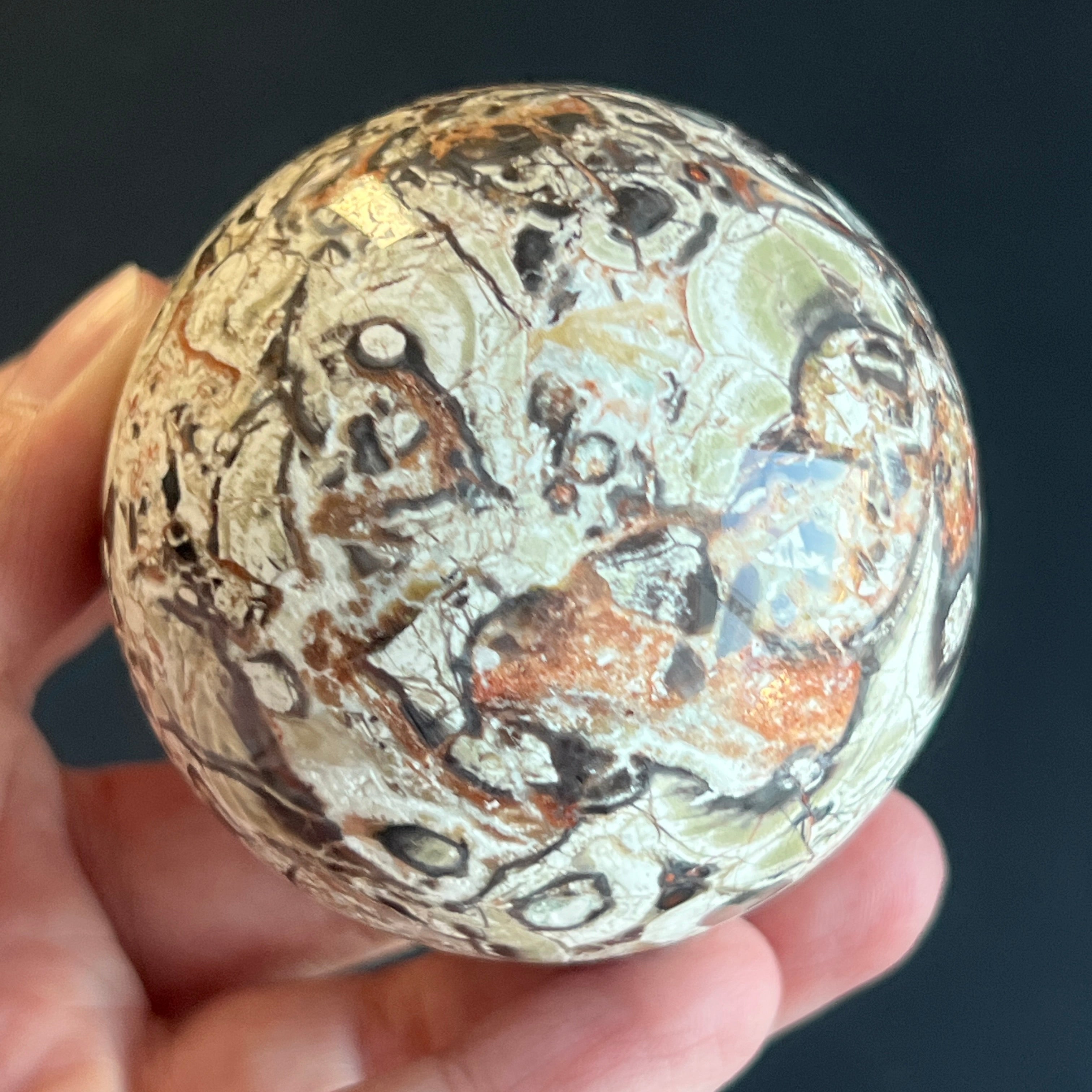 The red breccia jasper sphere is associated with stability, vitality, and grounding in the present, combining the protective energy of jasper with the dynamism of naturally fused fragments. The spherical shape suggests balance and continuity, supporting a sense of inner security and calm strength.