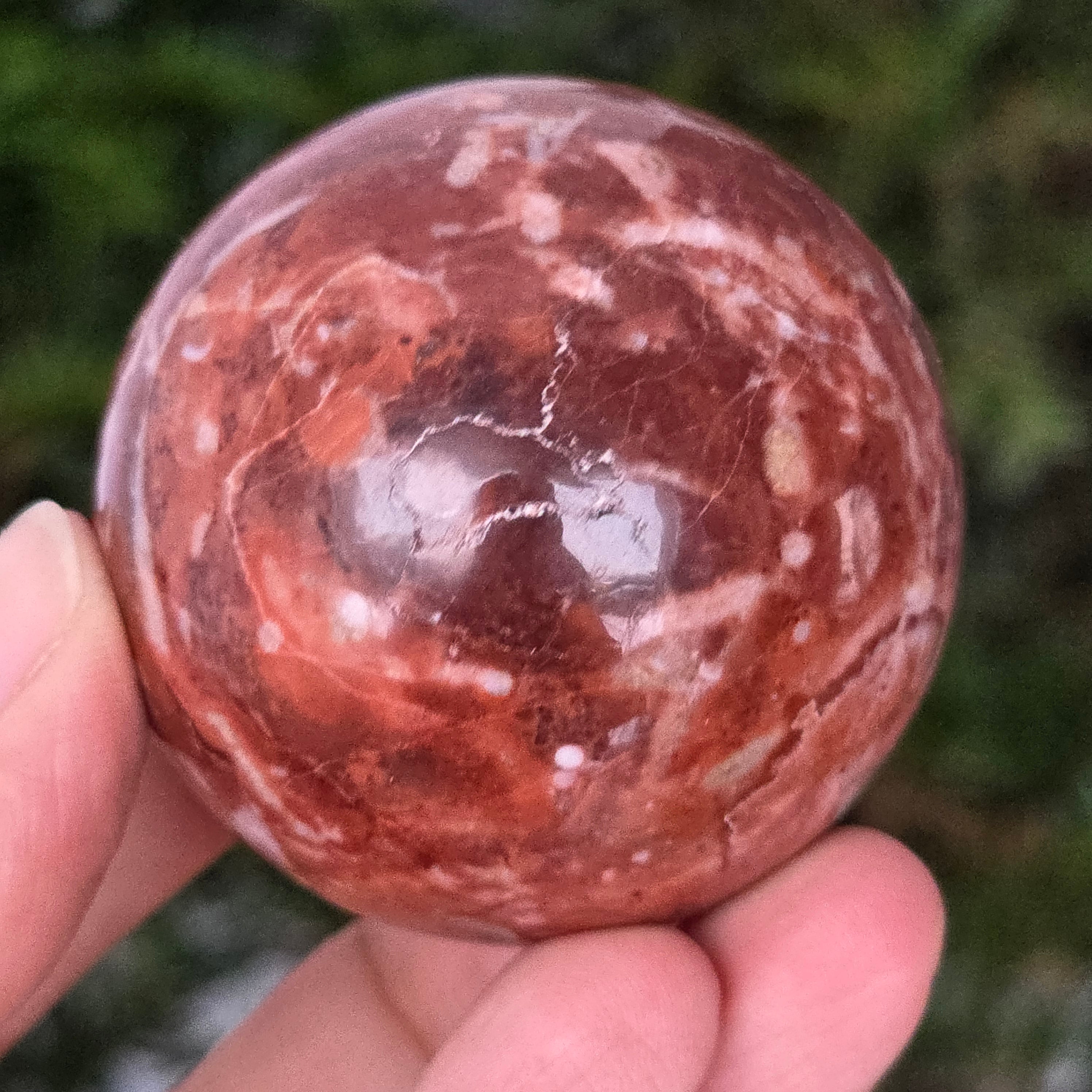 This sphere of natural red jasper It is a discreet but profound presence—a constant reminder of the connection to the earth, the stability, and the courage to remain centered in one's own strength.