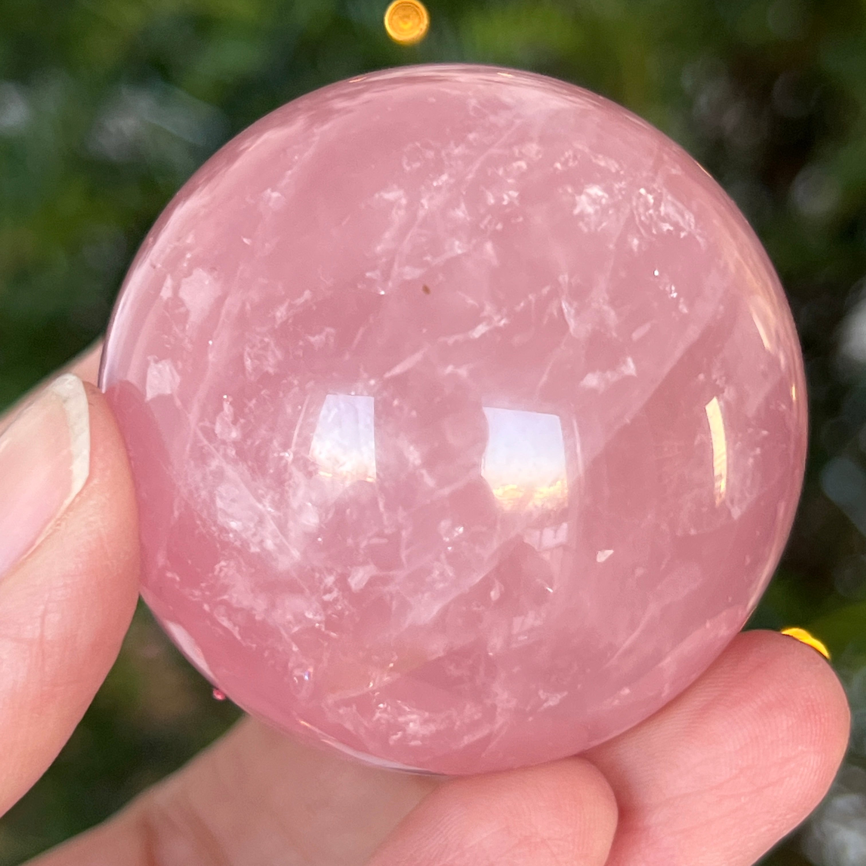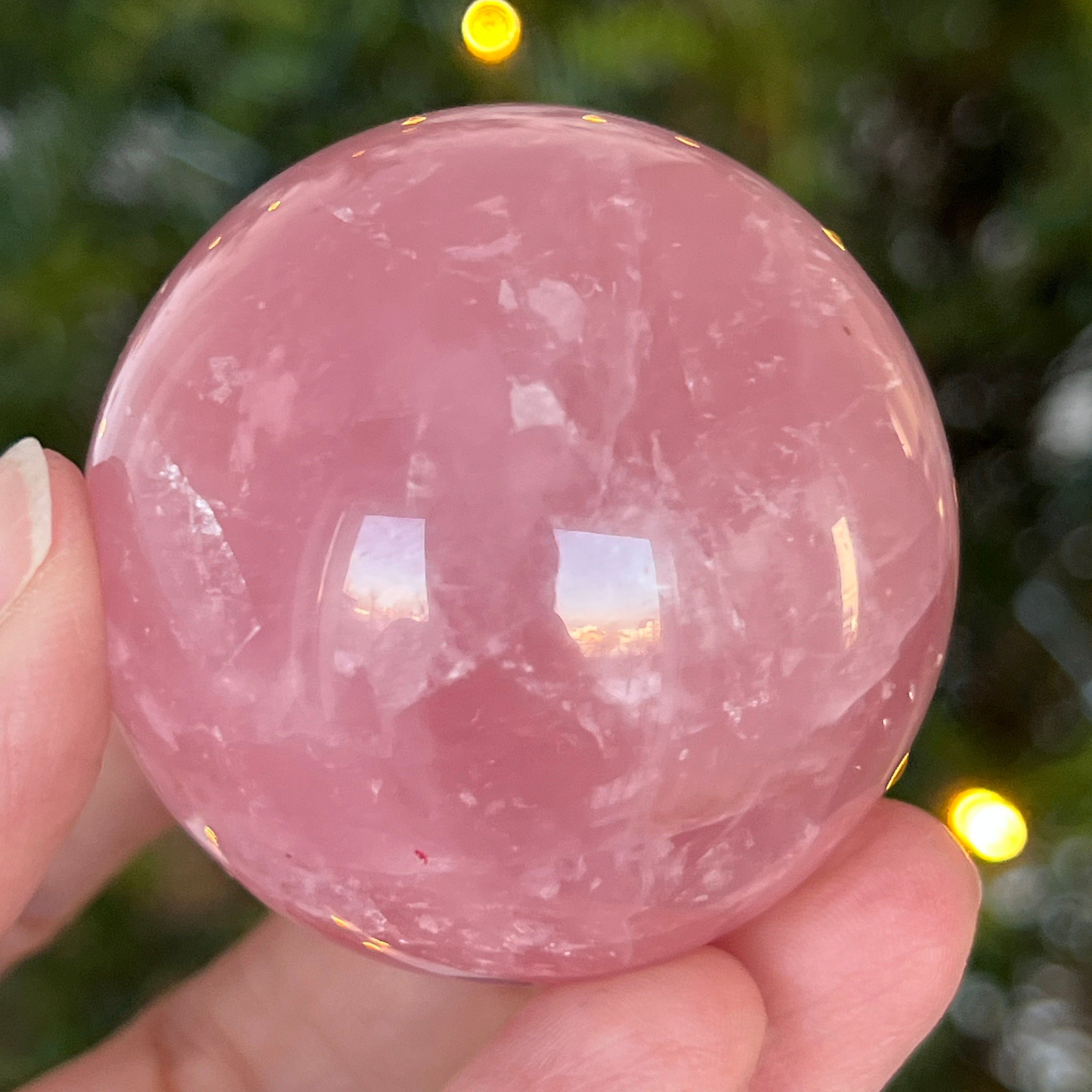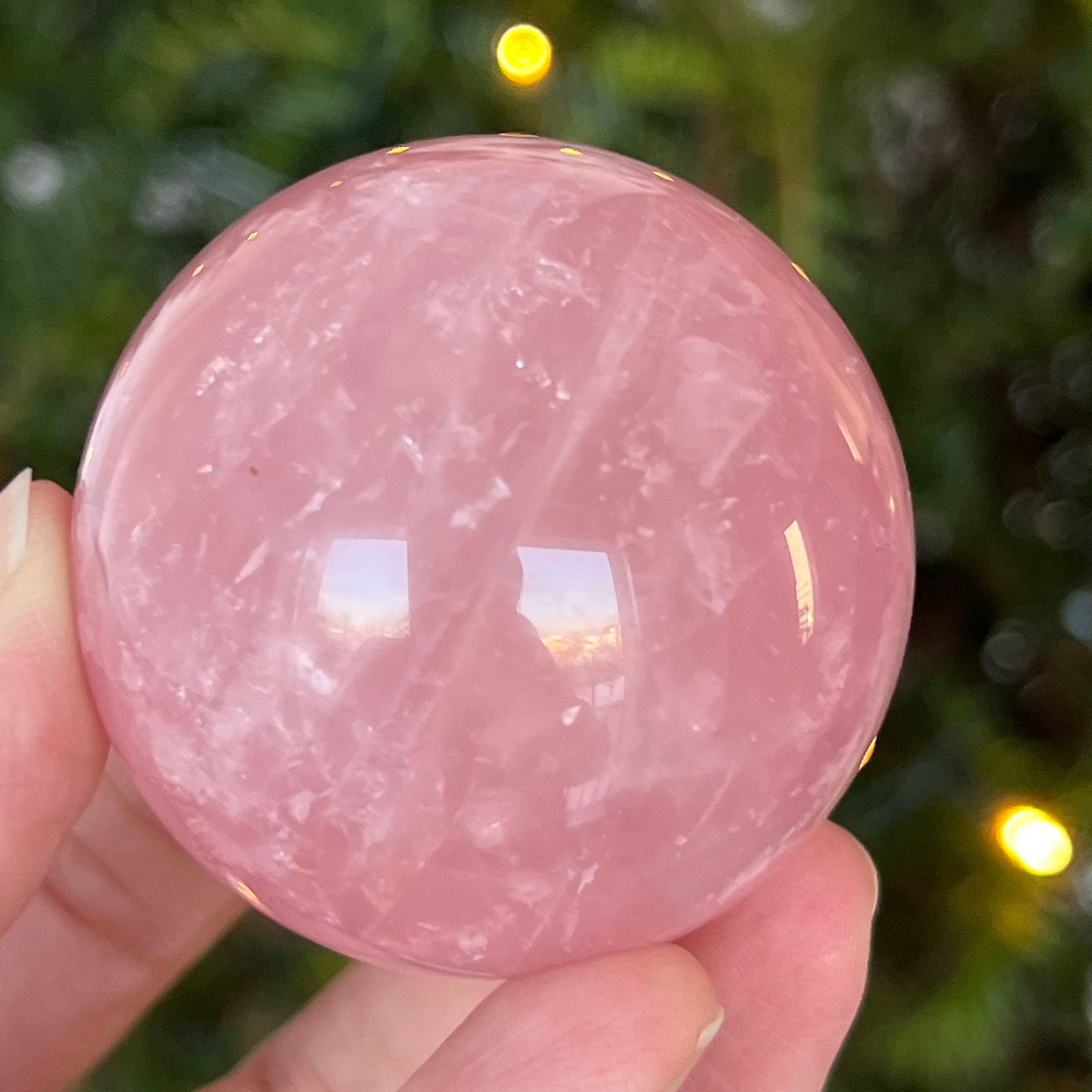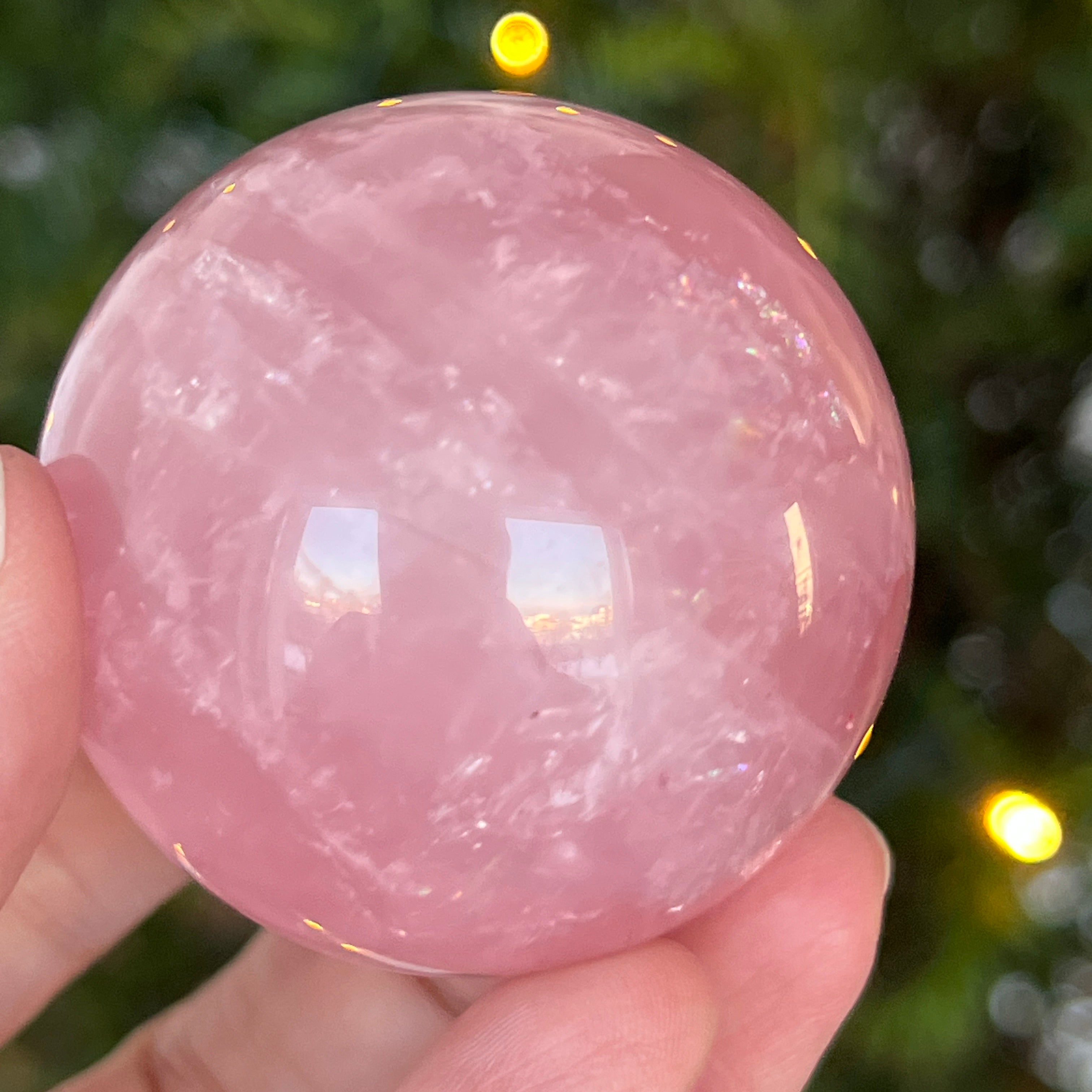• Stone: natural rose quartz with asterism – fully polished sphere