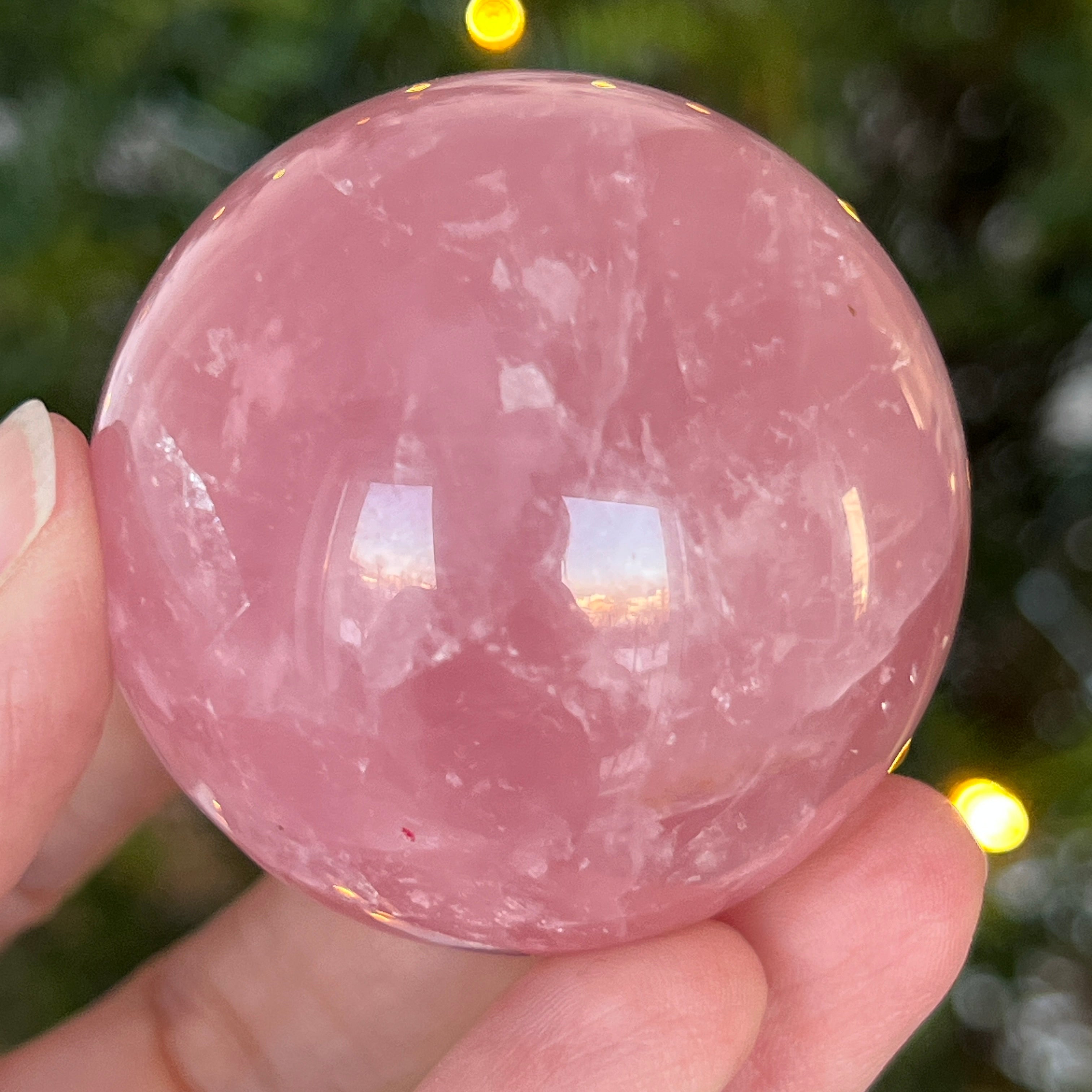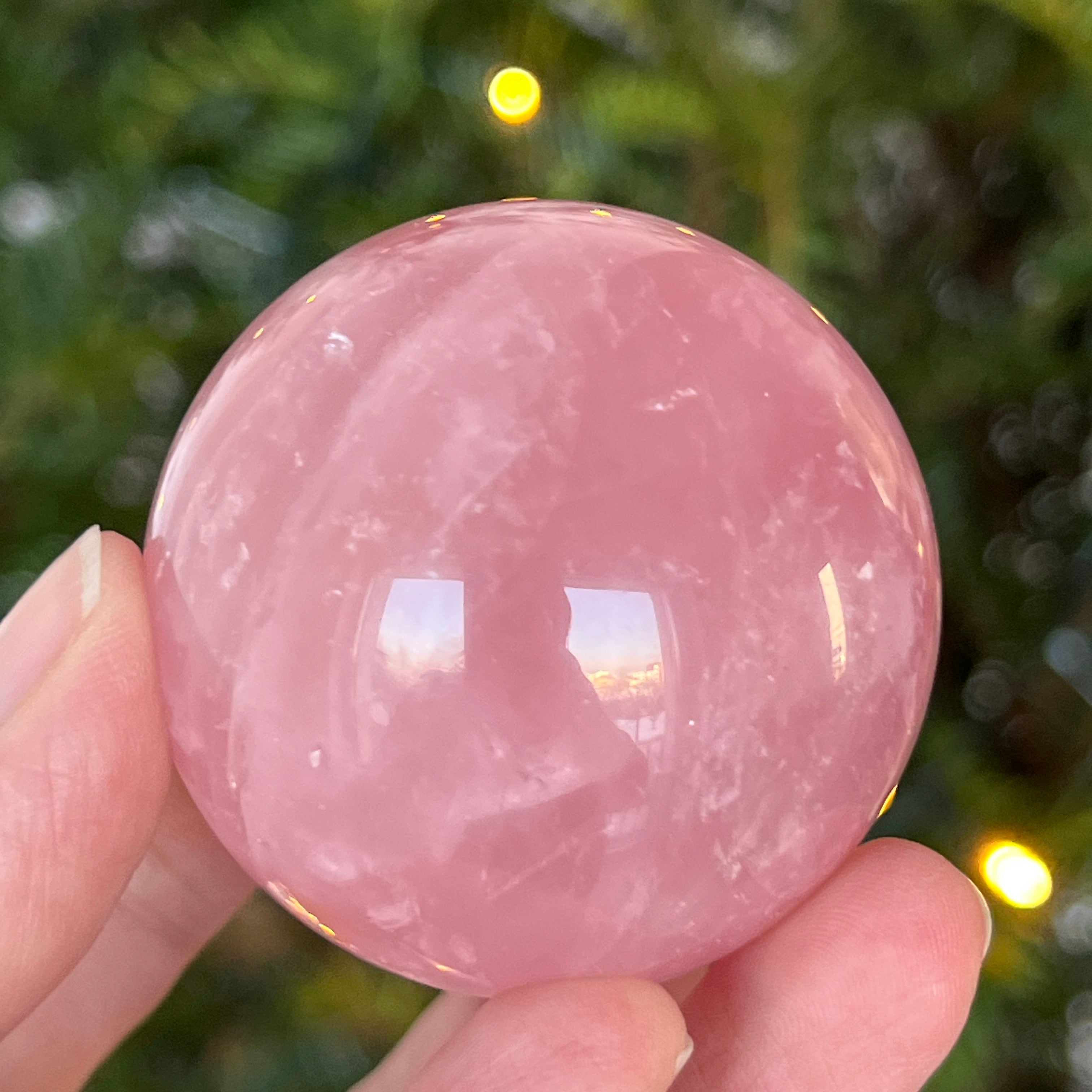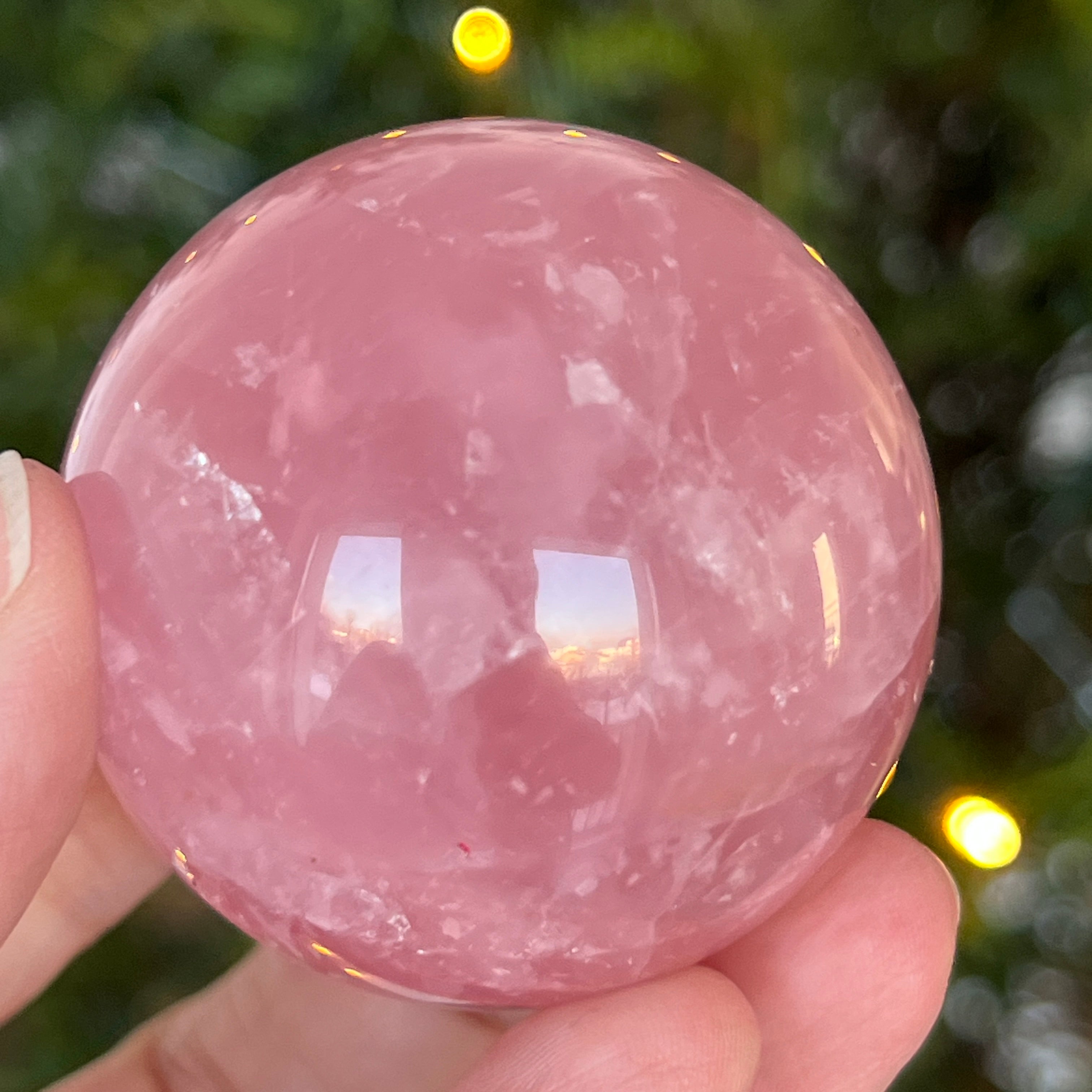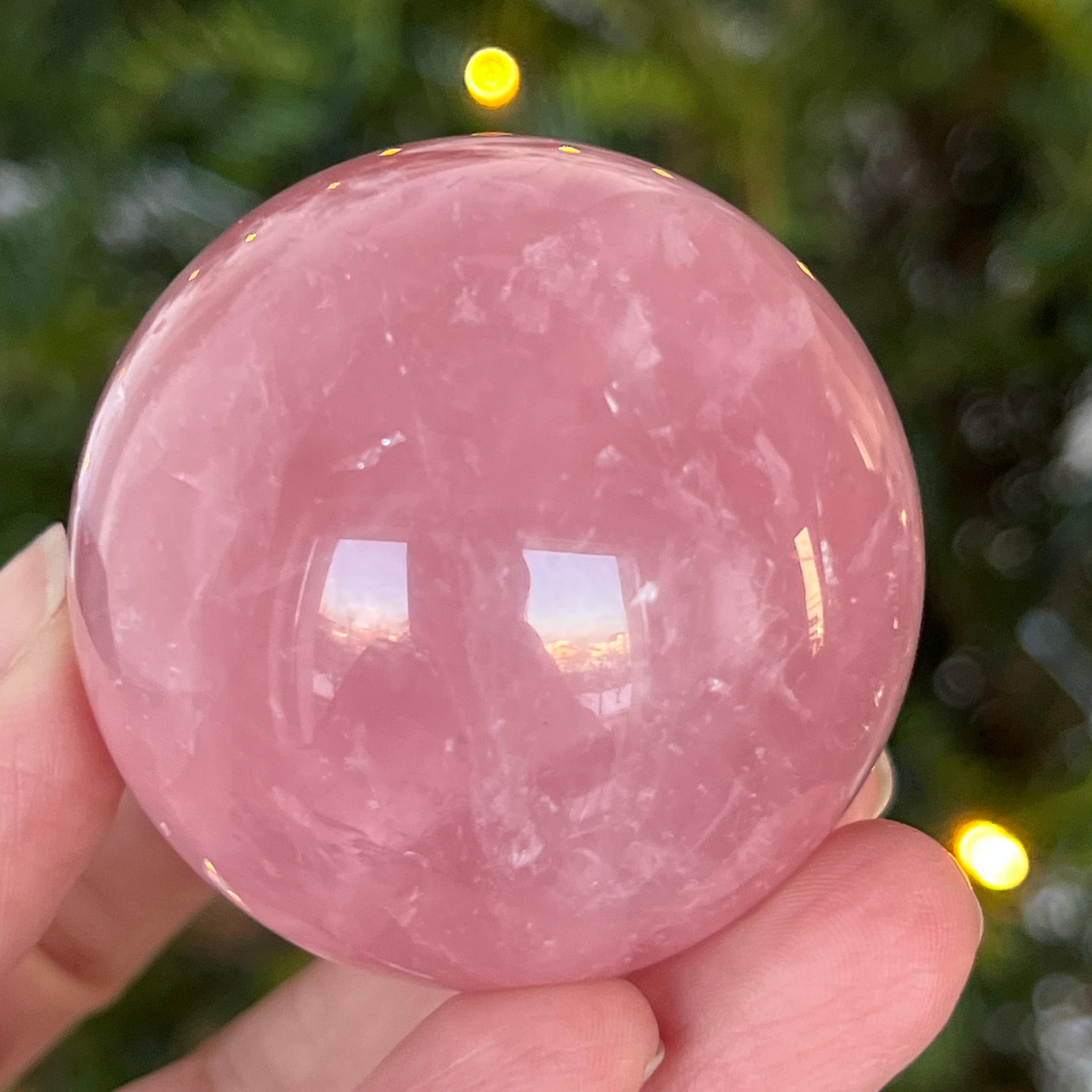 • Stone: natural rose quartz with asterism – fully polished sphere