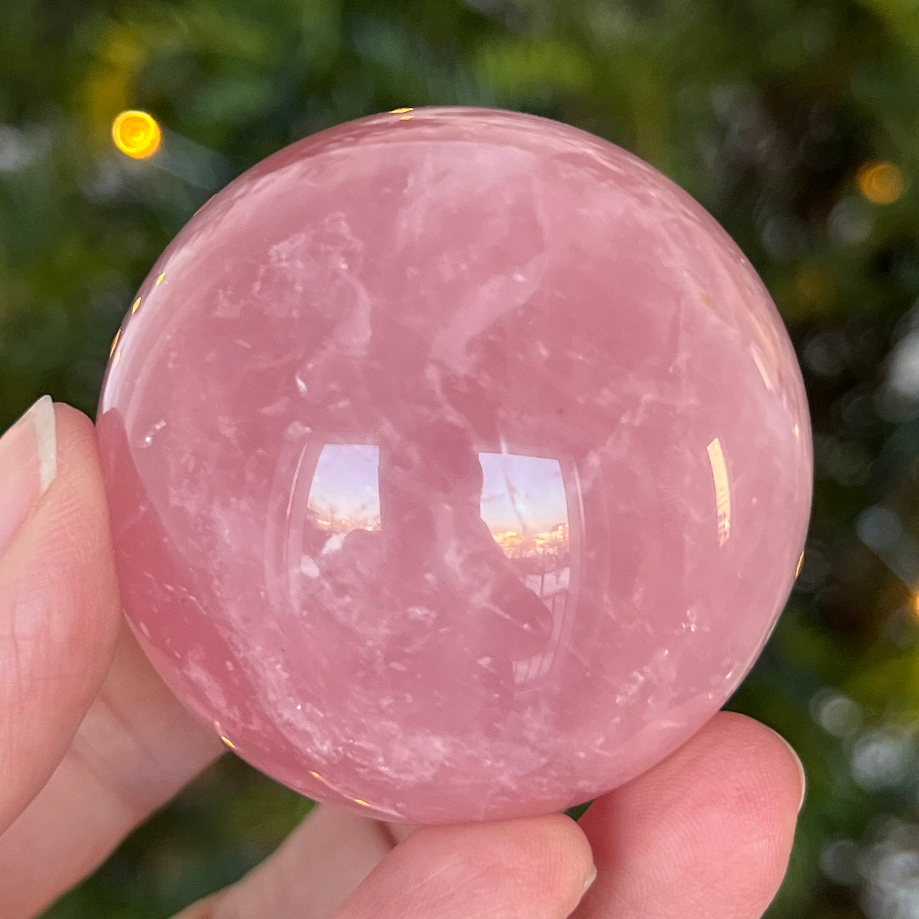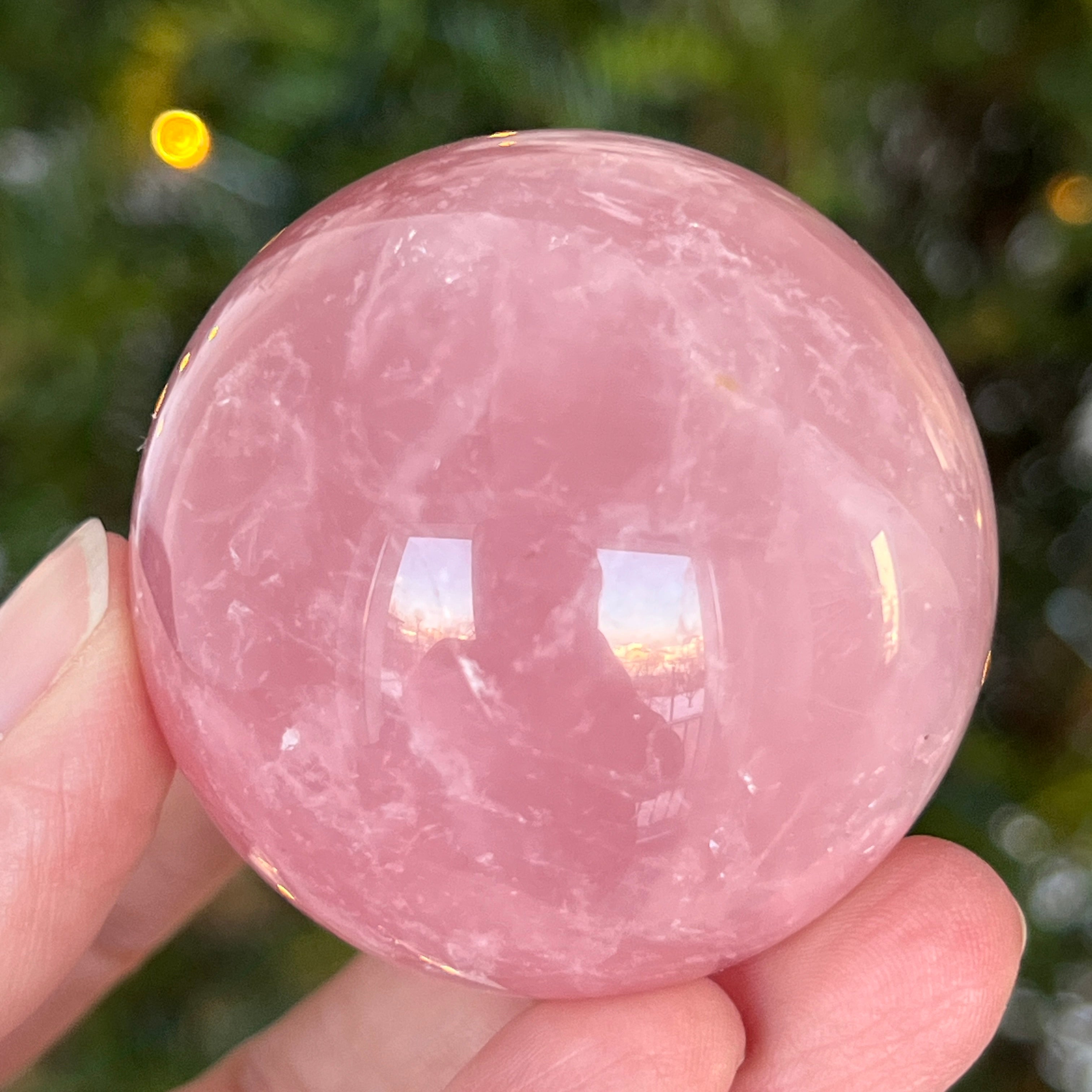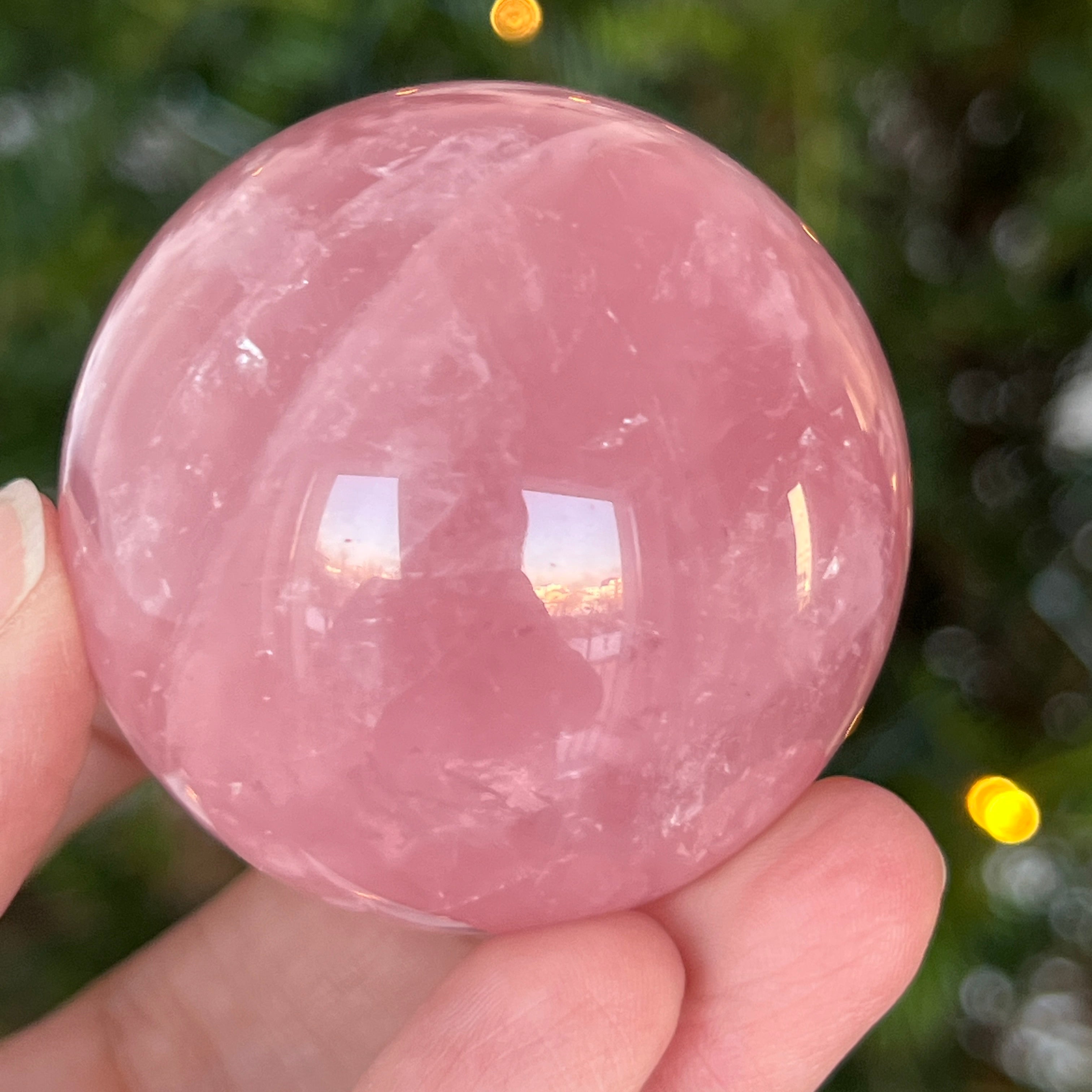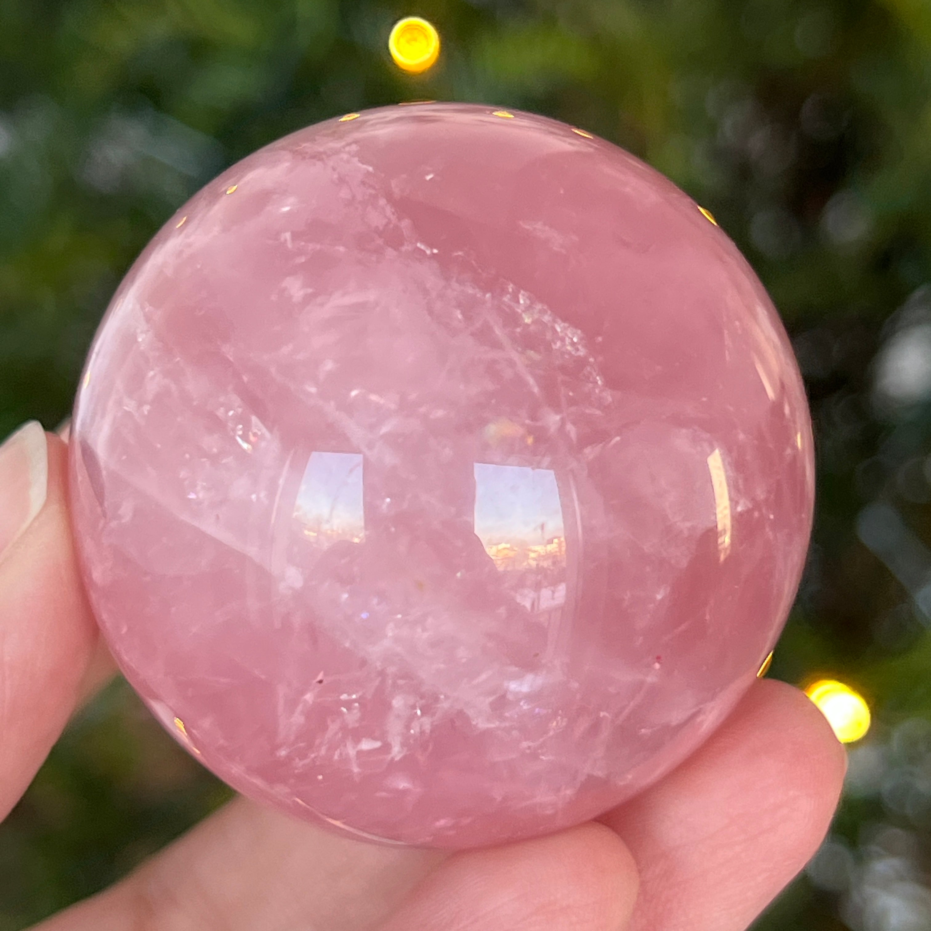 • Stone: natural rose quartz with asterism – fully polished sphere
