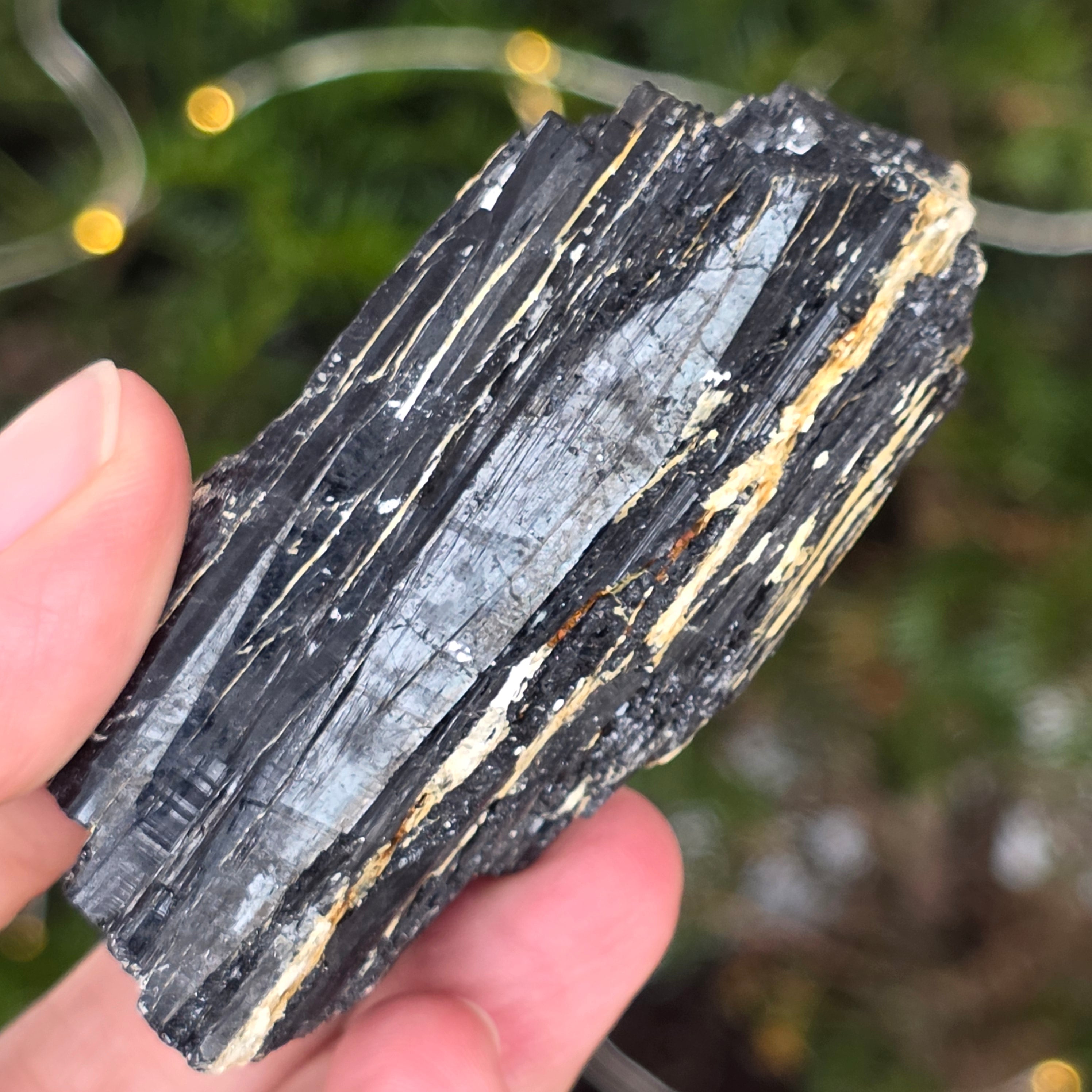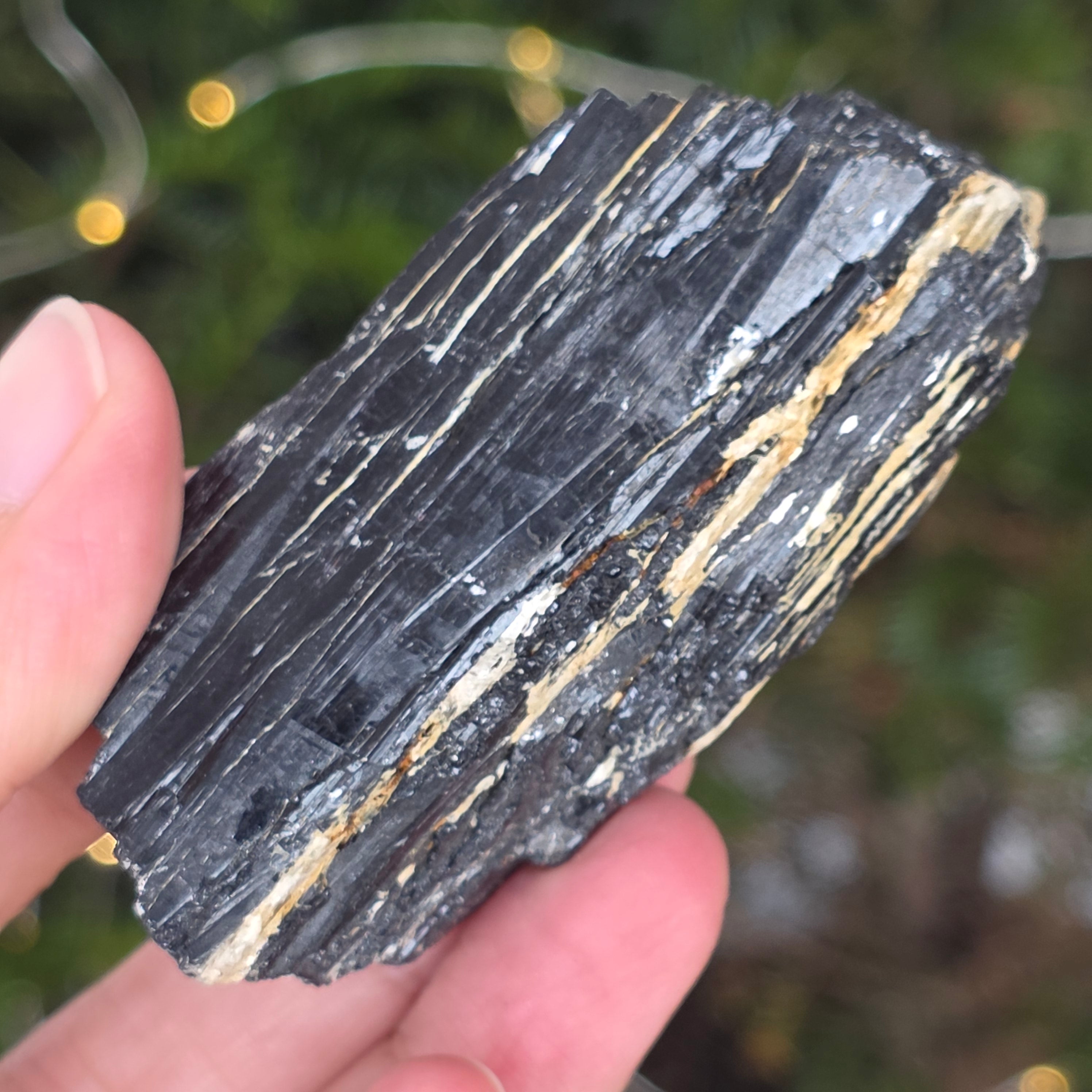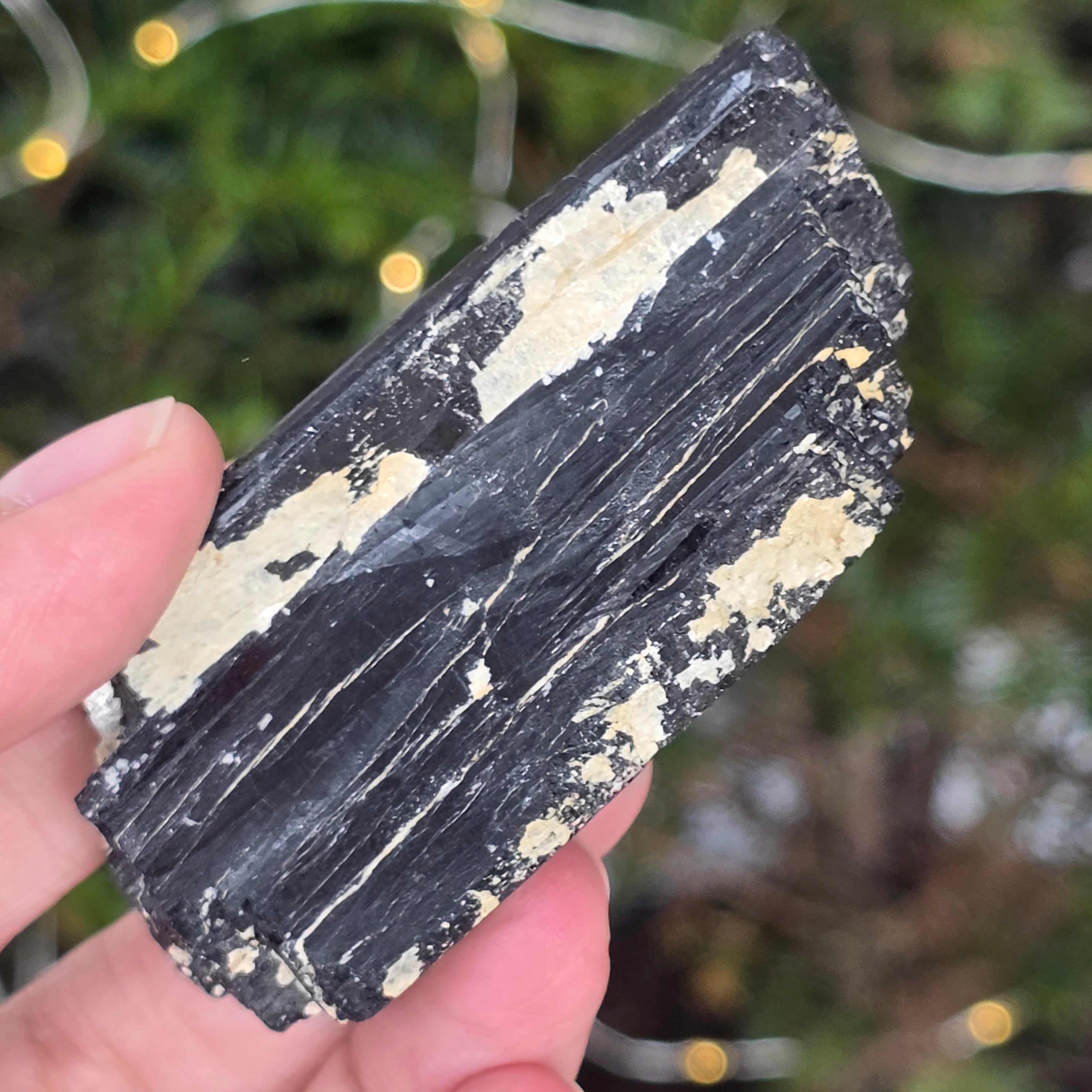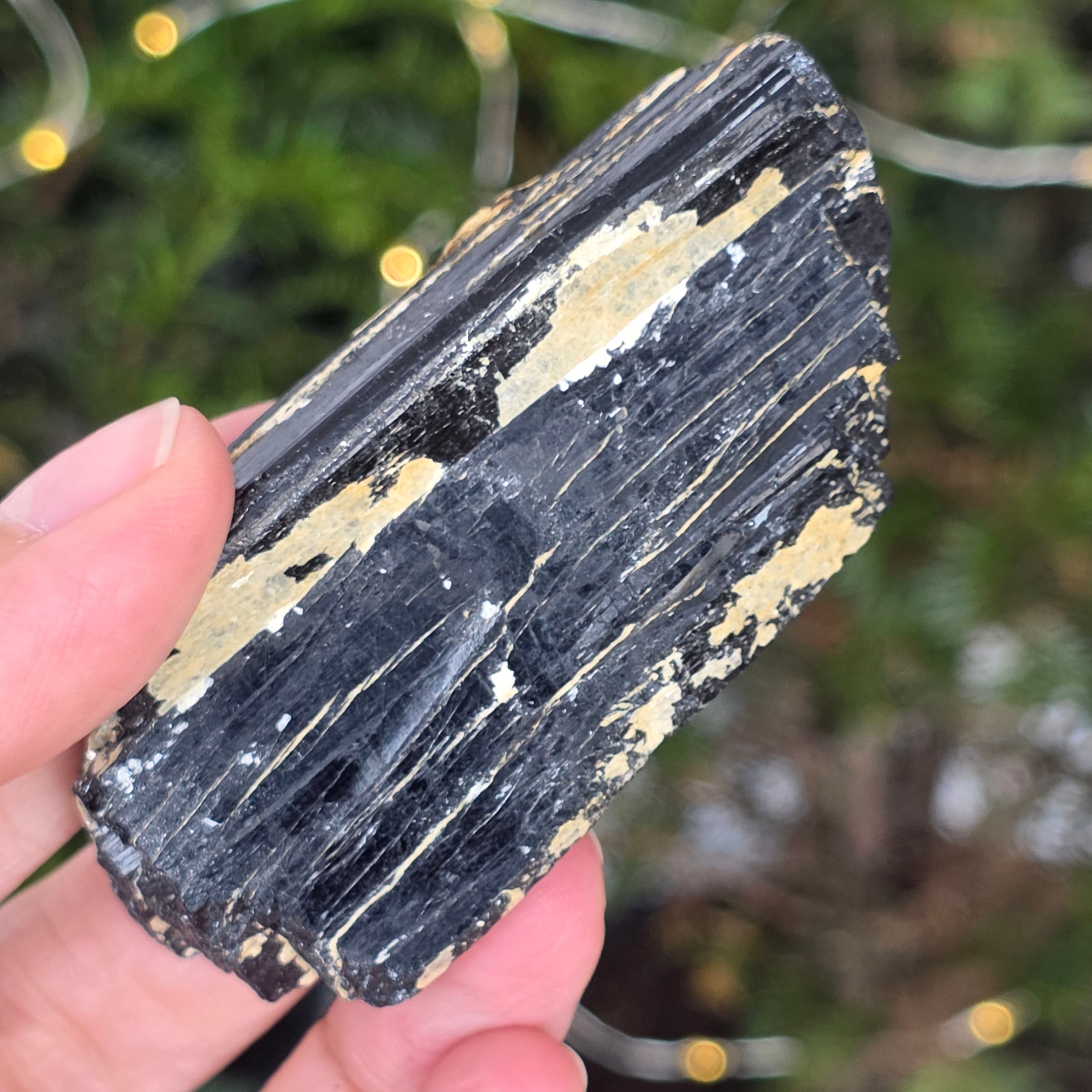 Black tourmaline, also known as schorl, is made up of a complex mixture of borosilicates and is found in a variety of crystalline forms. It is a very hard mineral and has great resistance to scratches and wear.