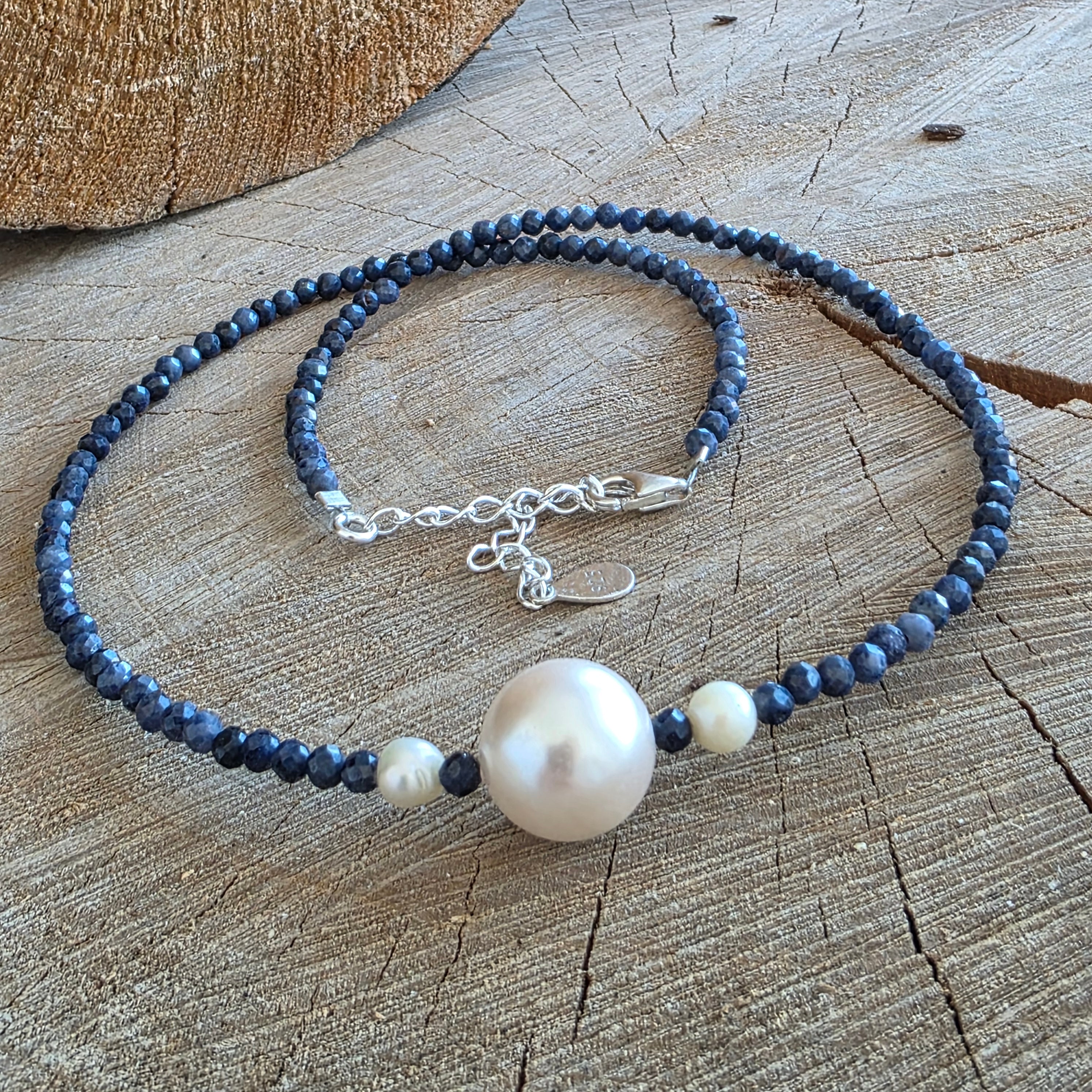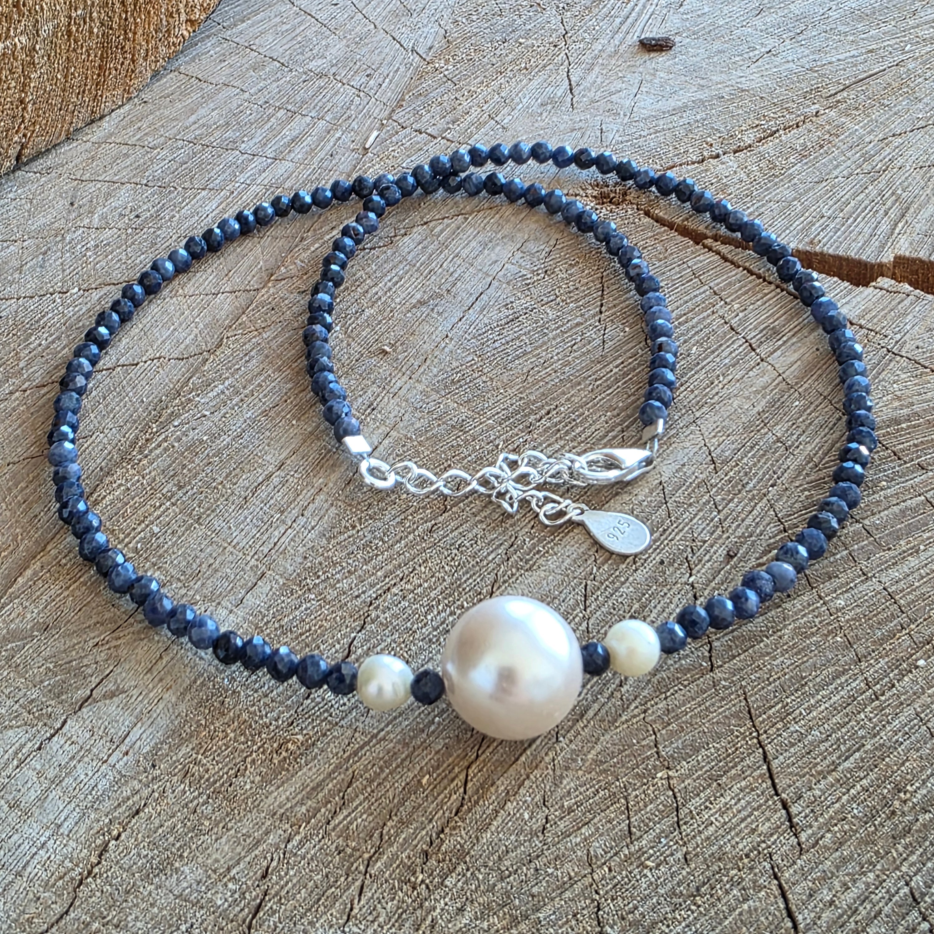 Materials: natural sodalite, 6 mm beads, 925 silver