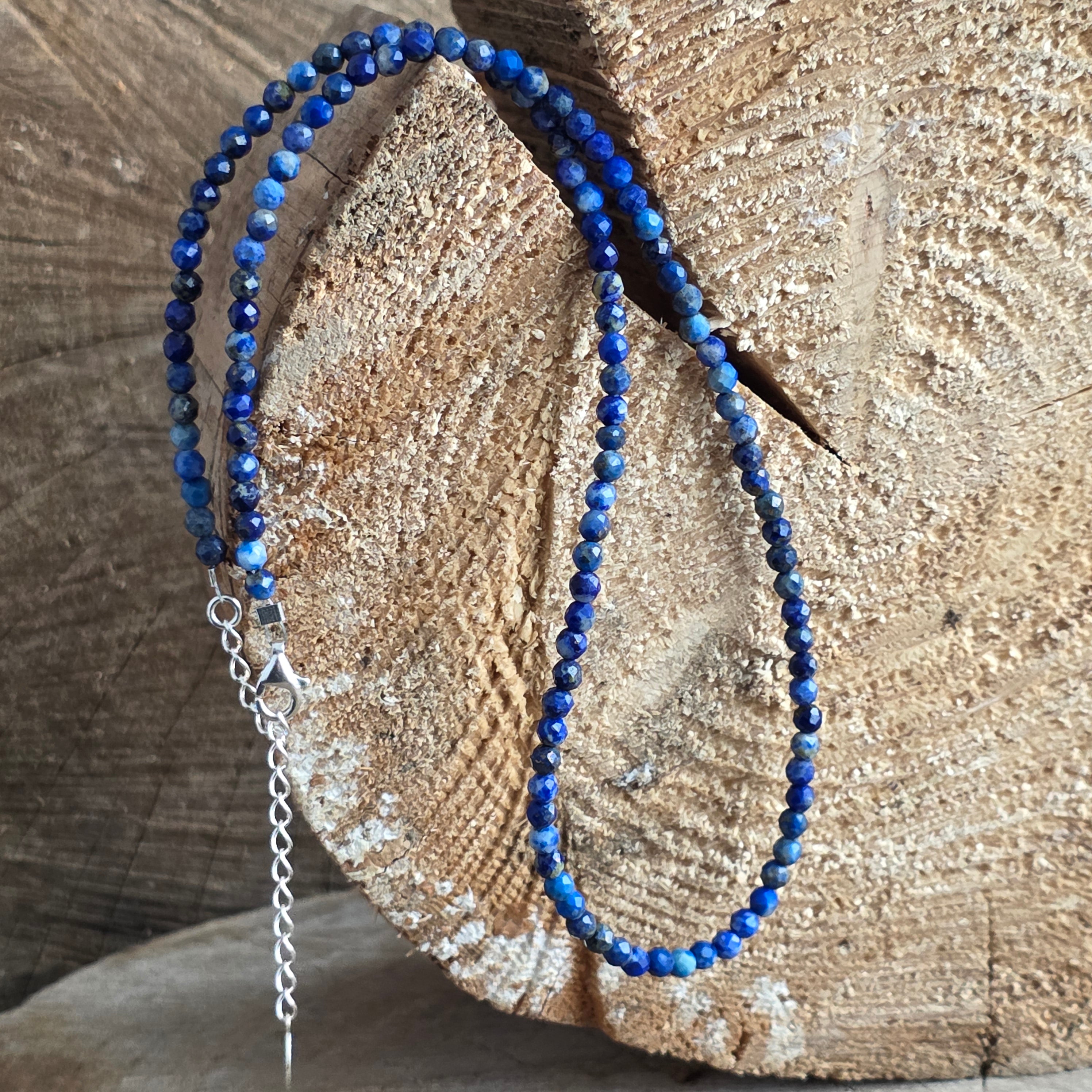Materials: 3 mm natural faceted lapis lazuli, 925 silver