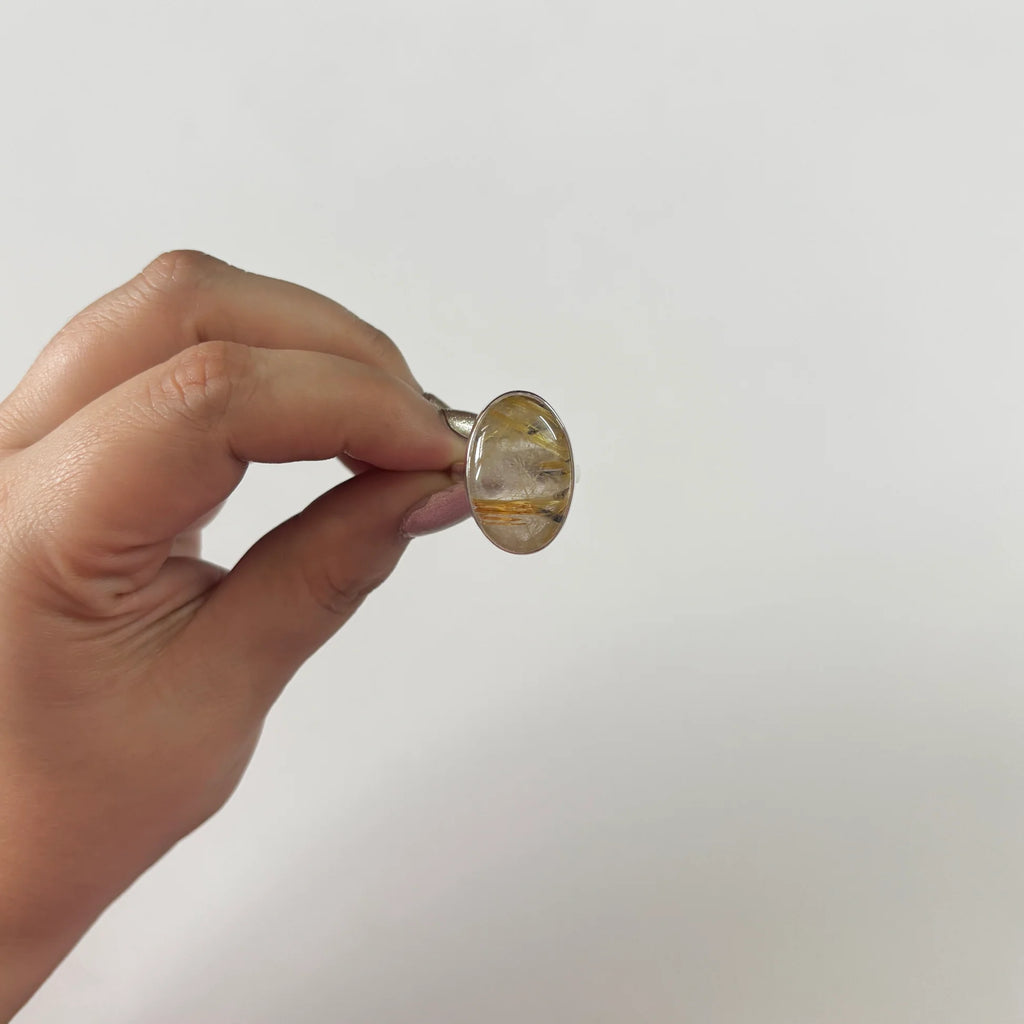 Adjustable Rutilated Silver Quartz Ring Model 3