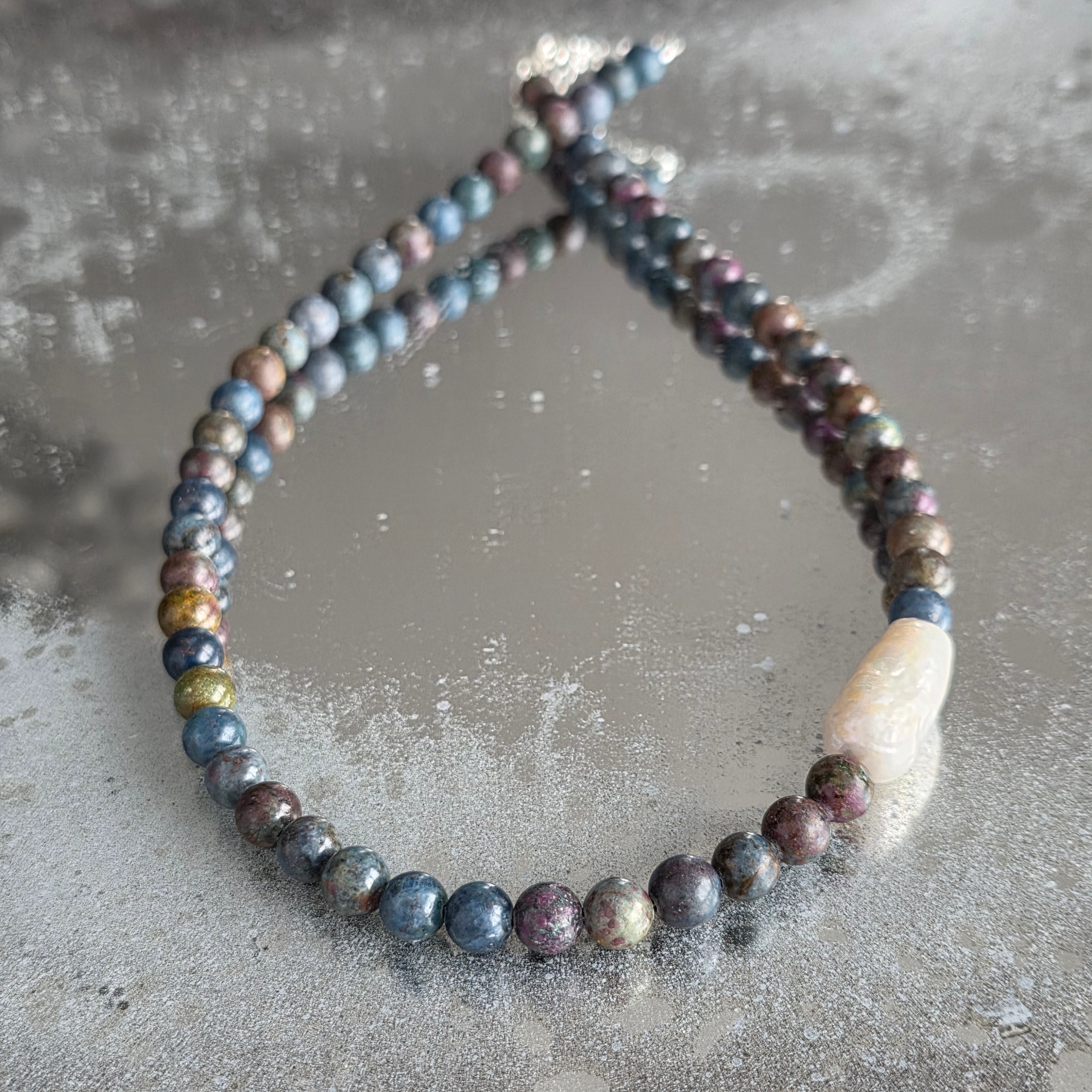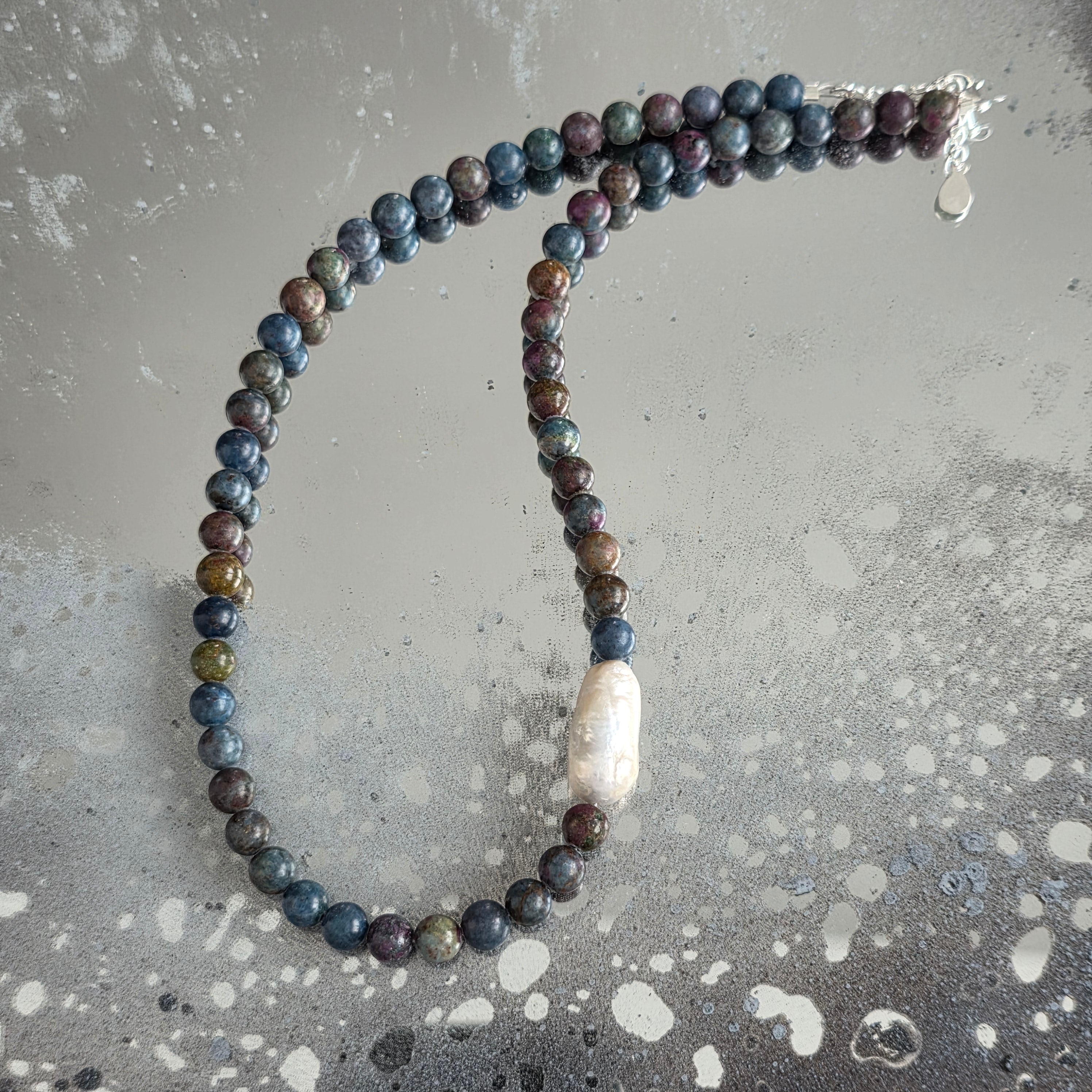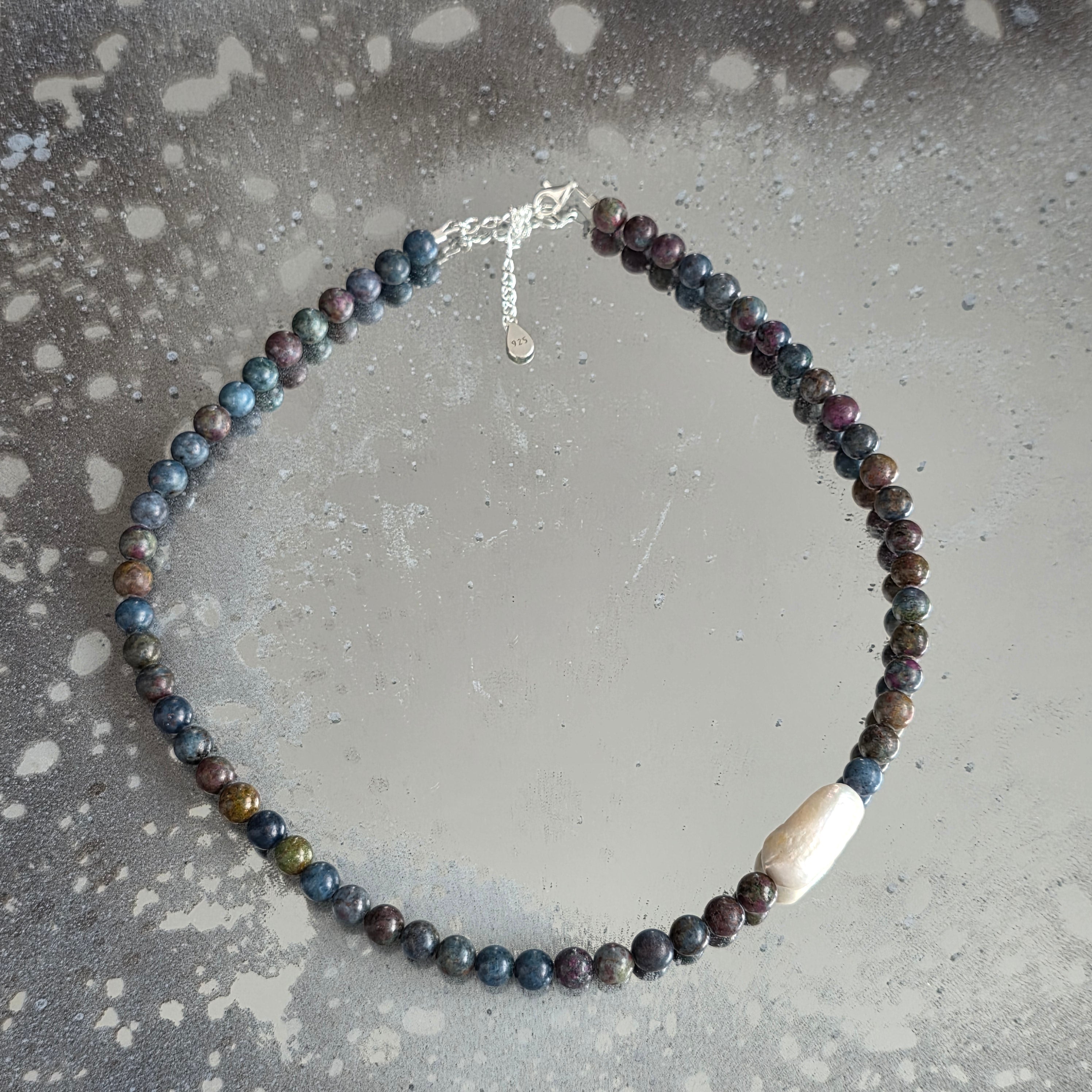 Sapphire and Ruby Necklace with Baroque Pearl Accent #304