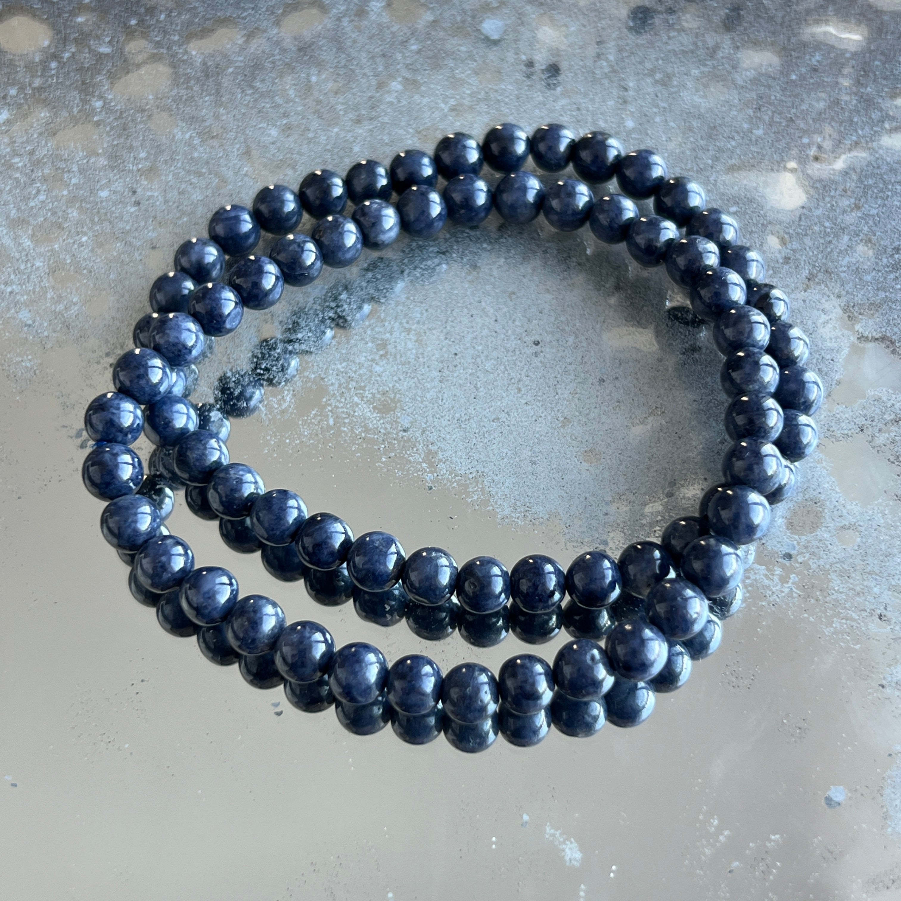 A bracelet as delicate as a whisper and yet full of depth, like the night sky reflecting the stars. The faceted natural sapphire beads, with a diameter of 5 mm, shine in shades of intense blue, sometimes with deep indigo reflections or lighter tones that bring balance to the composition. It is a discreet and refined piece of jewelry, created for those who carry silent elegance and inner strength in their hearts.