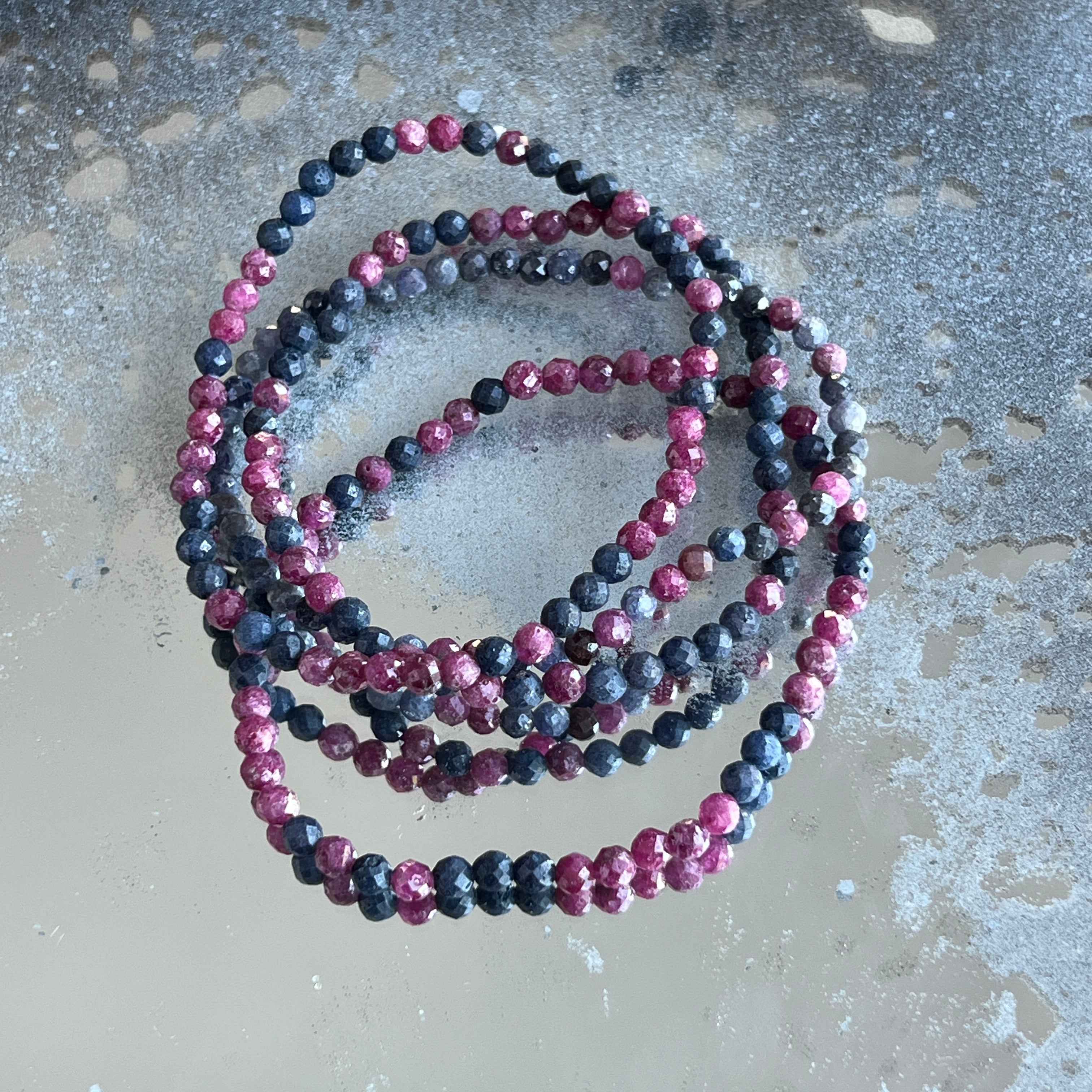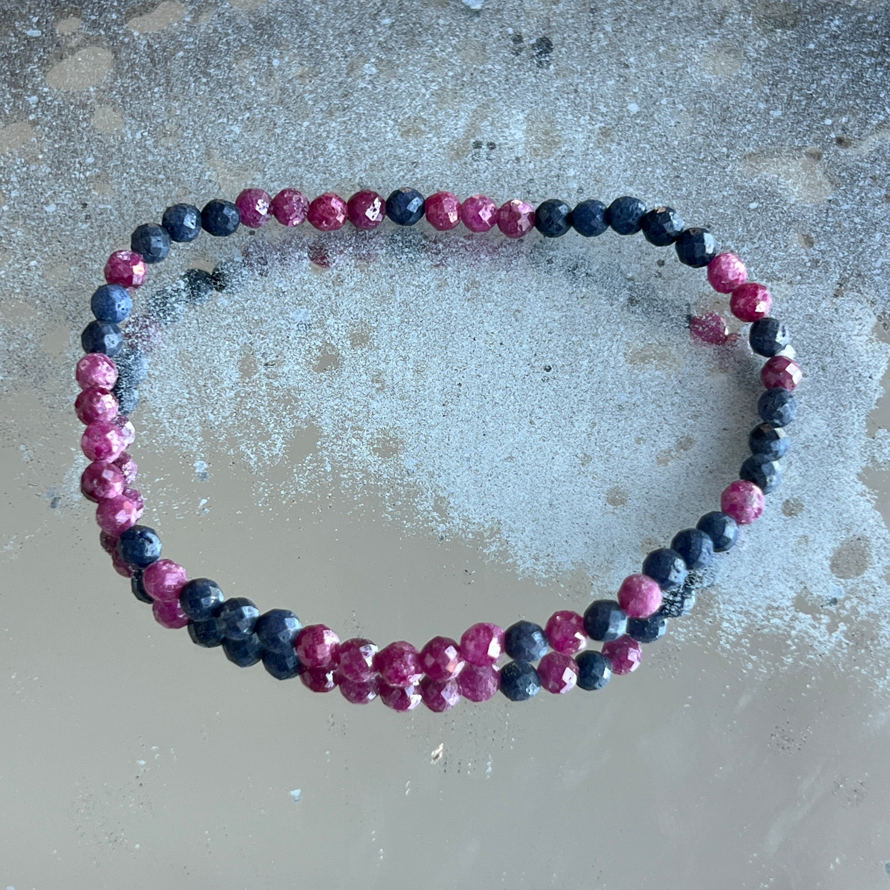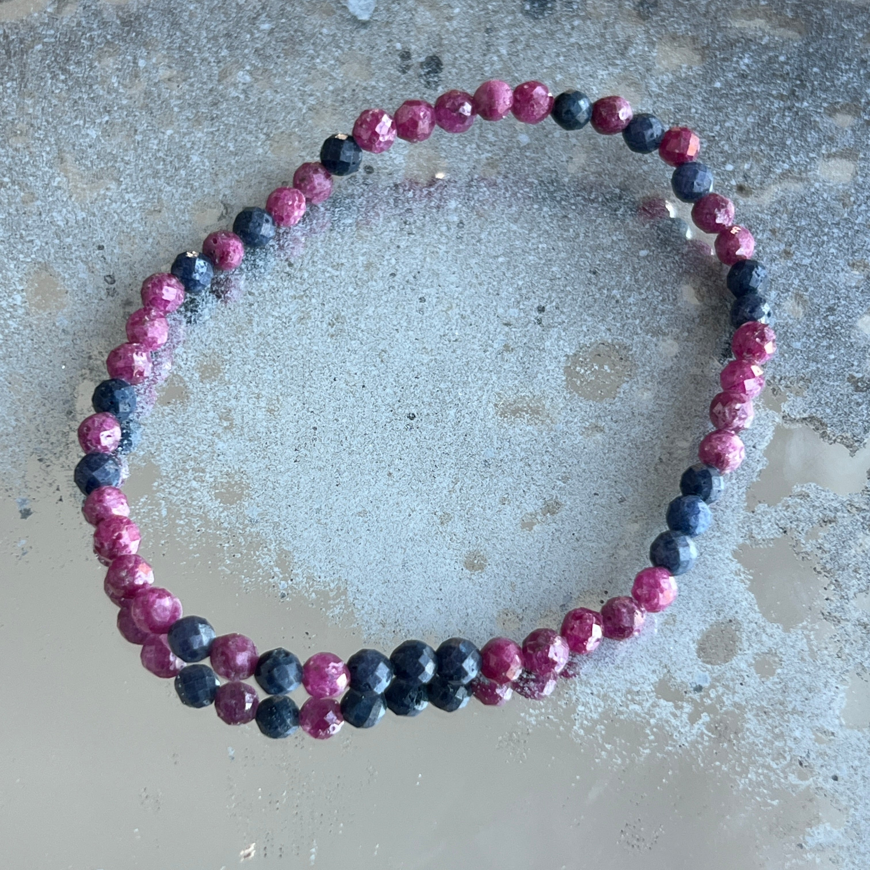 Faceted sapphire bracelet with ruby 4 mm