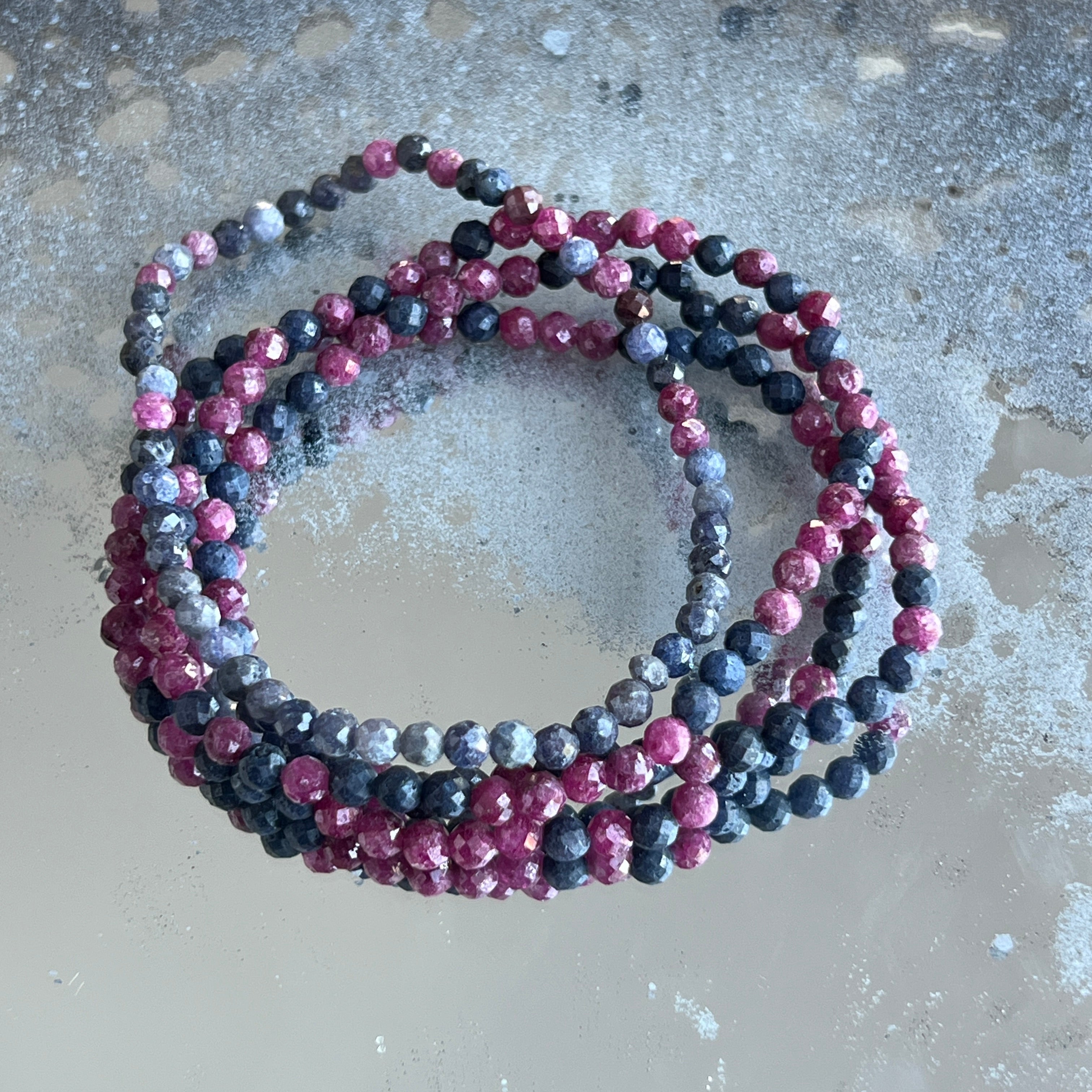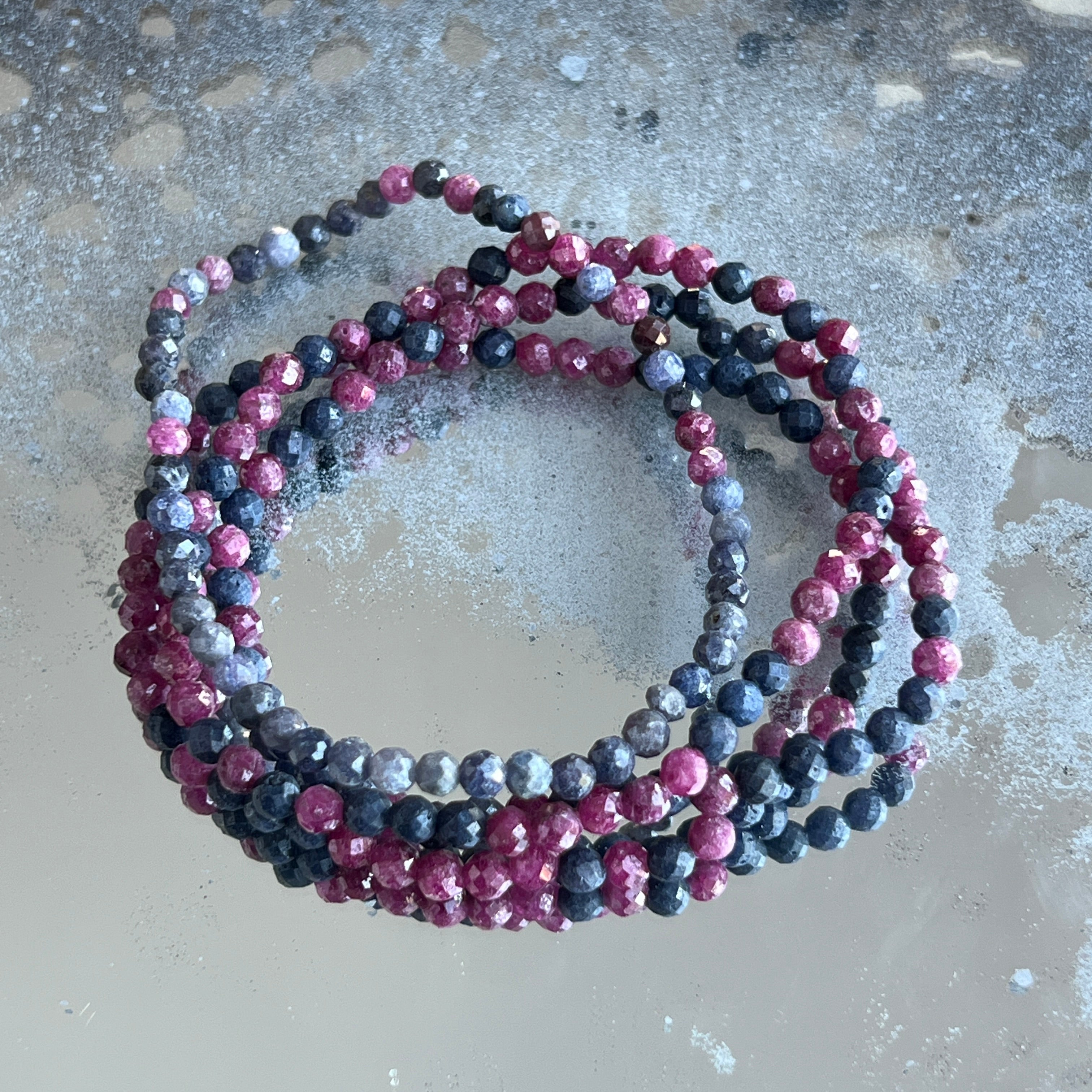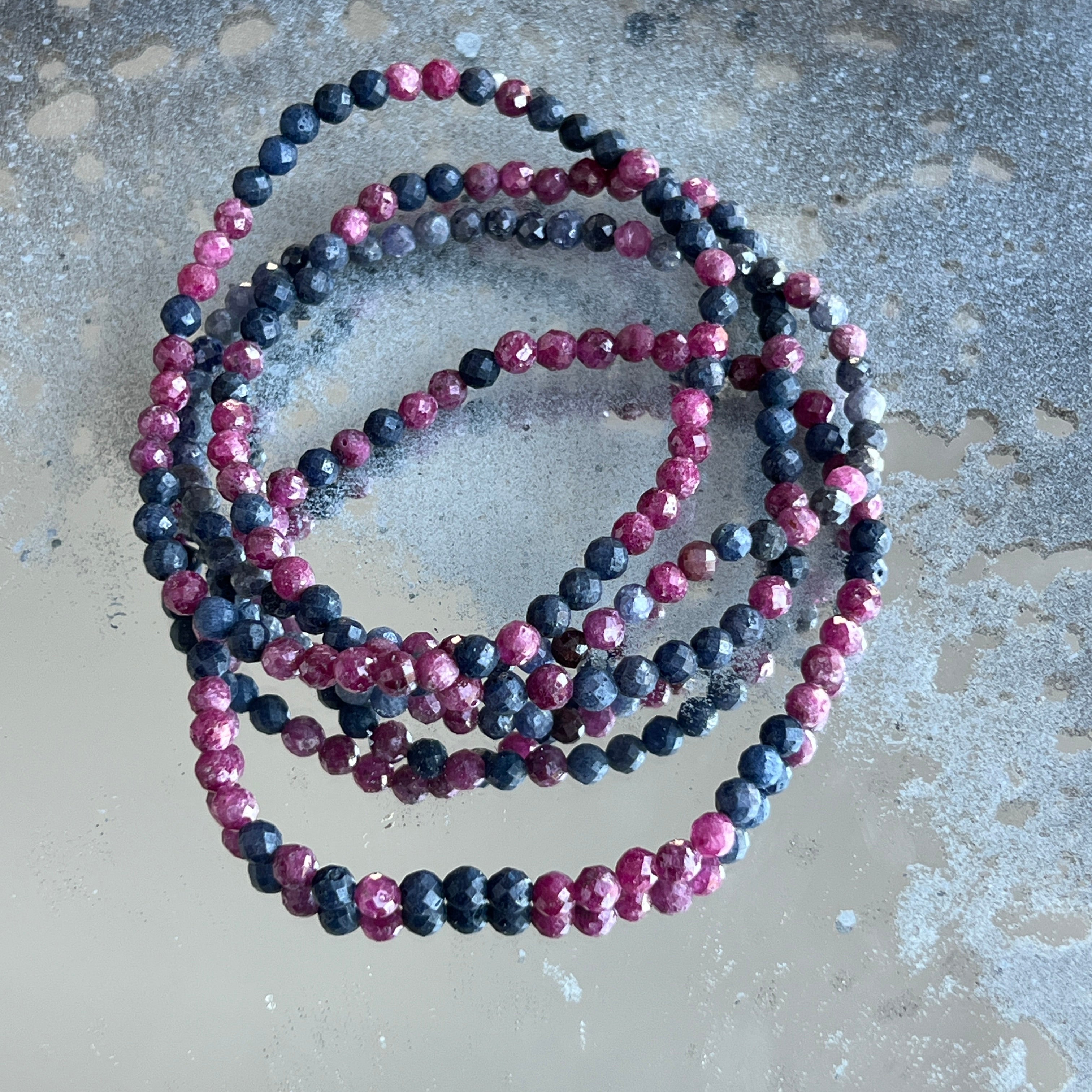 Faceted sapphire bracelet with ruby 4 mm