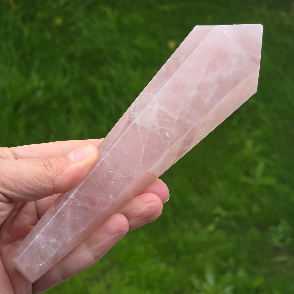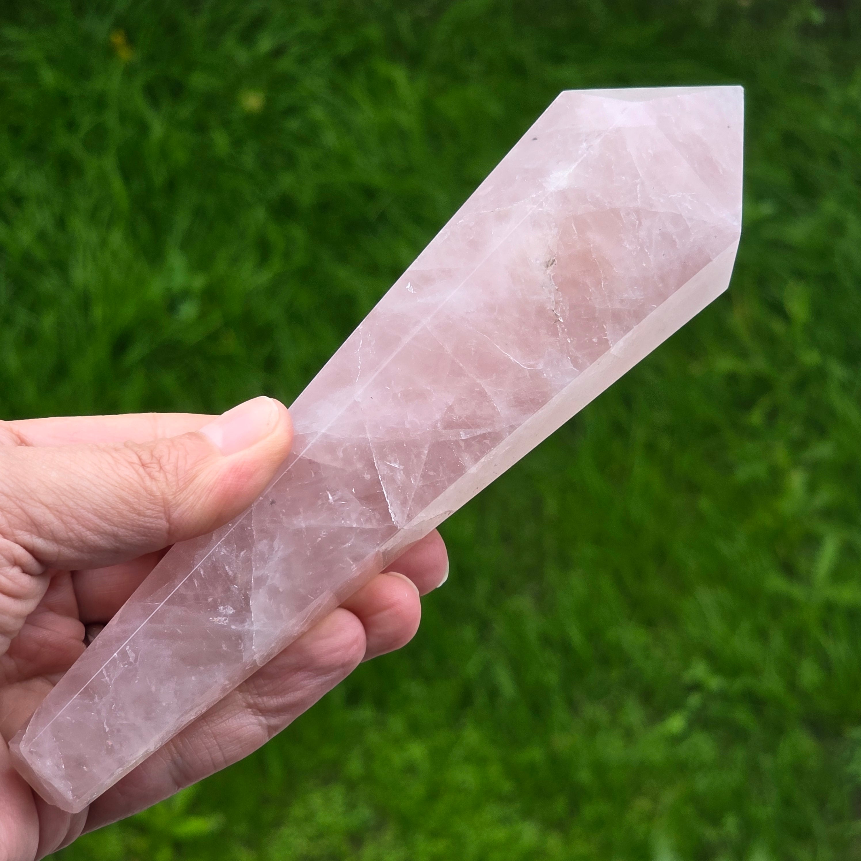 Sceptrul din cuart roz este un instrument folosit în special în practici energetice, masaj holistic și meditație. Forma sa alungită și vârful bine definit permit direcționarea intenției, echilibrarea fluxului energetic și focalizarea atenției în zonele în care ai nevoie de calm sau claritate. Este utilizat deseori pentru masaj energetic, fiind ideal pentru trasee lungi pe meridiane, pentru relaxarea zonei umerilor, spatelui sau palmelor. În meditație, poate fi ținut în mână pentru a amplifica starea de liniște și conectare interioară.