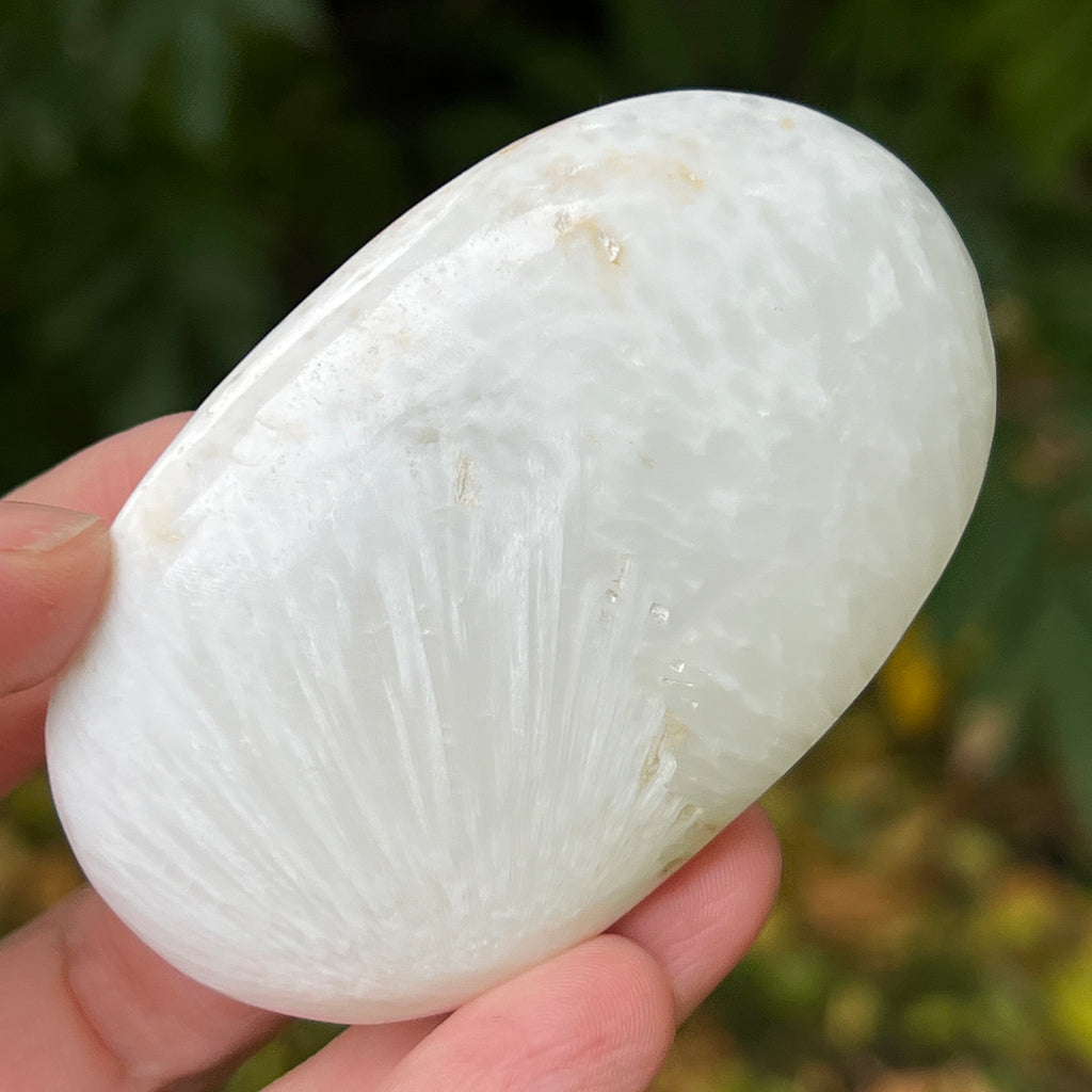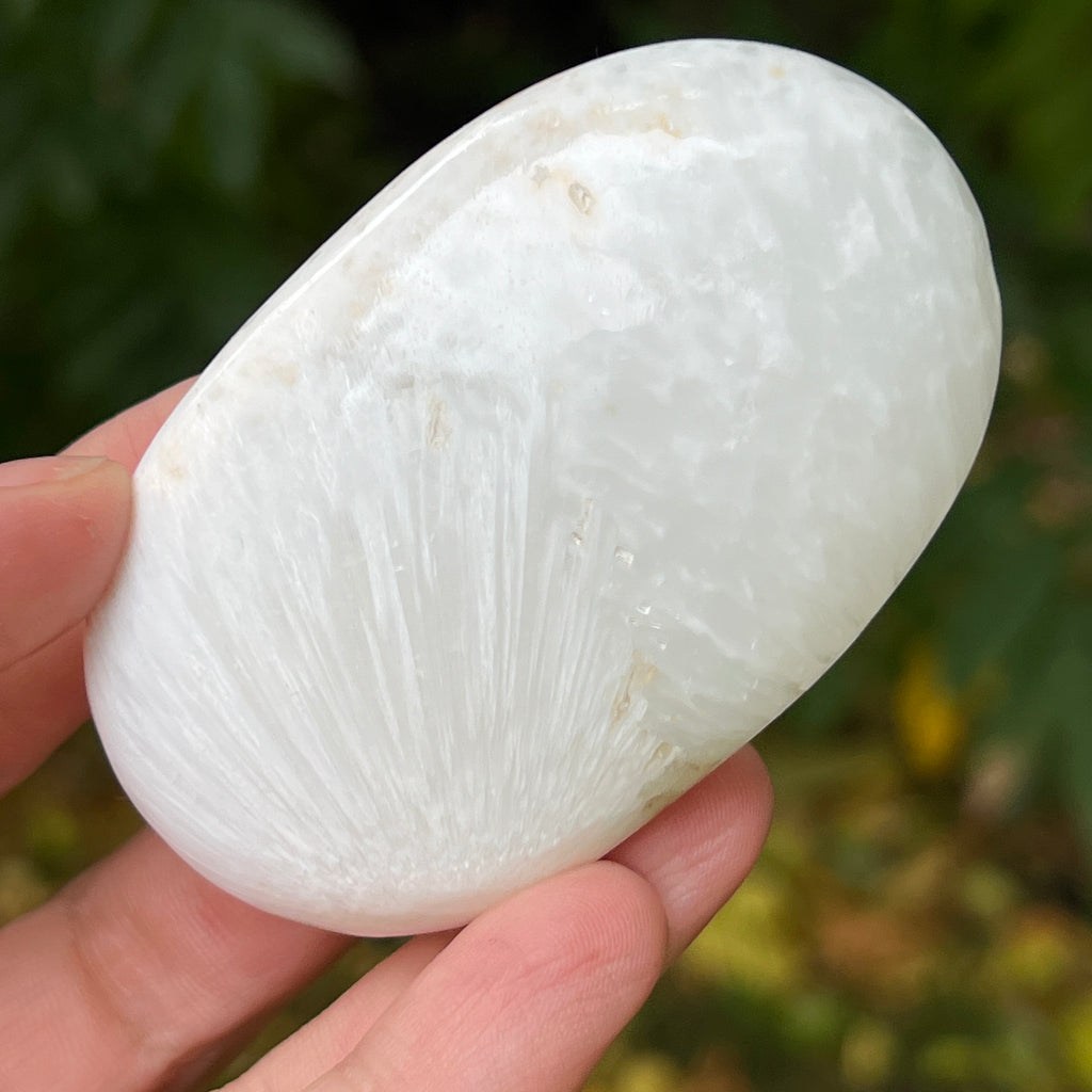 Scolecitul este o piatră delicată și luminoasă, aparținând familiei zeoliților, recunoscută pentru structura sa fină, fibros-radială și strălucirea mătăsoasă. De obicei albă sau crem, uneori cu nuanțe subtile de roz sau bej, această piatră emană o puritate aproape eterică, amintind de calmul lăuntric și de tăcerea din care se naște pacea.