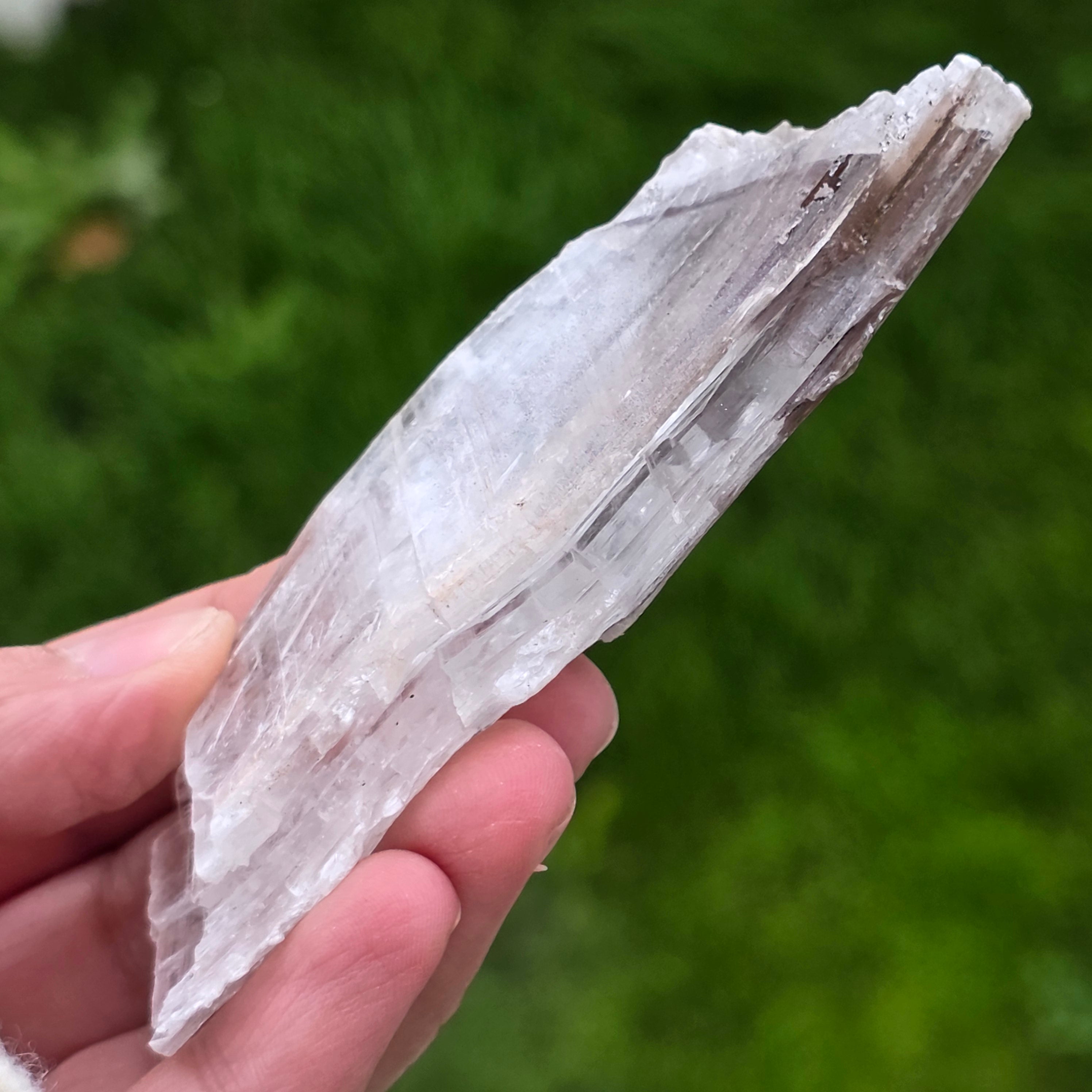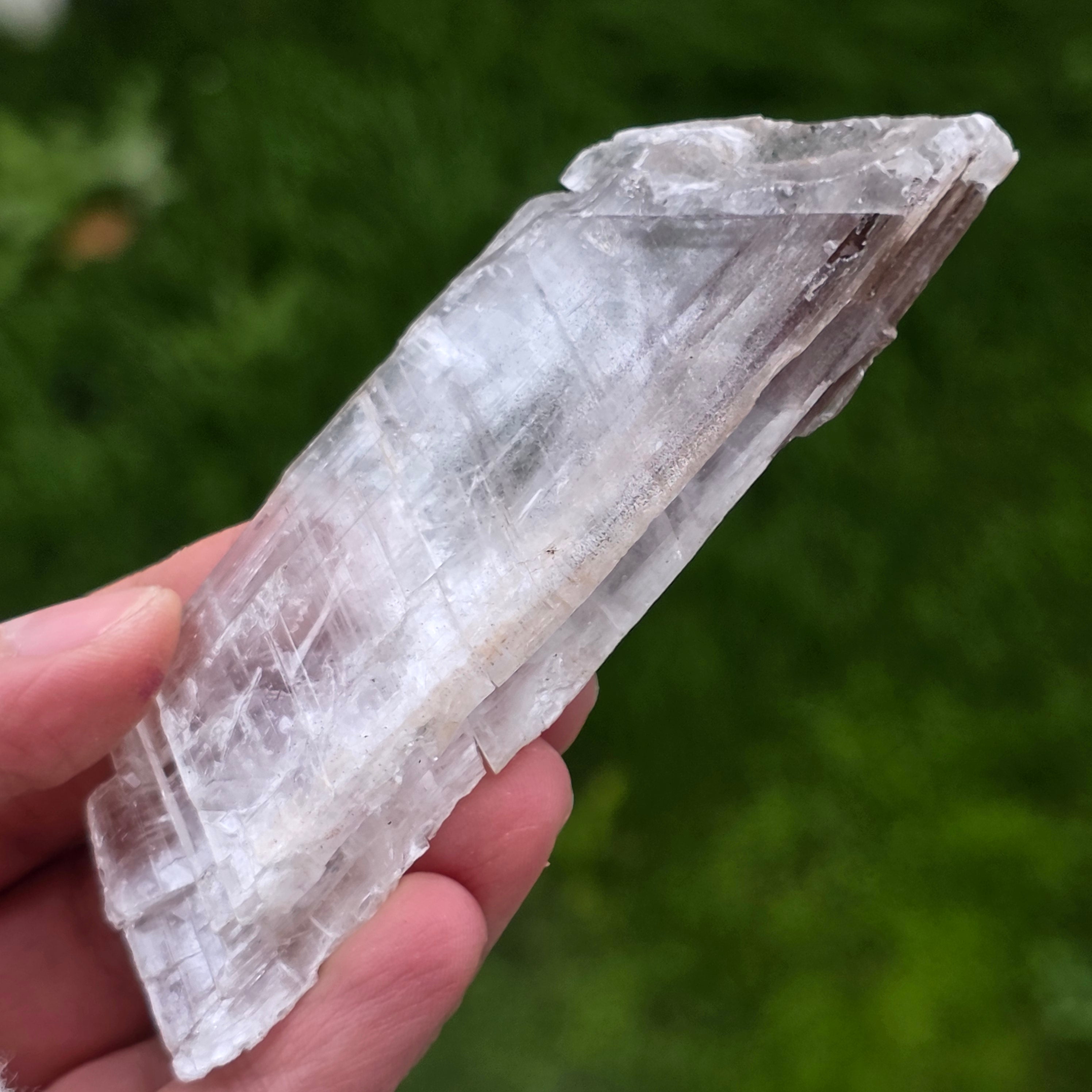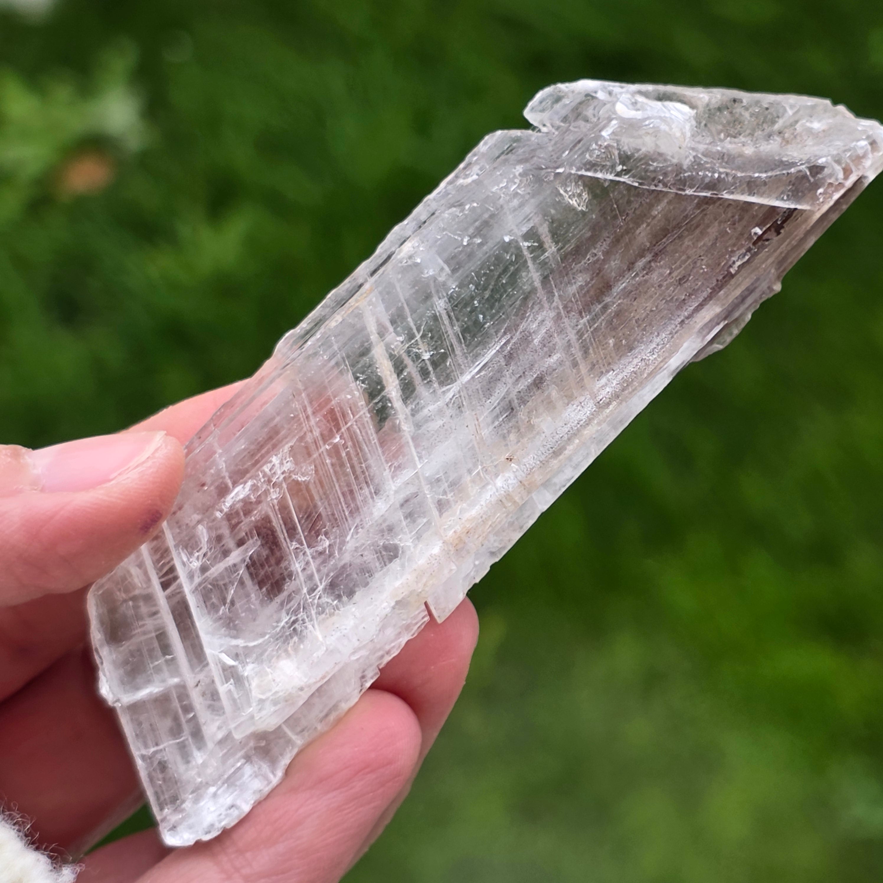 Selenitul apare sub formă de cristale alungite sau plăci translucide, cu luciu mătăsos și textură fină, în timp ce hematitul este prezent sub formă de incluziuni, pelicule sau depuneri naturale, care accentuează structura cristalului și îi conferă profunzime vizuală.