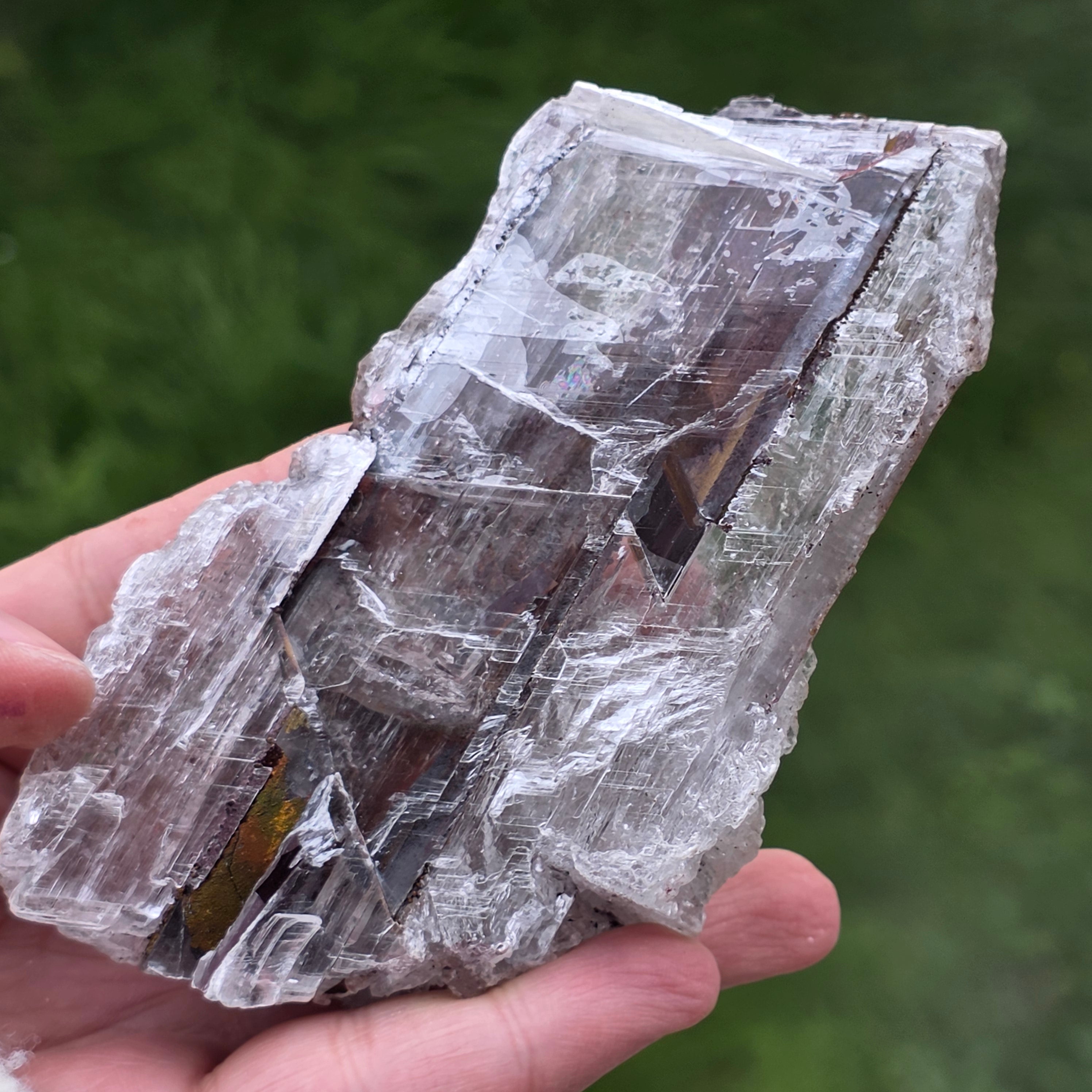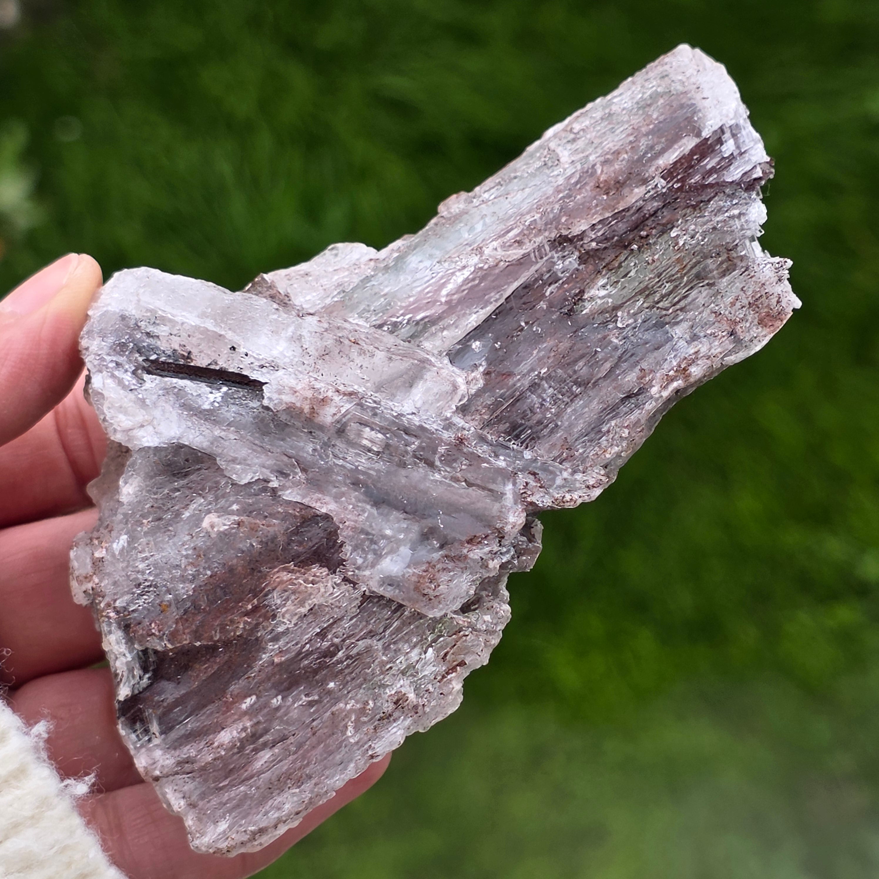 This selenite with hematite specimen from Mexico is an authentic mineral piece, valued for the natural contrast between the milky transparency of selenite and the metallic, reddish-brown shades of hematite. The combination of these two minerals creates a striking visual effect.
