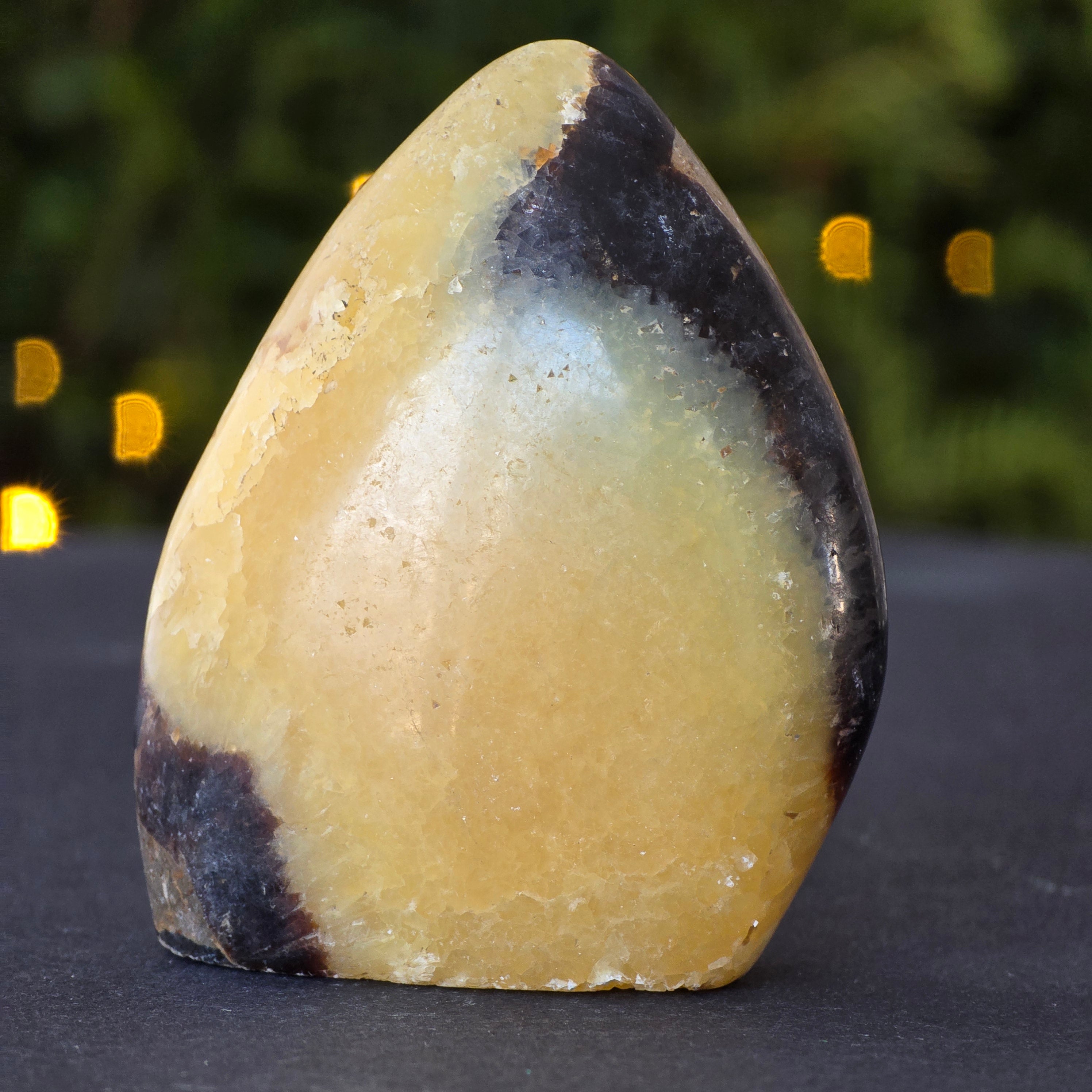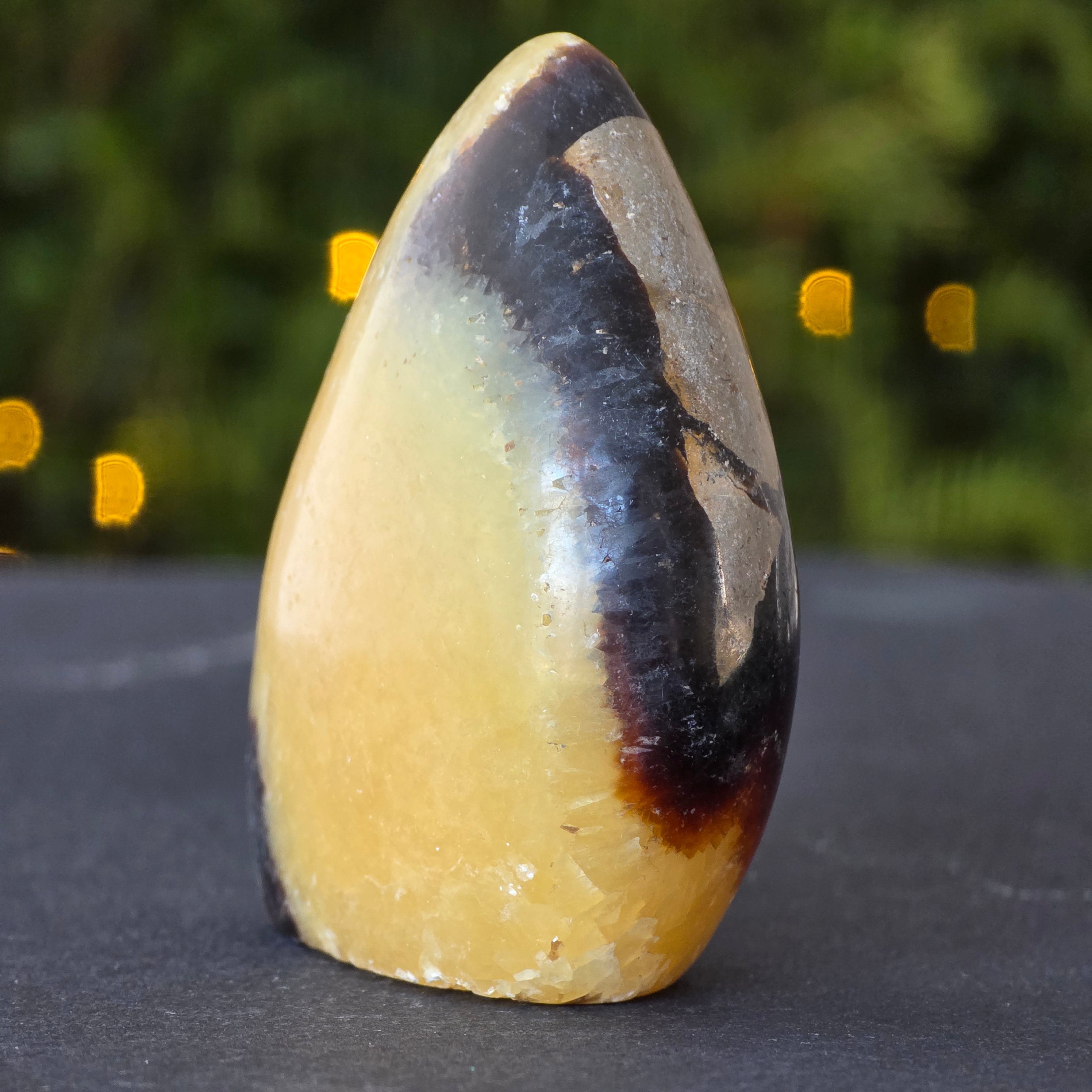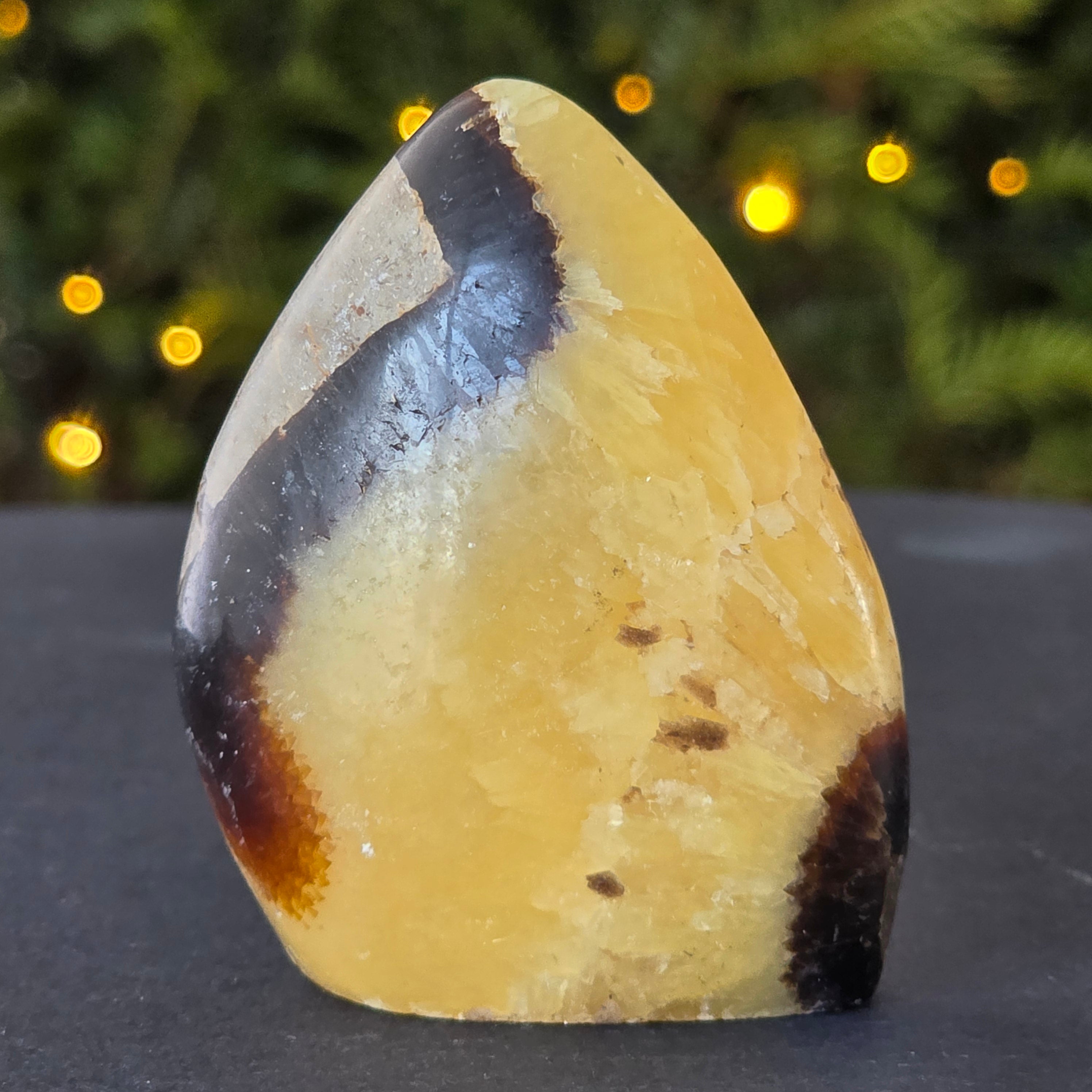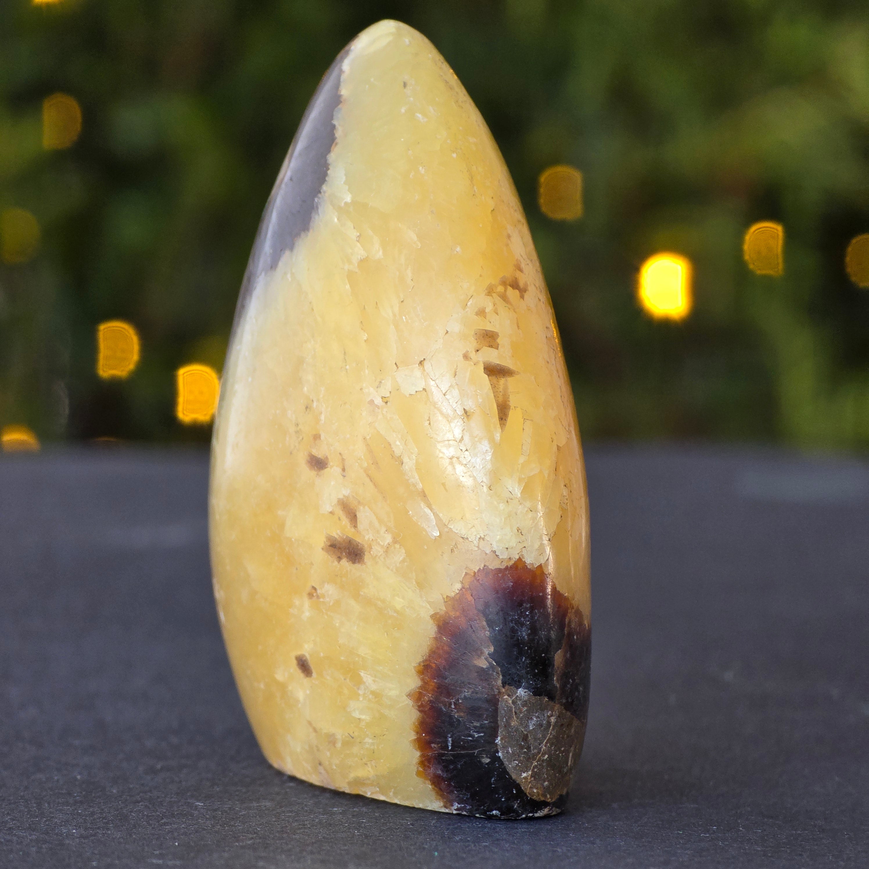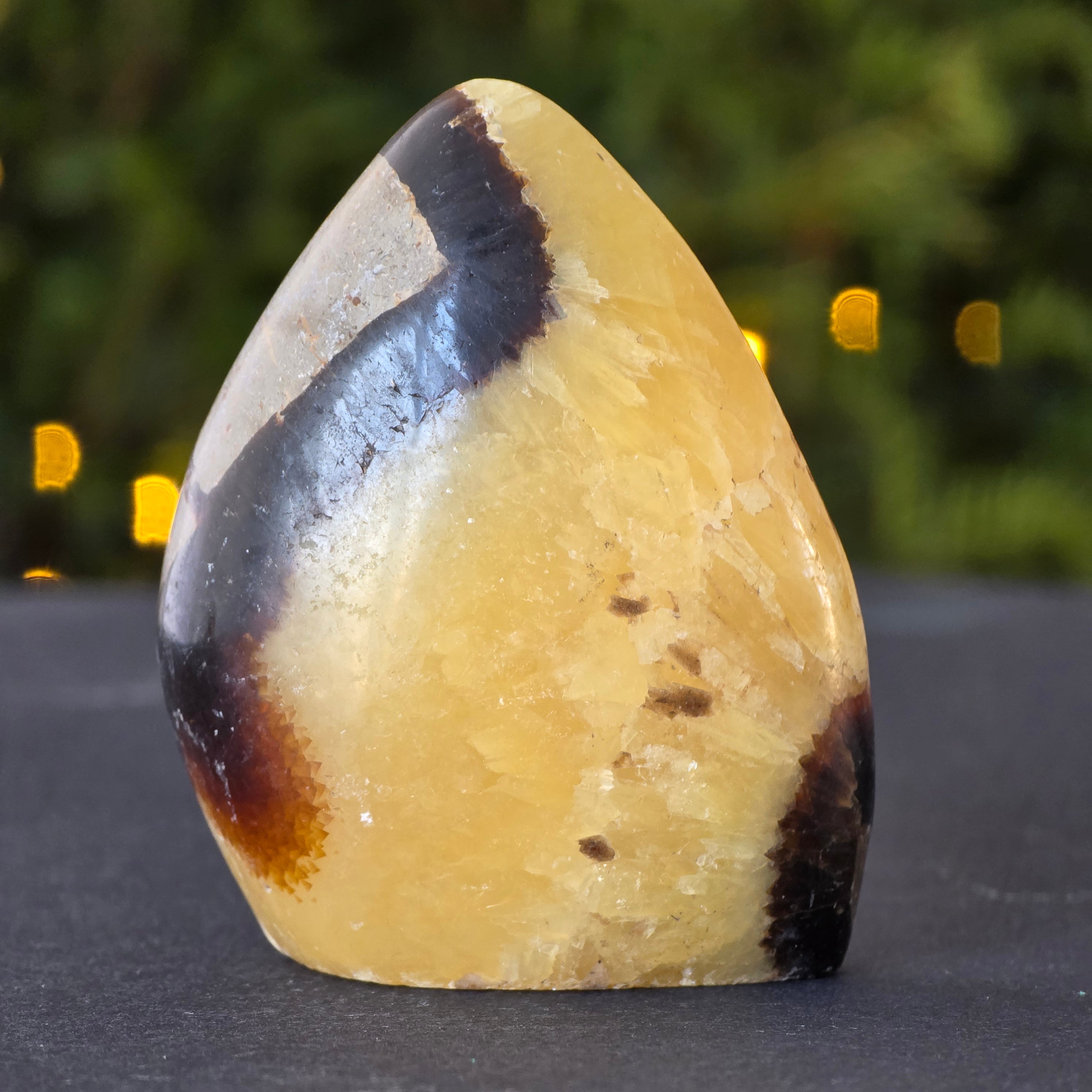 Septaria is made of calcite, limonite, gypsum and barite, minerals that form a unique play in this stone and give it a special appearance.