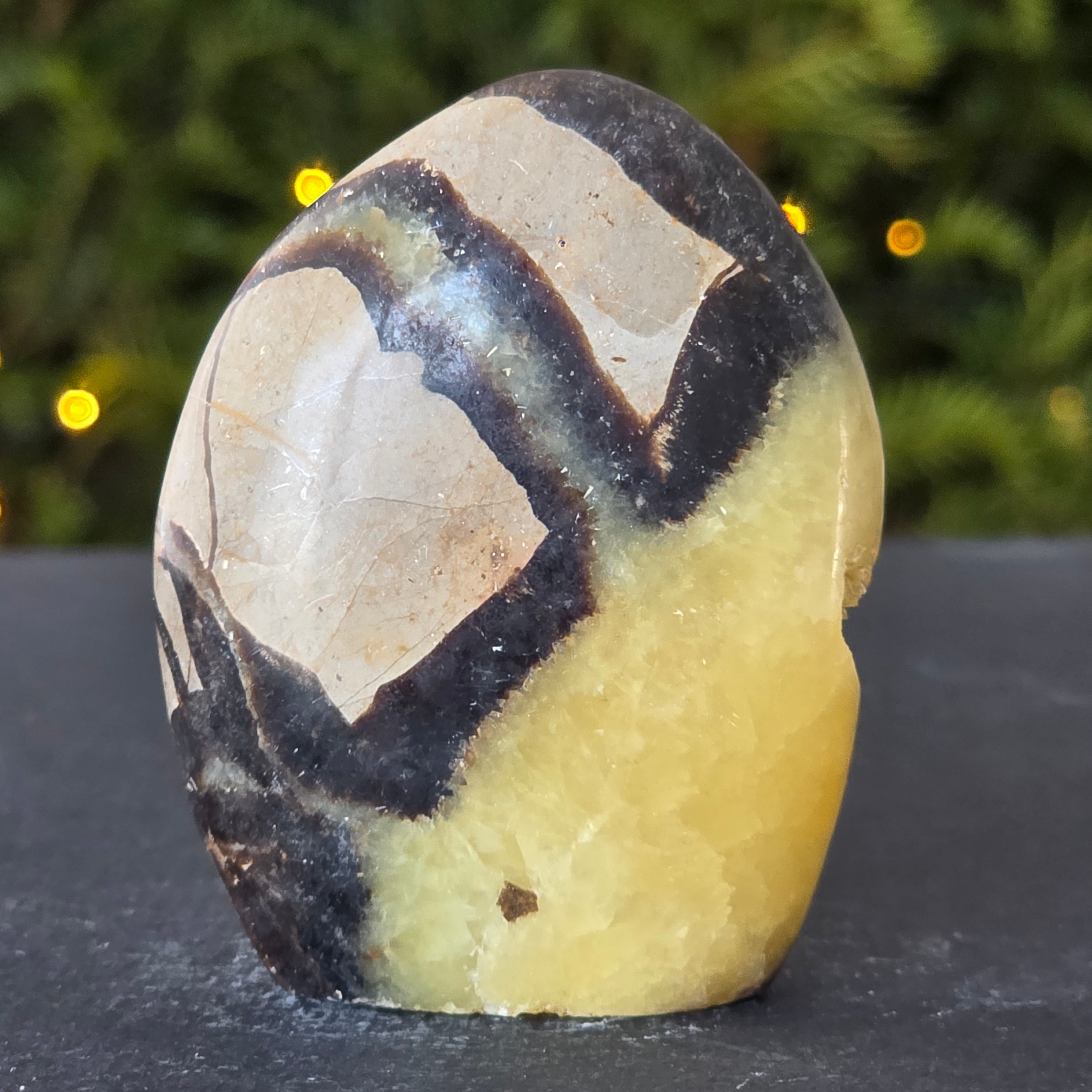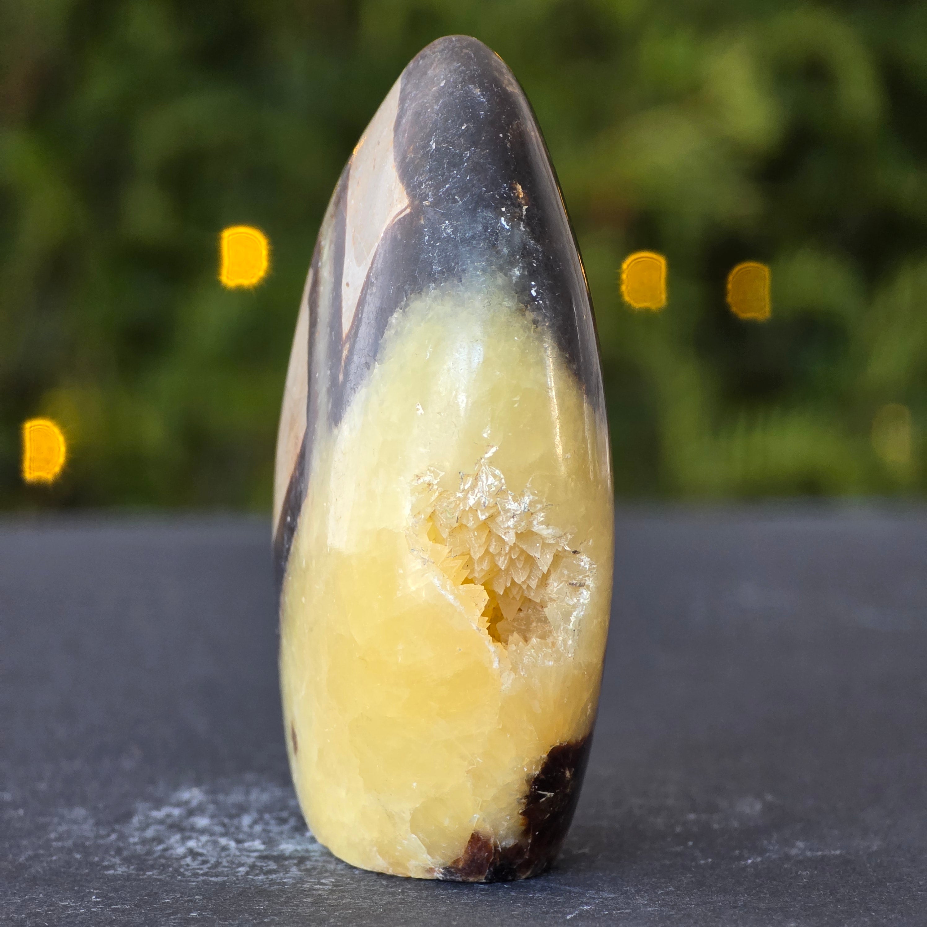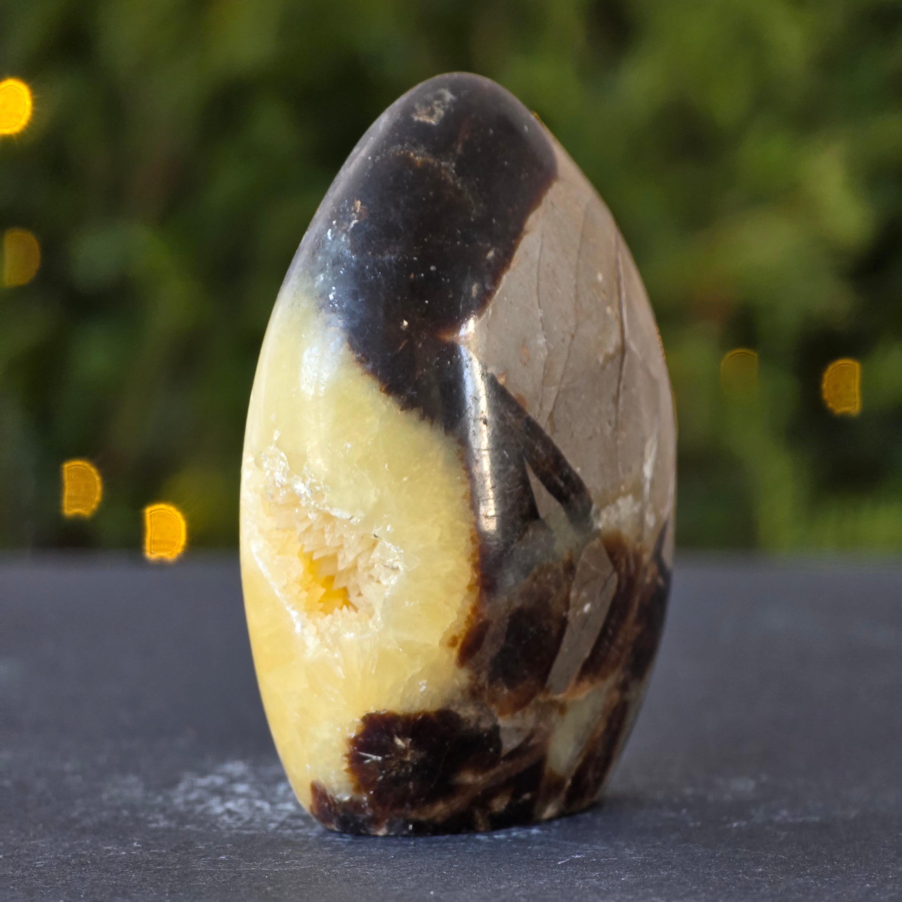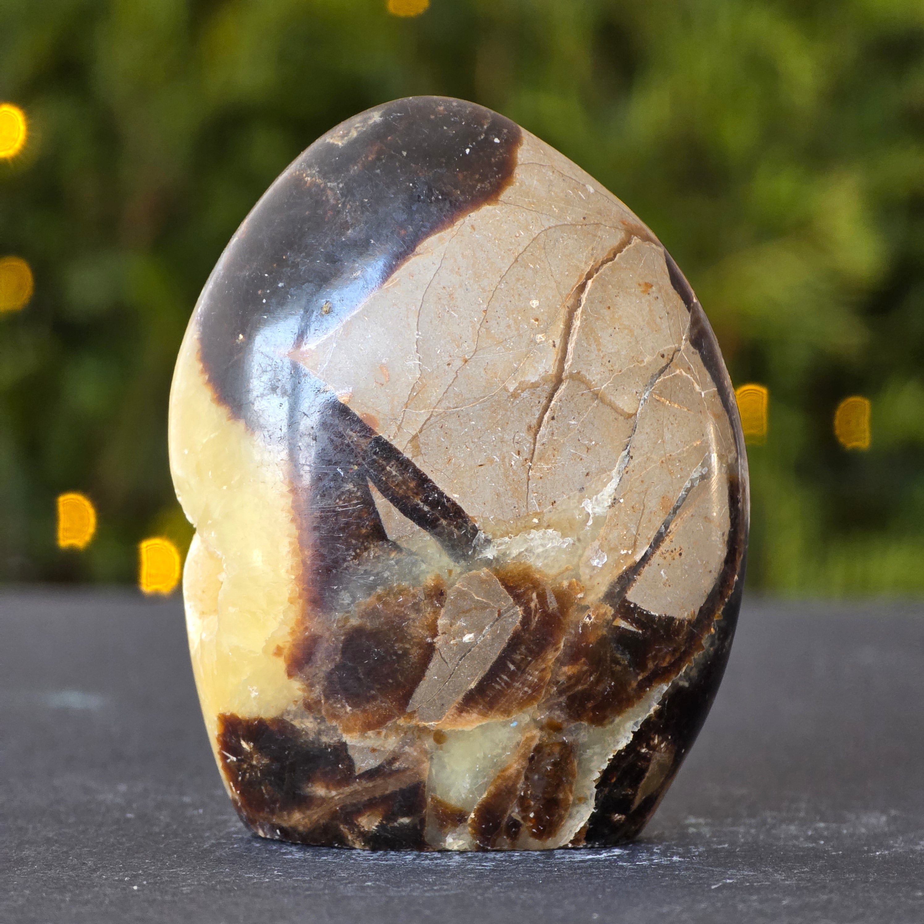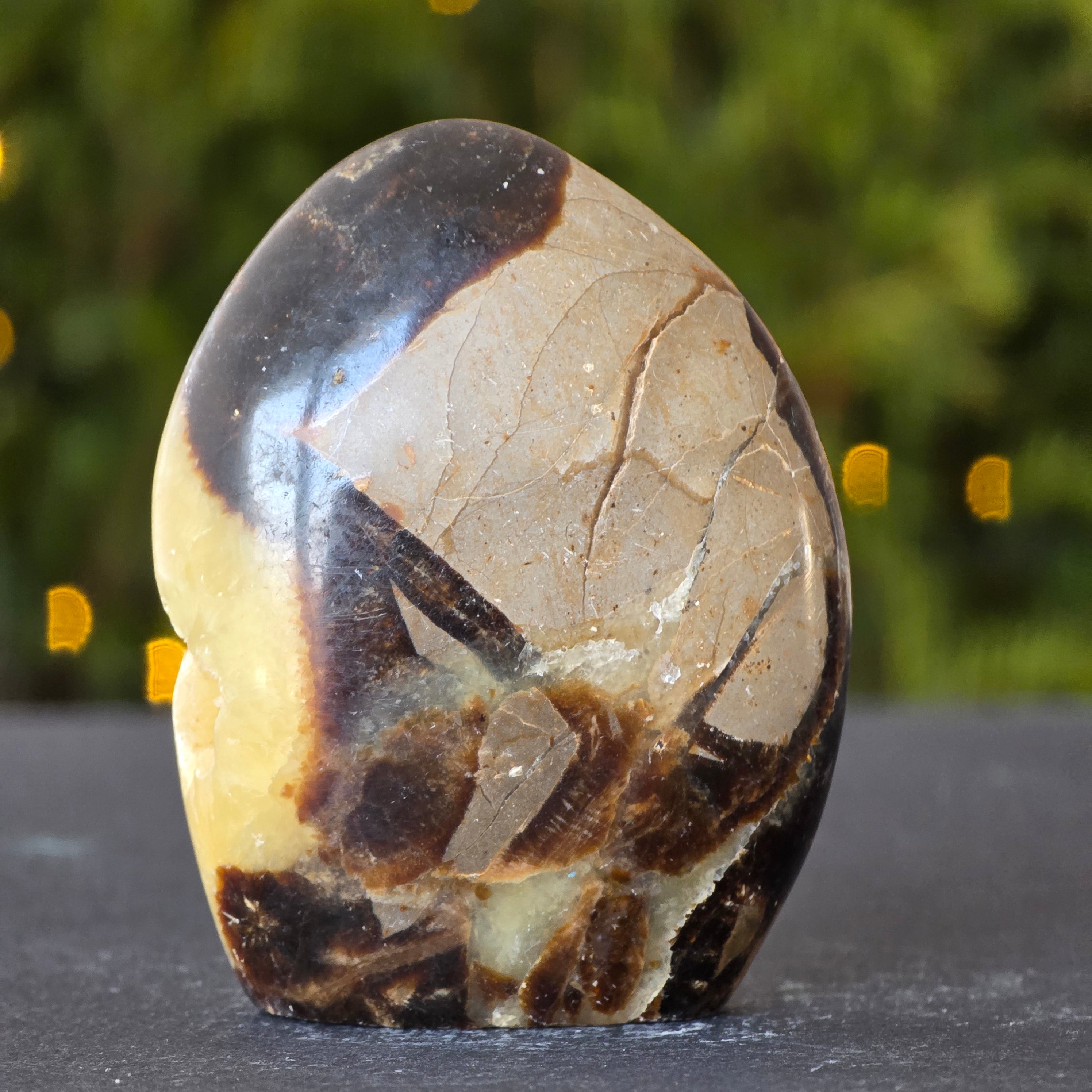 Septaria is made up of calcite, limonite, gypsum and barite, minerals that form a unique play in this stone and give it a special appearance.
