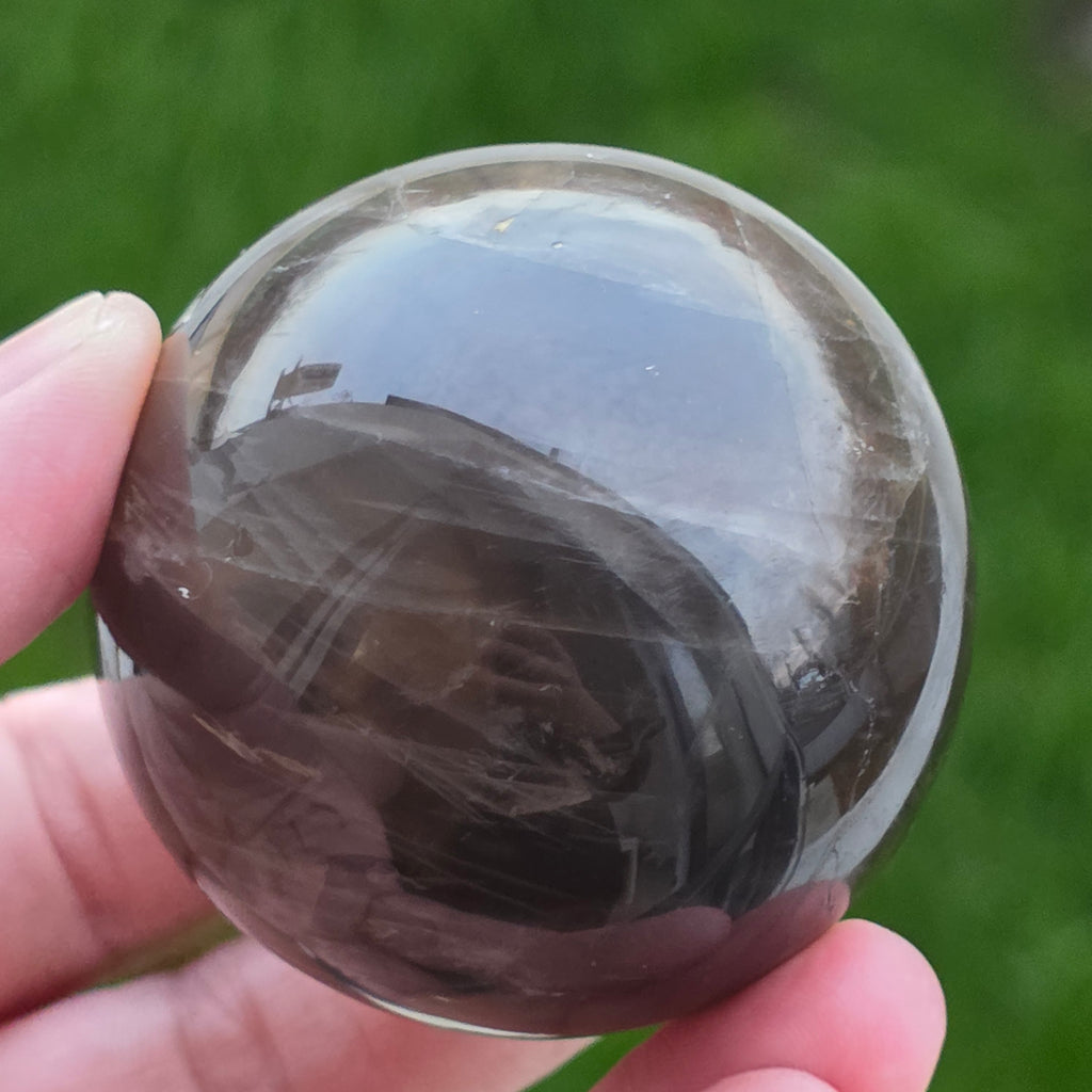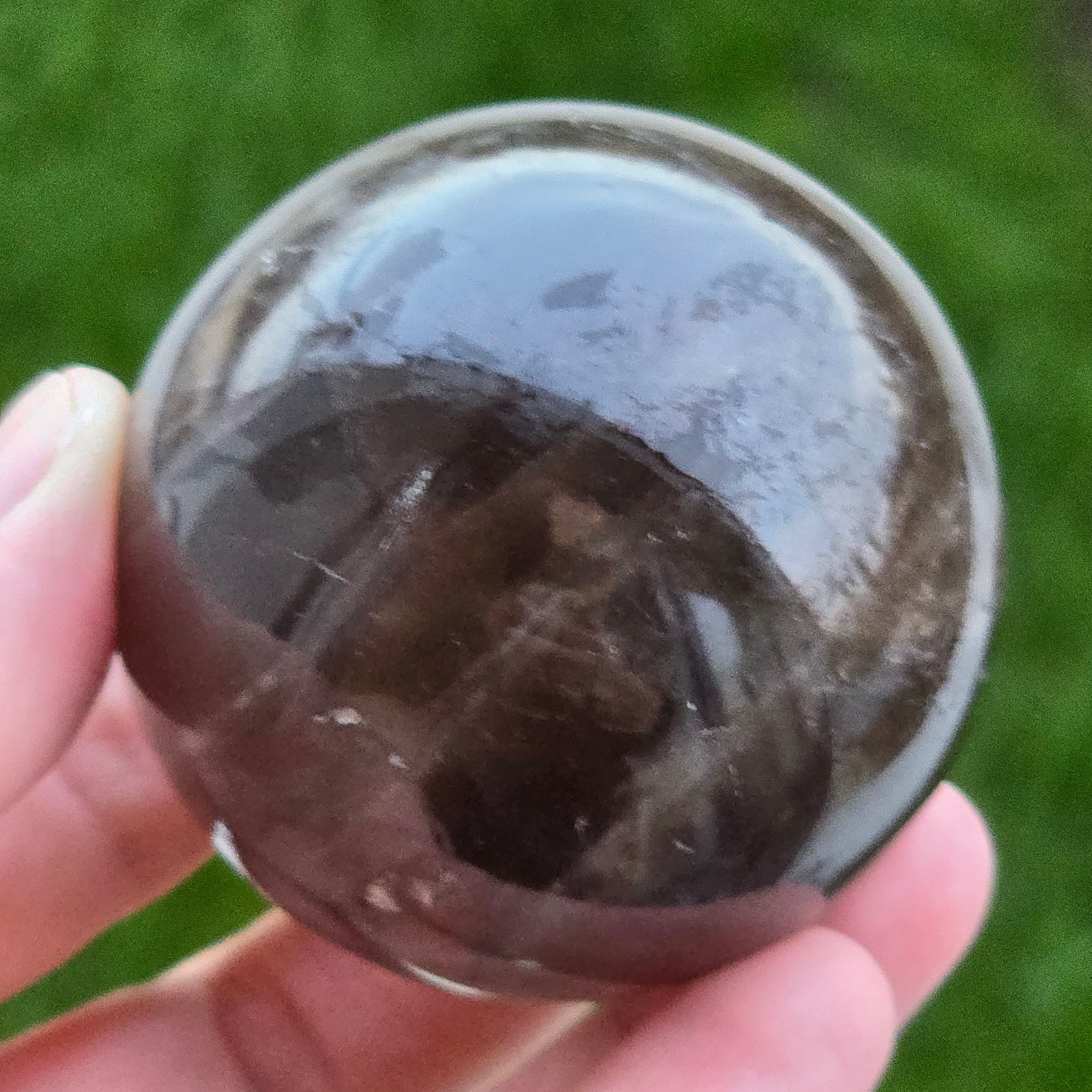 Sfera din cuarț morion este o piesă puternică și elegantă, cunoscută pentru nuanța sa profundă, asemănătoare fumului dens sau obsidianului transparent. Morionul este cea mai închisă varietate de cuarț fumuriu, iar în această formă perfect rotundă dezvăluie reflexii discrete, detalii interne fine și o prezență vizuală cu adevărat sofisticată.