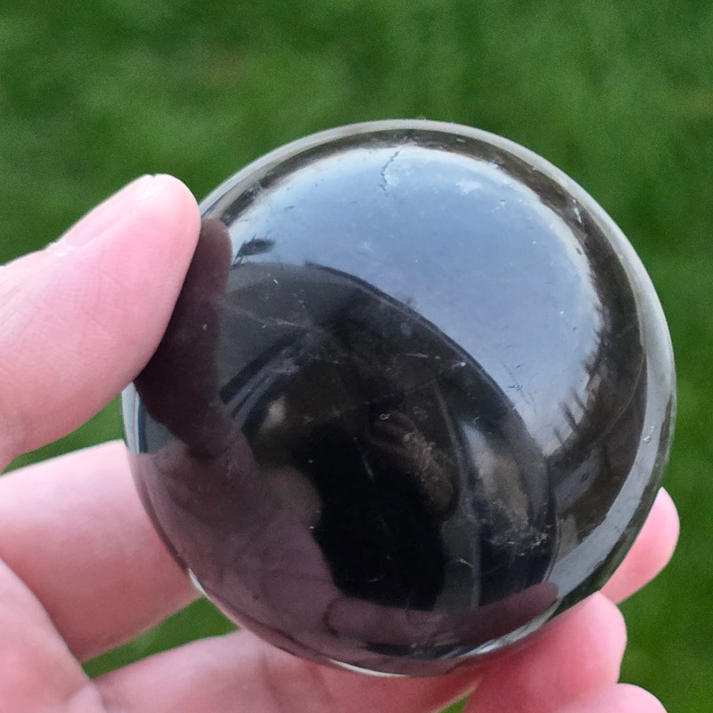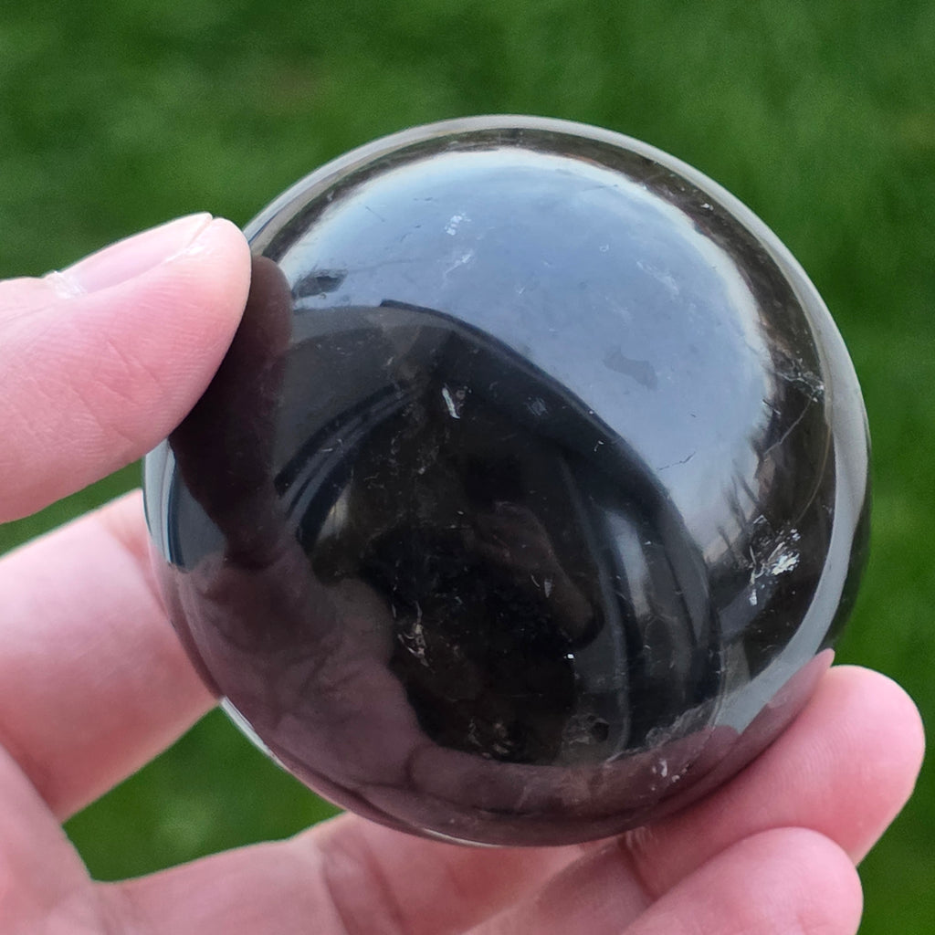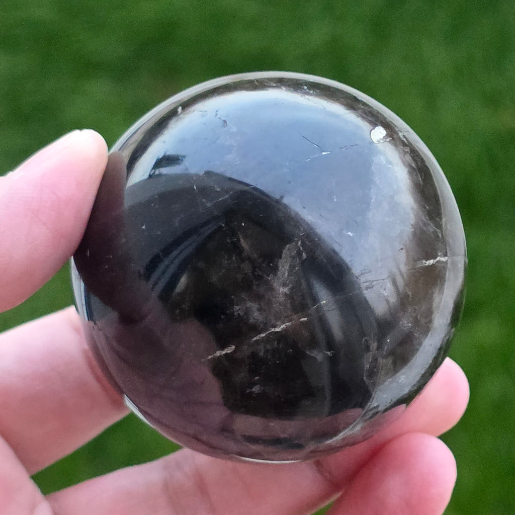 Sfera din cuarț morion este o piesă puternică și elegantă, cunoscută pentru nuanța sa profundă, asemănătoare fumului dens sau obsidianului transparent. Morionul este cea mai închisă varietate de cuarț fumuriu, iar în această formă perfect rotundă dezvăluie reflexii discrete, detalii interne fine și o prezență vizuală cu adevărat sofisticată.