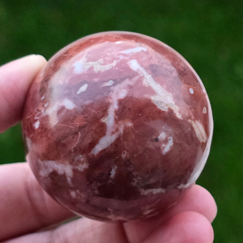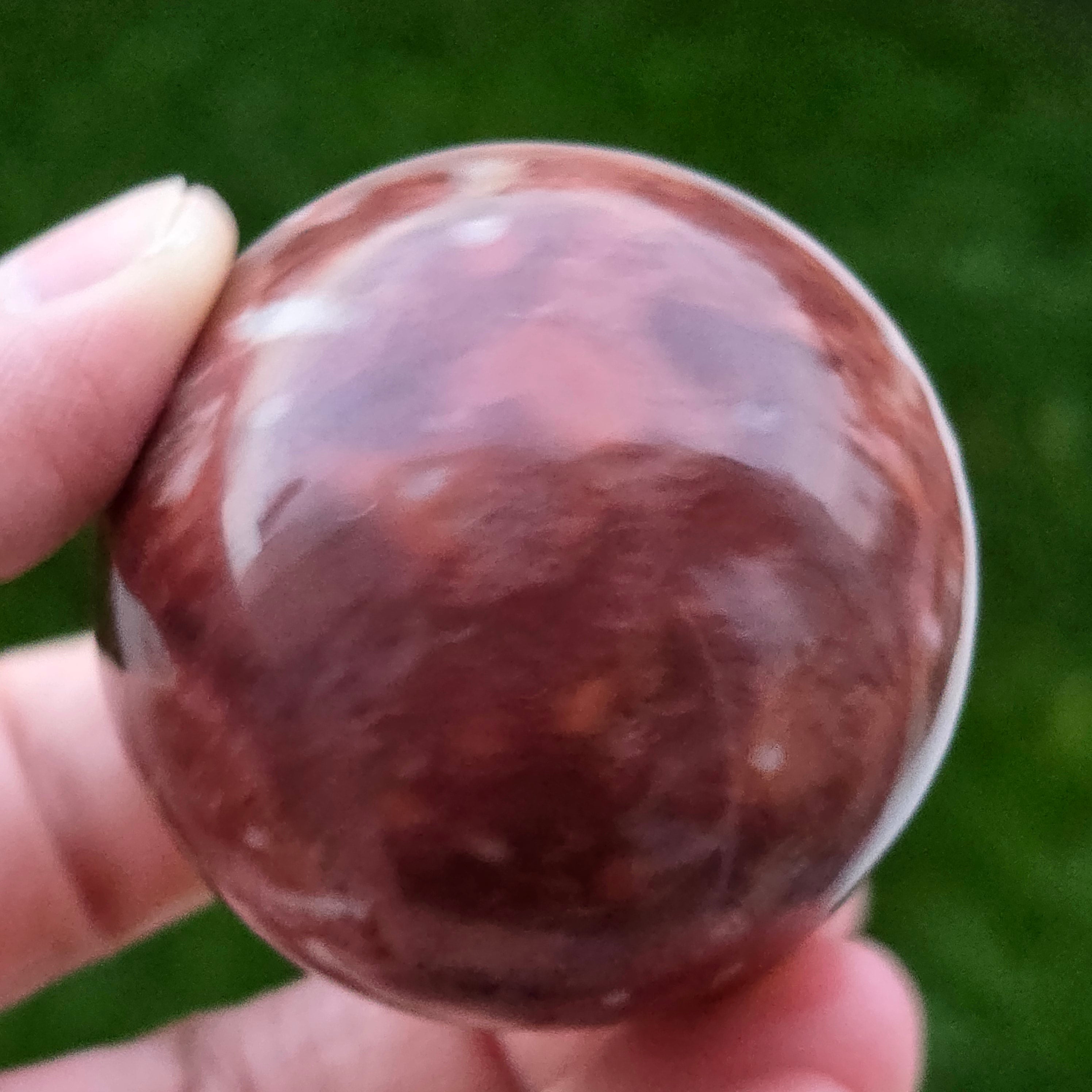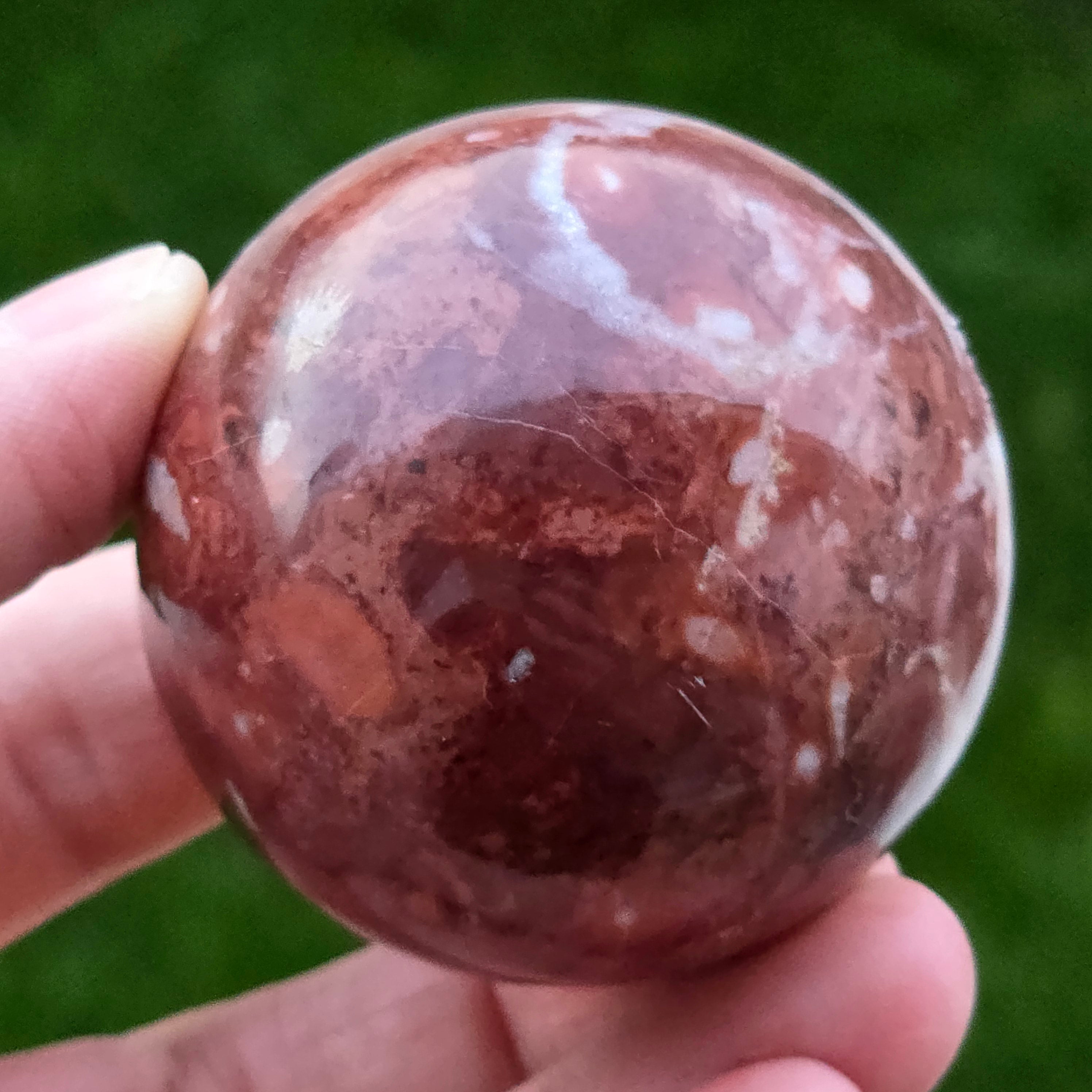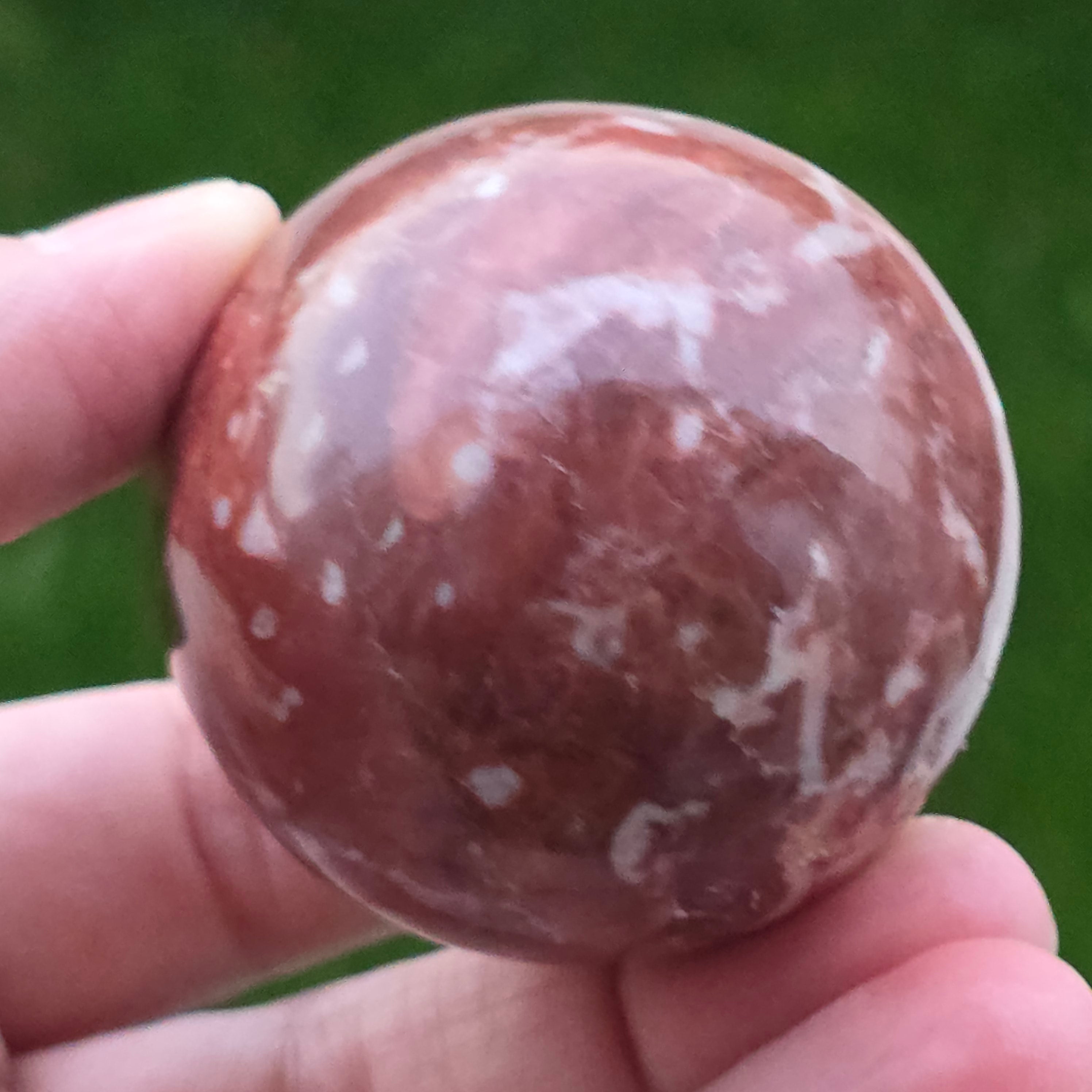 Sfera din Jasp Căpșună este o piesă vibrantă și expresivă, sculptată cu atenție pentru a evidenția nuanțele calde de roșu căpșună, texturile organice și desenul mineral specific acestei varietăți de jasp. Fiecare piesă este complet unică, cu modele naturale care se împletesc în forme fluide, evocând stratificarea rocilor și frumusețea lor brută.