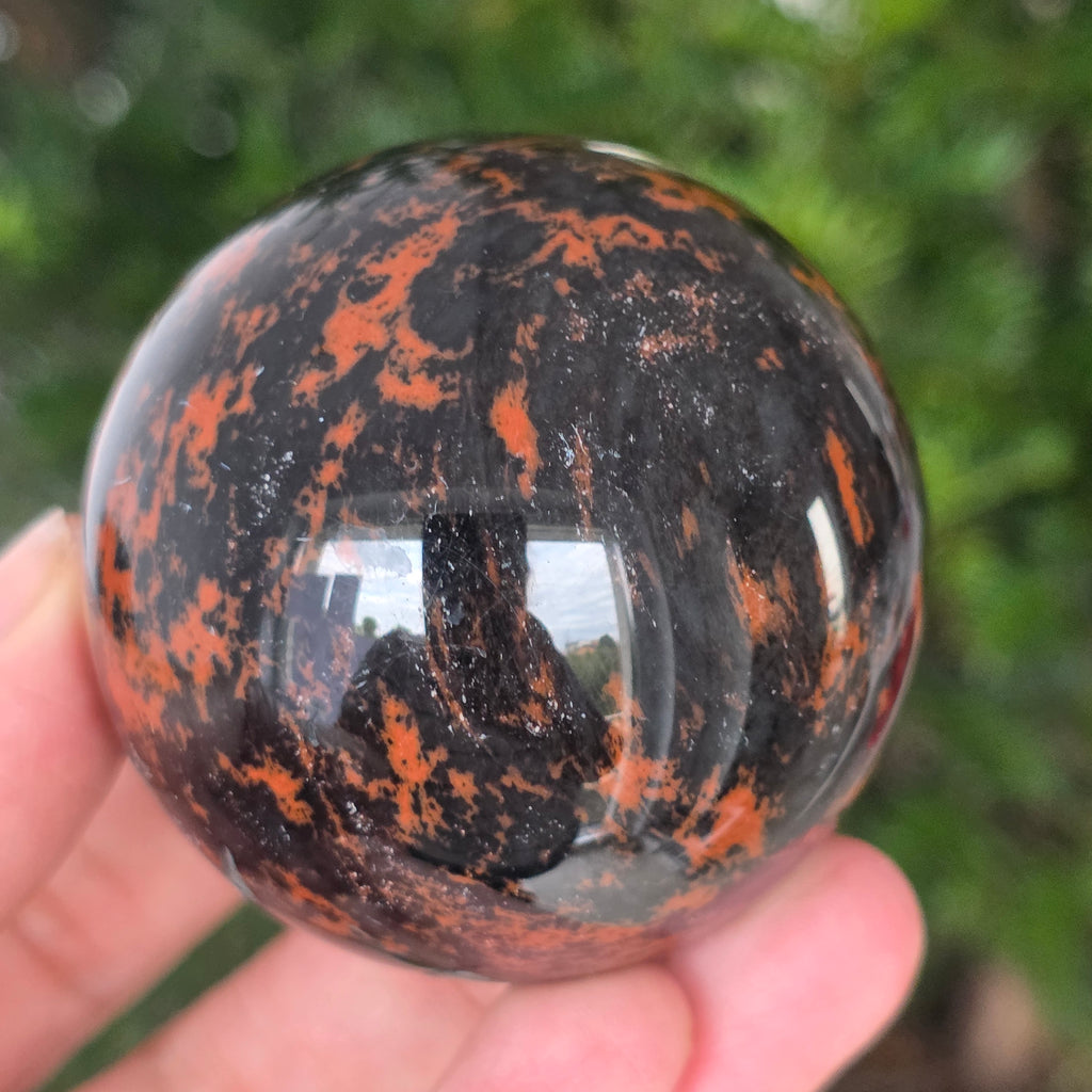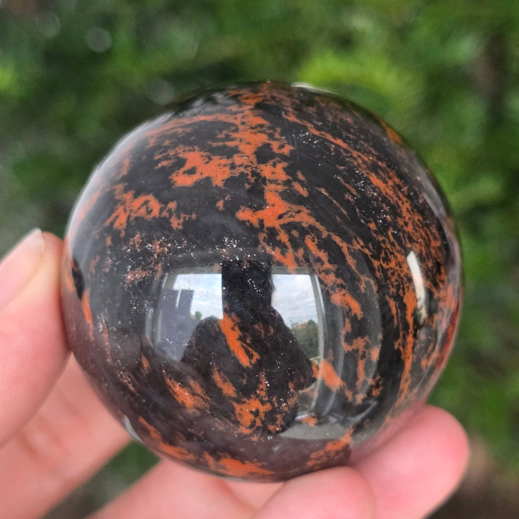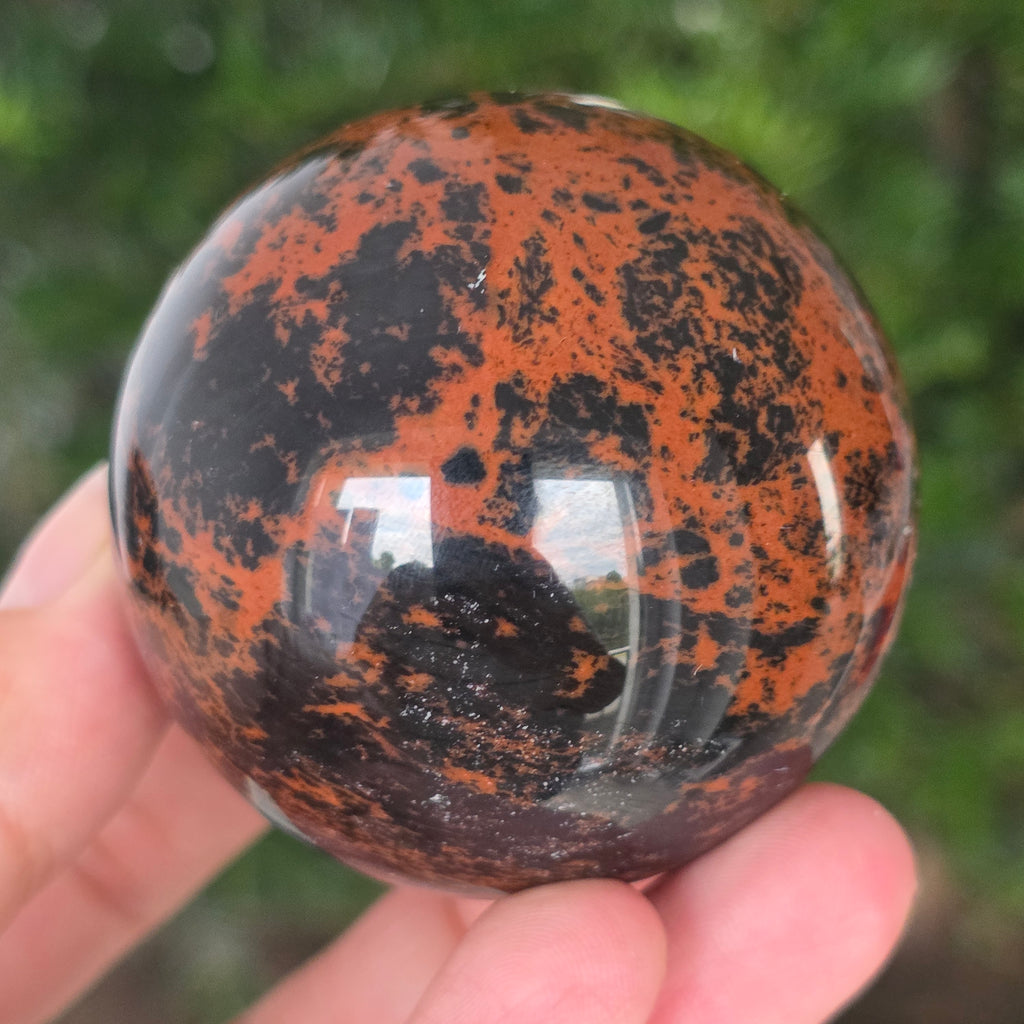 Lasă-te inspirat de forța liniștită a Pământului prin această sferă din obsidian mahon.