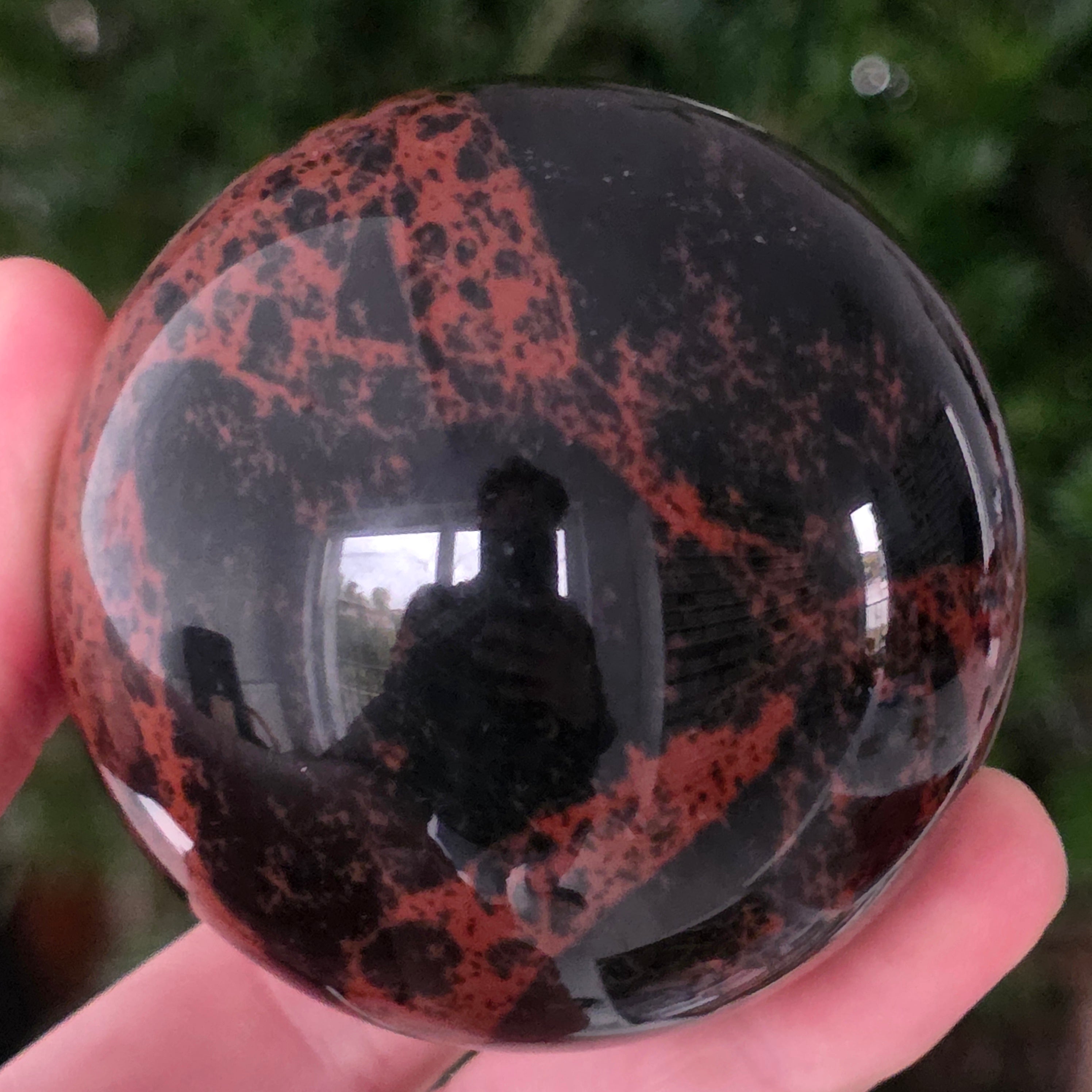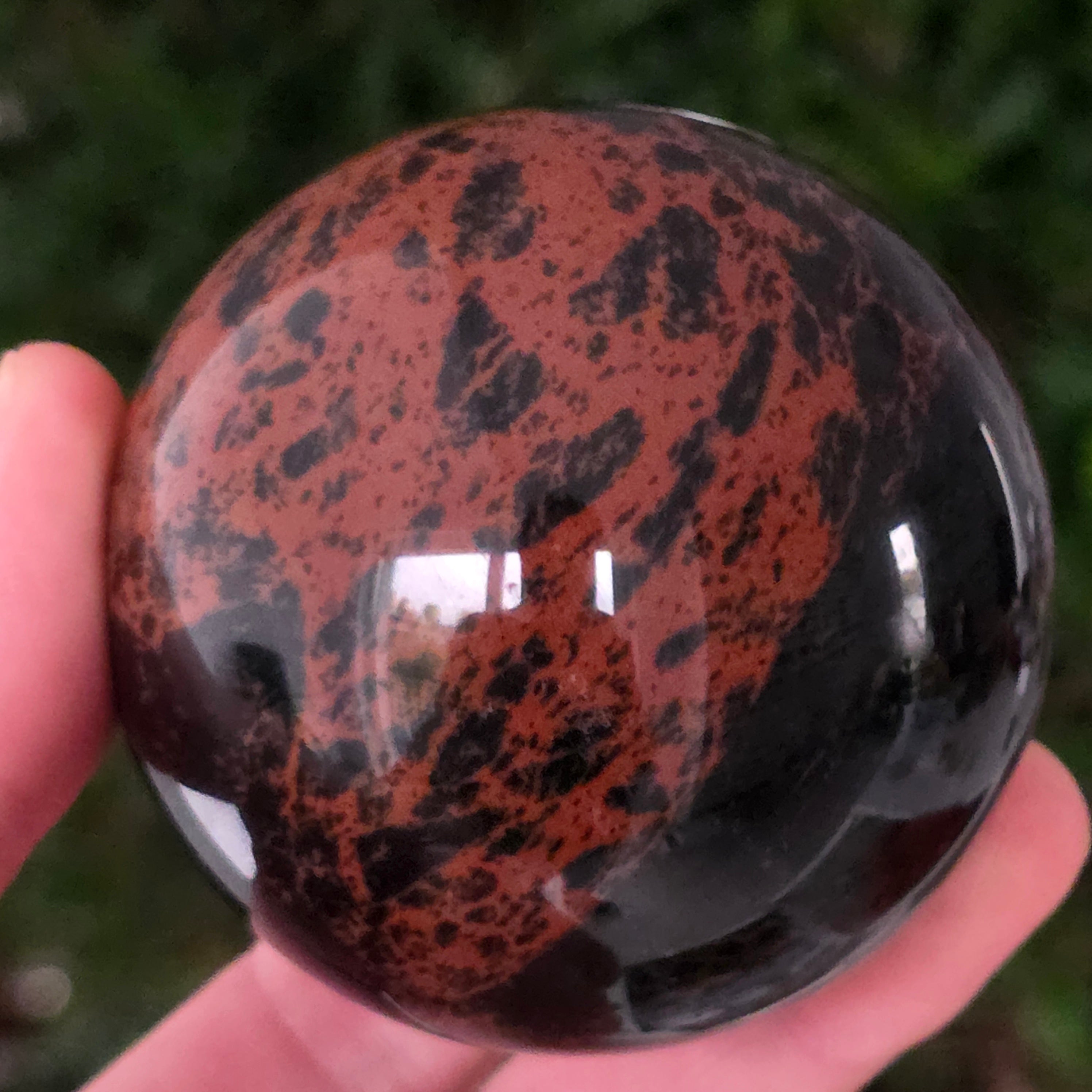 Lasă-te inspirat de forța liniștită a Pământului prin această sferă din obsidian mahon.